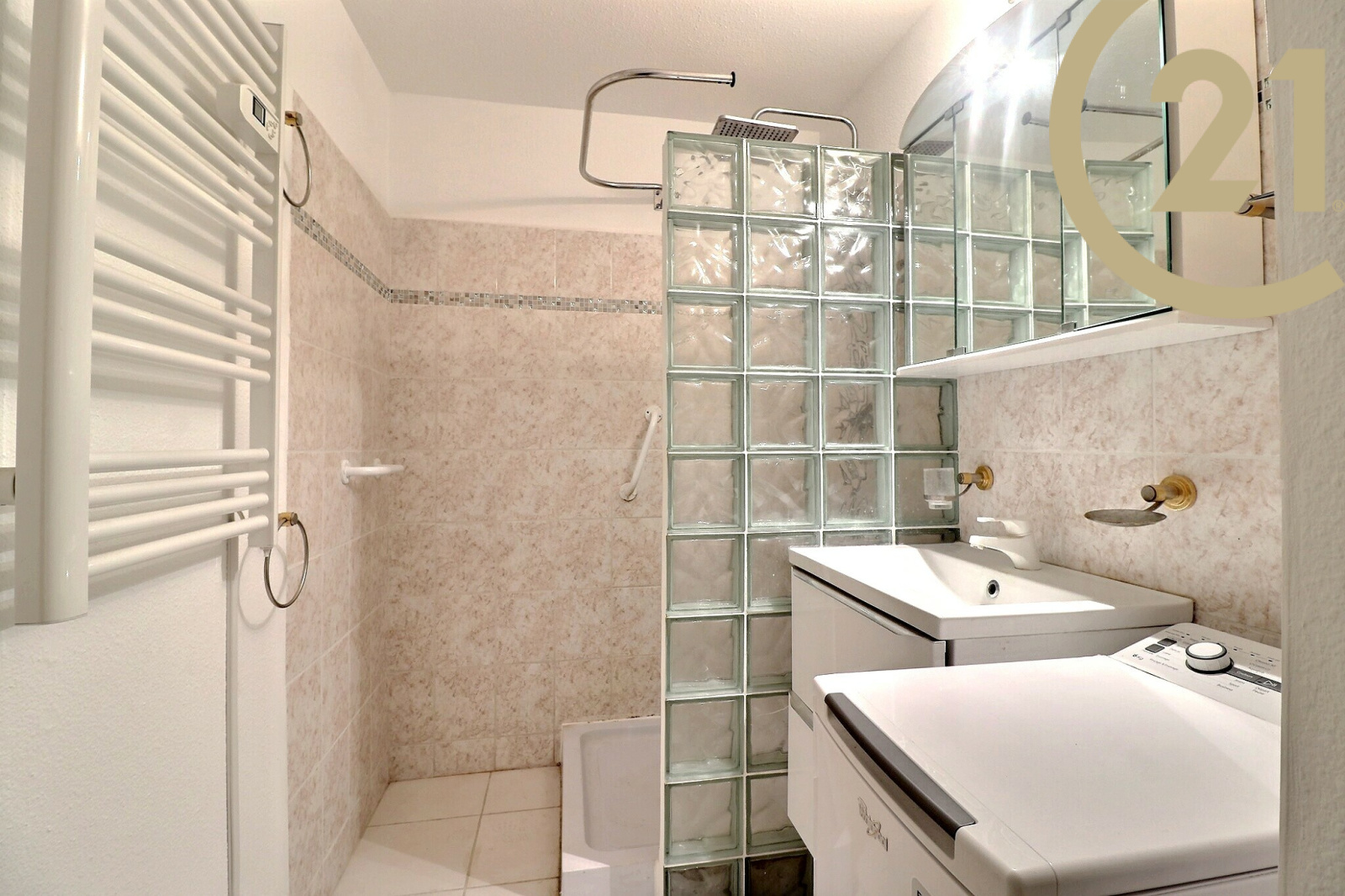 Idéalement situé cet appartement bien agencé offre une entrée, une salle d'eau, un wc indépendant, une cuisine équipée, un séjour donnant sur une spacieuse terrasse d'environ 14 m² et une chambre avec placards.