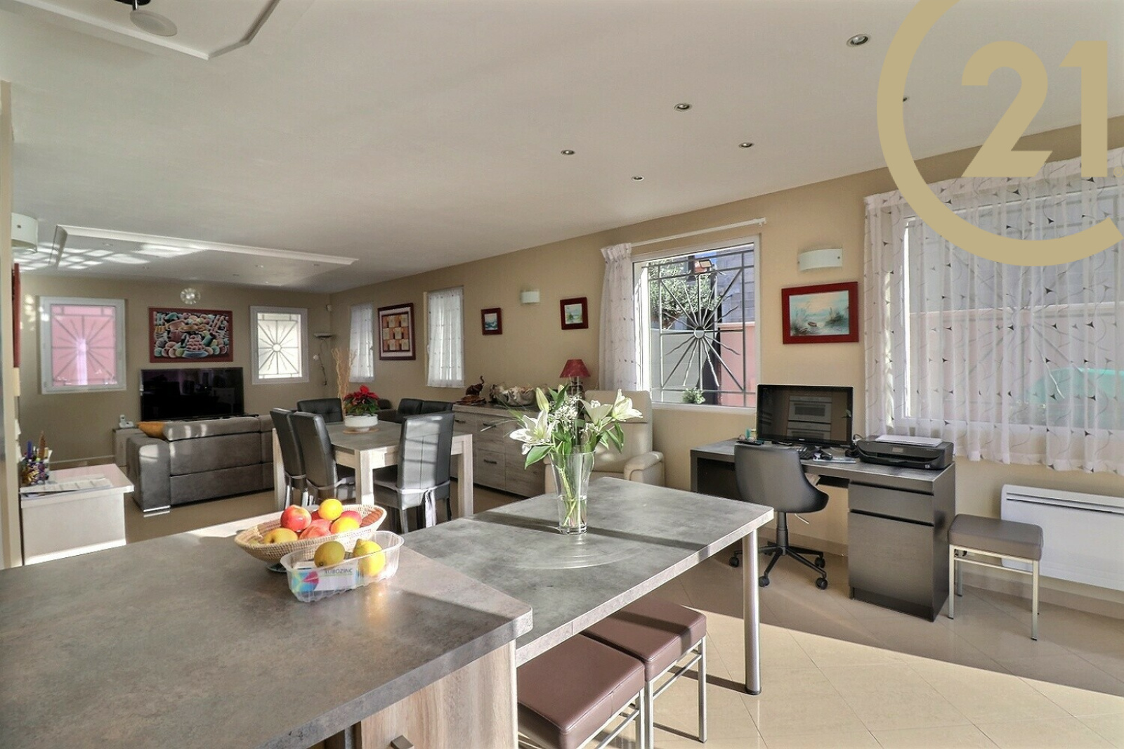 Elle est composée au rez-de-chaussée d'une pièce principale avec cuisine équipée de 52 m², d'une suite parentale avec dressing et wc; à l'étage vous trouverez 4 chambres, 2 salles d'eau, 2 wc et un terrasse tropézienne de 36 m².