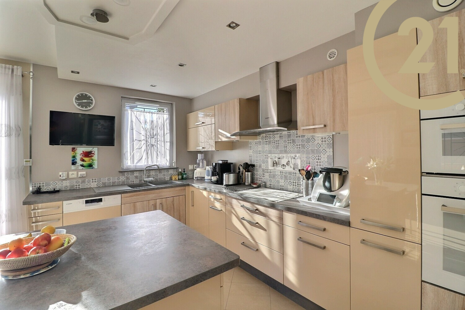 Vous trouverez également un garage et vous pourrez garer 3 voitures sur le terrain d'une superficie de 565 m².