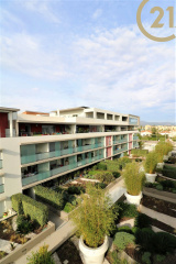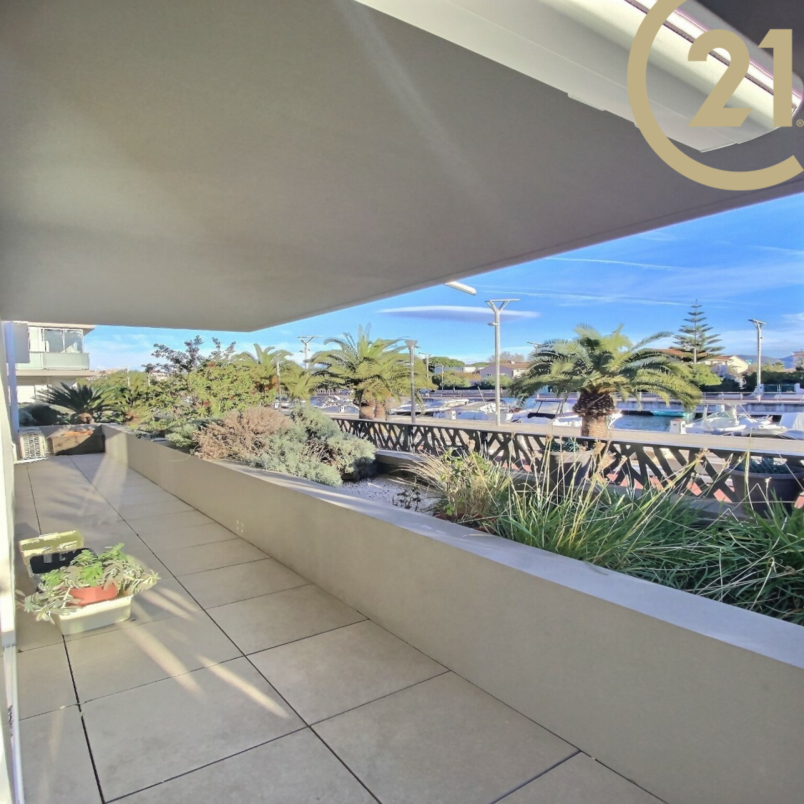 EXCLUSIVITE PORT-FREJUS II - Spacieux appartement 4 pièces de 98 m² situé dans une résidence de standing récente implantée dans le quartier prisé et récent de Port-Fréjus II. Cet appartement offre un hall d'entrée avec placard, une grande pièce de vie avec cuisine contemporaine haut de gamme entièrement équipée (41 m²), une suite parentale avec placard salle d'eau et WC privatifs, et un coin nuit indépendant composé d'un dégagement avec grand placard, de deux chambres avec placards, d'une salle de bain avec fenêtre et de WC séparés. Une grande terrasse en angle de 57 m² bénéficiant d'une exposition Sud-Est est accessible depuis la cuisine, le séjour et une des chambres. Elle est équipée de panneaux de verre coulissants avec véranda motorisé et d'un store haut de gamme avec lambrequin motorisé. Système d'alarme, volets roulants centralisés et climatisation. Jolie vue dégagée sur le canal de Port-Fréjus II et environnement calme. Un grand garage motorisé et une cave complètent ce bien. Vous apprécierez le calme à proximité immédiate du port, des plages et du centre-ville. Charges annuelles : 2720 €.
