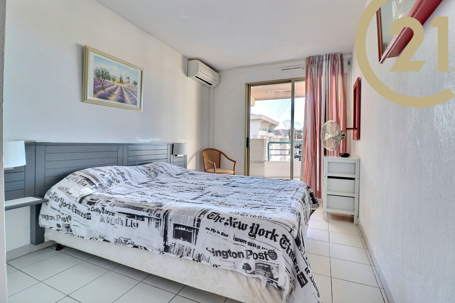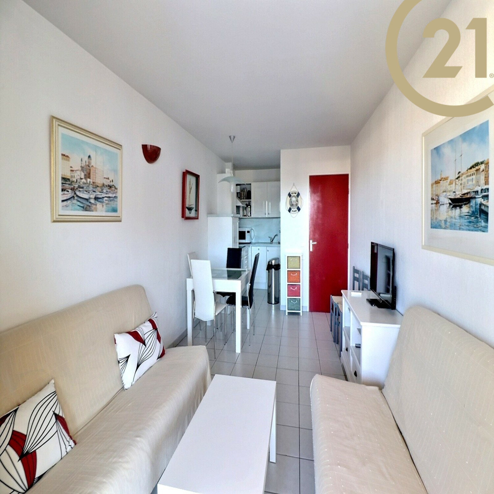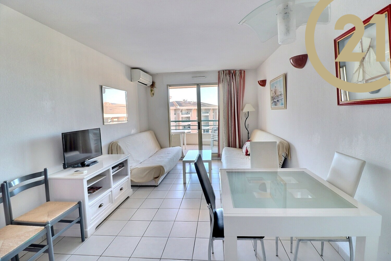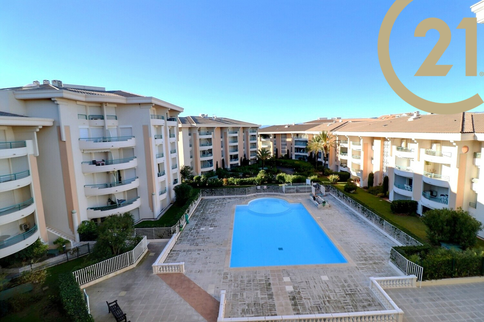 EXCLUSIVITE PORT FREJUS, dans résidence avec piscine, 2 pièces en parfait état en dernier étage avec ascenseur. L'appartement est composé d'une entrée, d'une pièce principale avec son coin cuisine équipée donnant sur une grande terrasse avec vue sur la piscine, d'une chambre avec placard, d'une salle de bains et d'un parking privé en sous-sol.