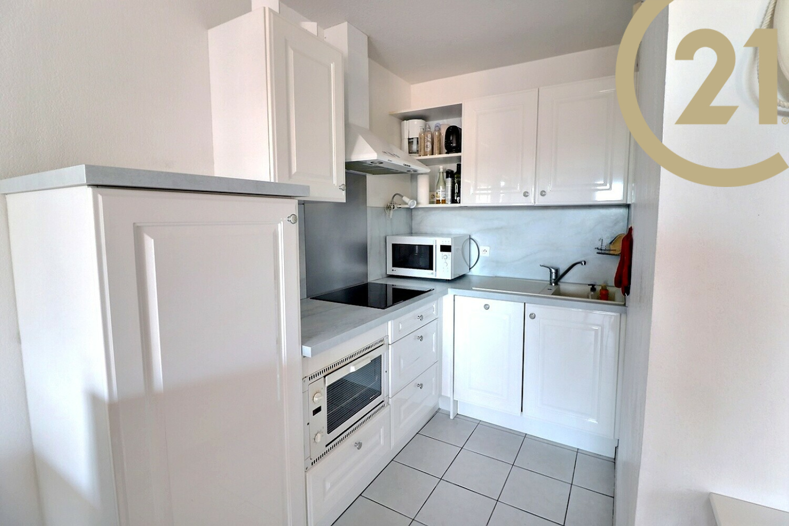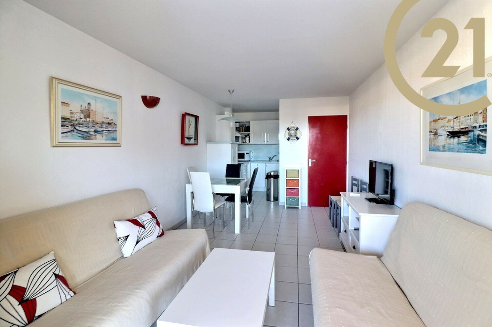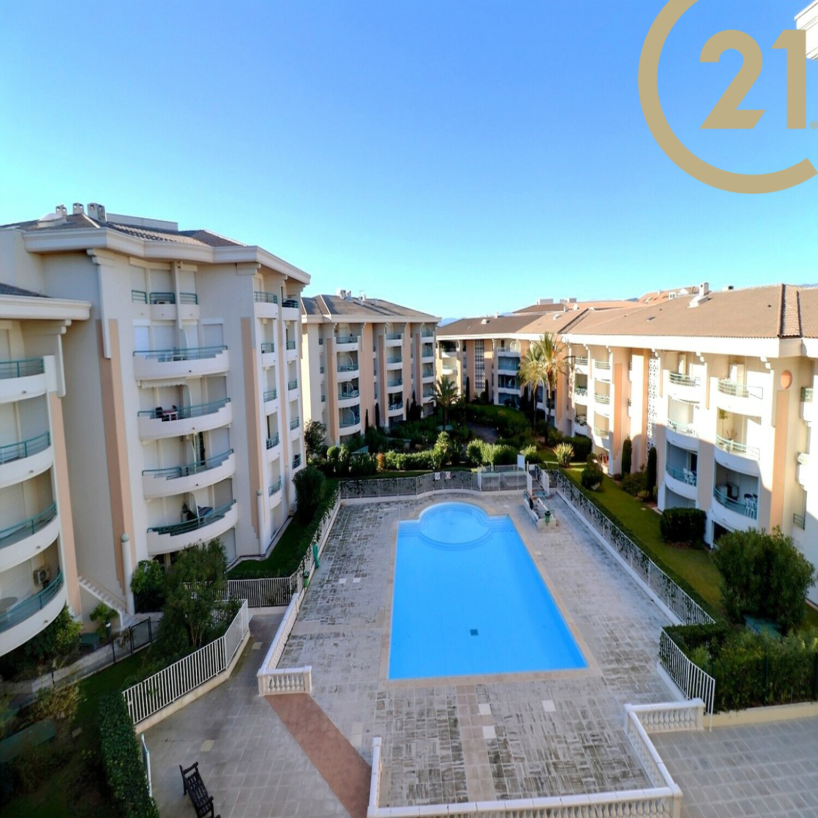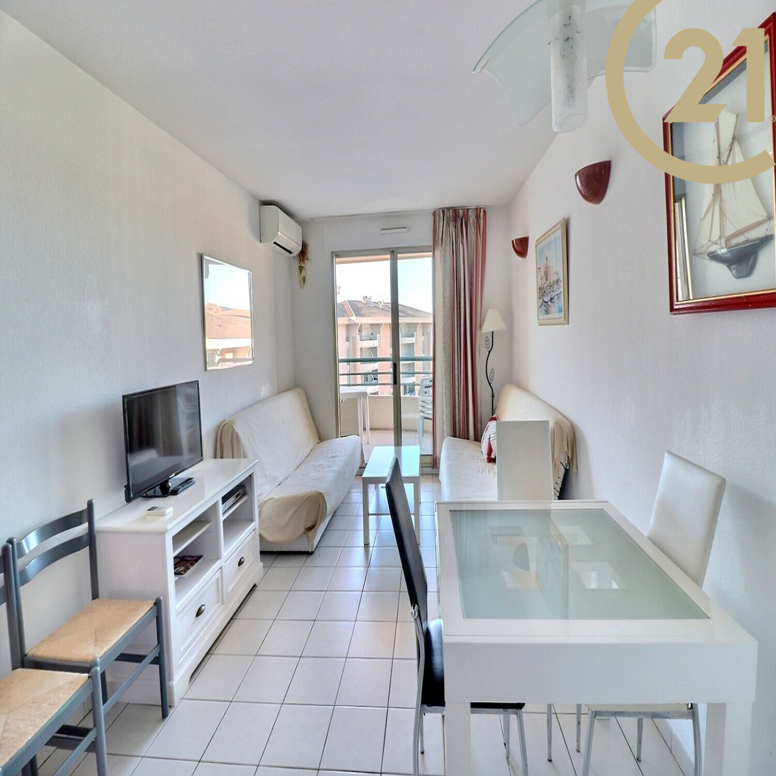 EXCLUSIVITE PORT FREJUS, dans résidence avec piscine, 2 pièces en parfait état en dernier étage avec ascenseur. L'appartement est composé d'une entrée, d'une pièce principale avec son coin cuisine équipée donnant sur une grande terrasse avec vue sur la piscine, d'une chambre avec placard, d'une salle de bains et d'un parking privé en sous-sol.