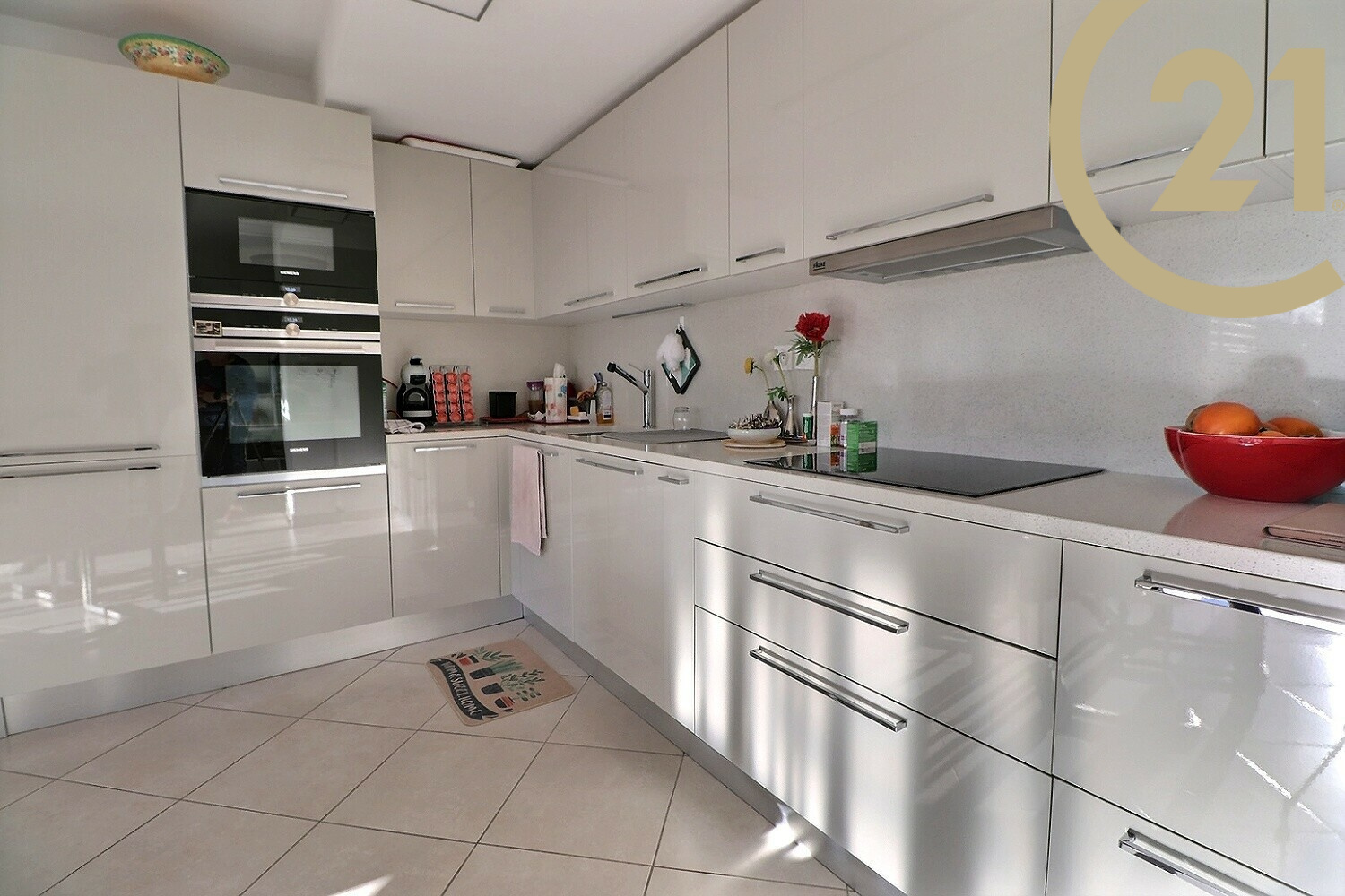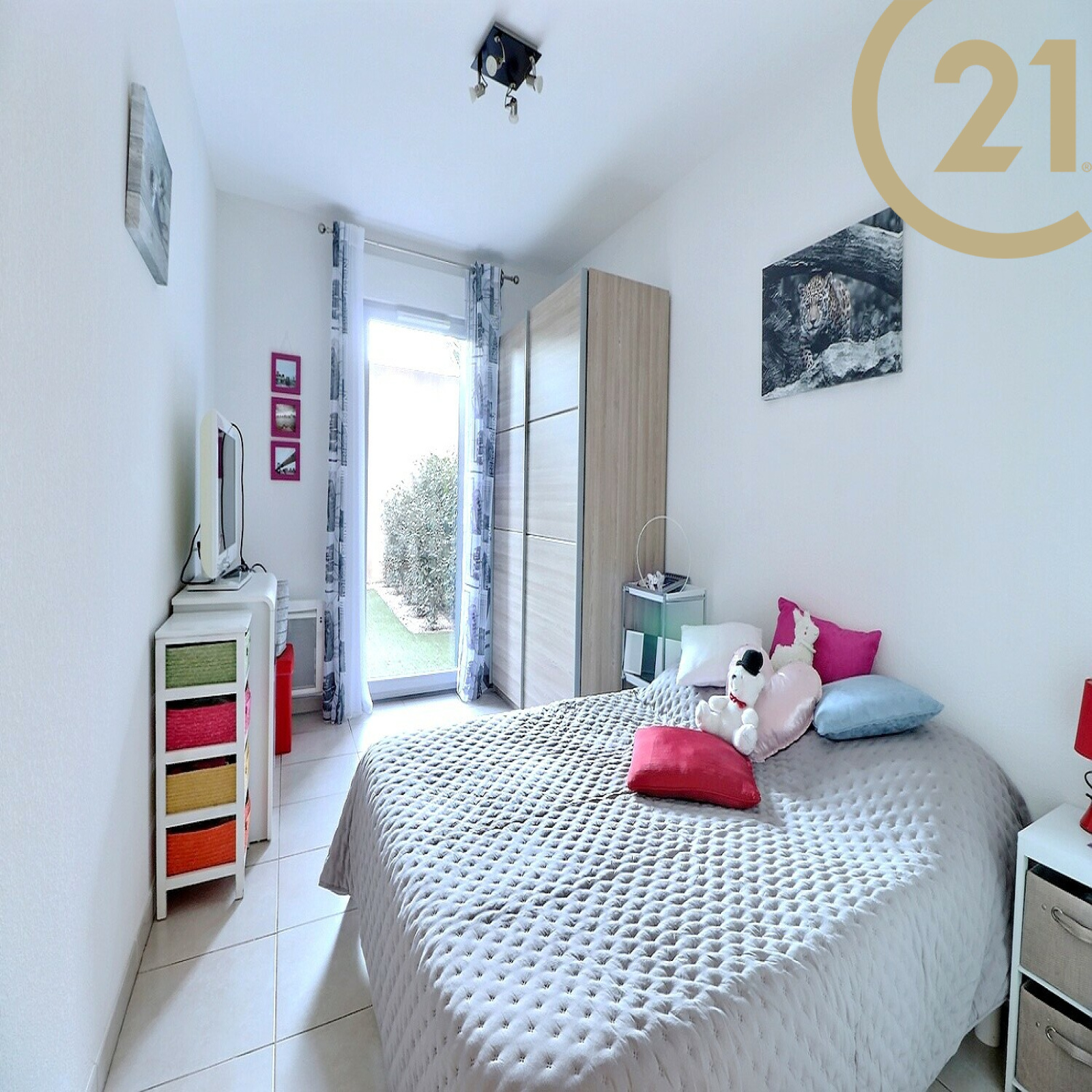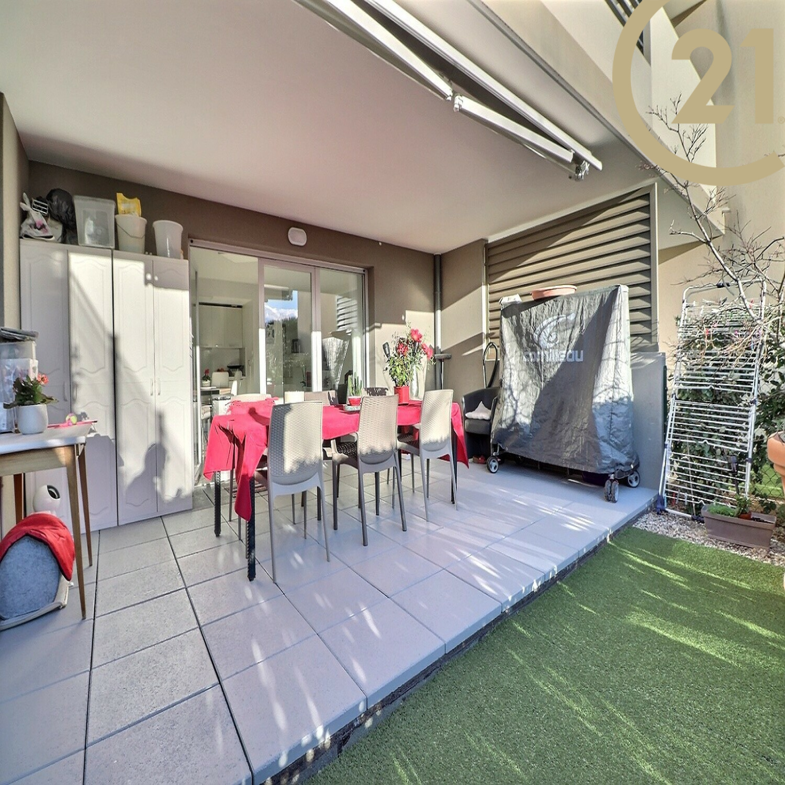 FREJUS TOUR DE MARE - Superbe appartement 3 pièces de 69.90 m² situé dans une résidence récente avec piscine. Cet appartement traversant parfaitement entretenu offre un hall d'entrée avec placard, un séjour climatisé avec cuisine ouverte haut de gamme dotée de nombreux rangements et donnant sur une large terrasse de 19 m² et un joli jardinet, et un coin nuit composé de deux chambres offrant toutes deux un accès sur un second jardin privatif, une salle d'eau avec grande douche à l'italienne et WC, et des toilettes séparées avec espace buanderie. La pièce principale exposée Sud offre une jolie vue dégagée sur la verdure. Un grand garage double est vendu avec cet appartement. Vous apprécierez la double exposition de cet appartement, son aspect très soigné, ainsi que sa grande terrasse couverte et ses deux espaces verts. La résidence est dotée d'un joli parc paysager et d'une belle piscine. Accès autoroute, établissements scolaires, et centre-ville accessibles en quelques minutes. Charges annuelles : 1475 € Copropriéte de 77 lots à usage d'habitation.