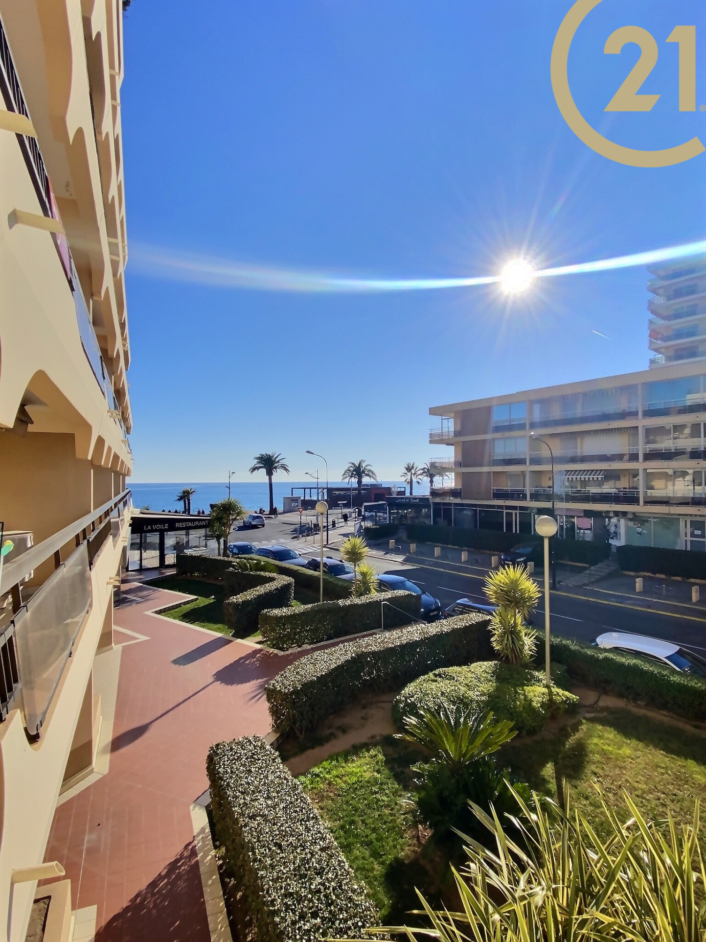 EXCLUSIVITE FREJUS PLAGE - Bel appartement 2 pièces de 45 m² situé dans une résidence prisée avec ascenseur sur le front de mer. Cet appartement bien agencé offre un hall d'entrée avec placard, un séjour climatisé avec cuisine ouverte équipée ouvert sur une large terrasse de plus de 14 m², une grande chambre avec placard donnant également sur la terrasse, une salle d'eau avec spacieuse douche et des WC séparés. L'appartement offre une exposition sud ouest et bénéficie d'une jolie vue dégagée sur la mer. Climatisation réversible et volets roulants centralisés. Possibilité d'acheter un grand garage motorisé de plus de 15 m² en supplément. Situation géographique très prisée : plages, tous commerces et port accessibles à pied. Copropriété de 120 lots principaux - Charges annuelles : 1224 €