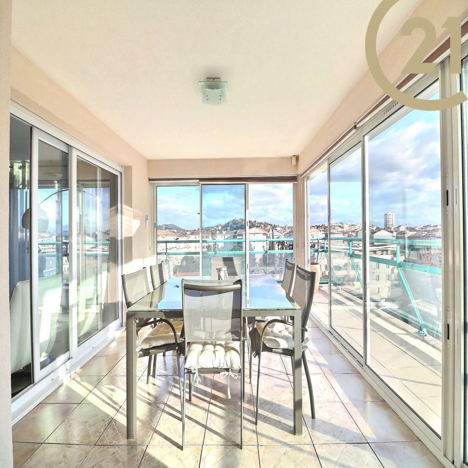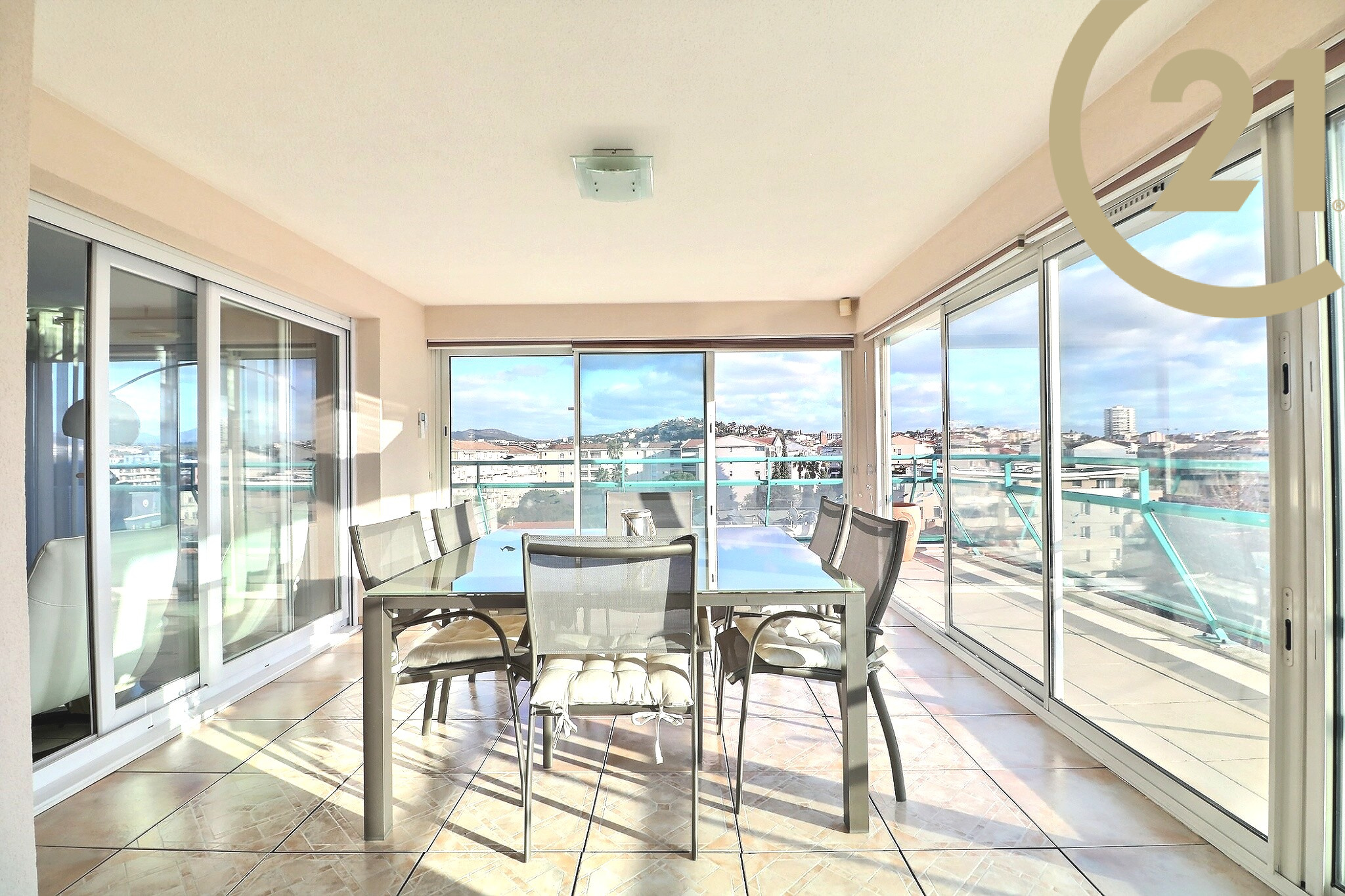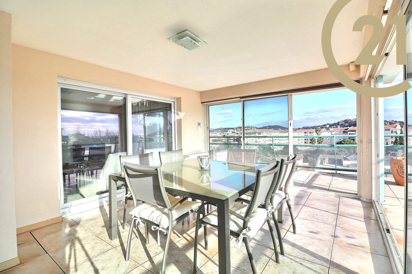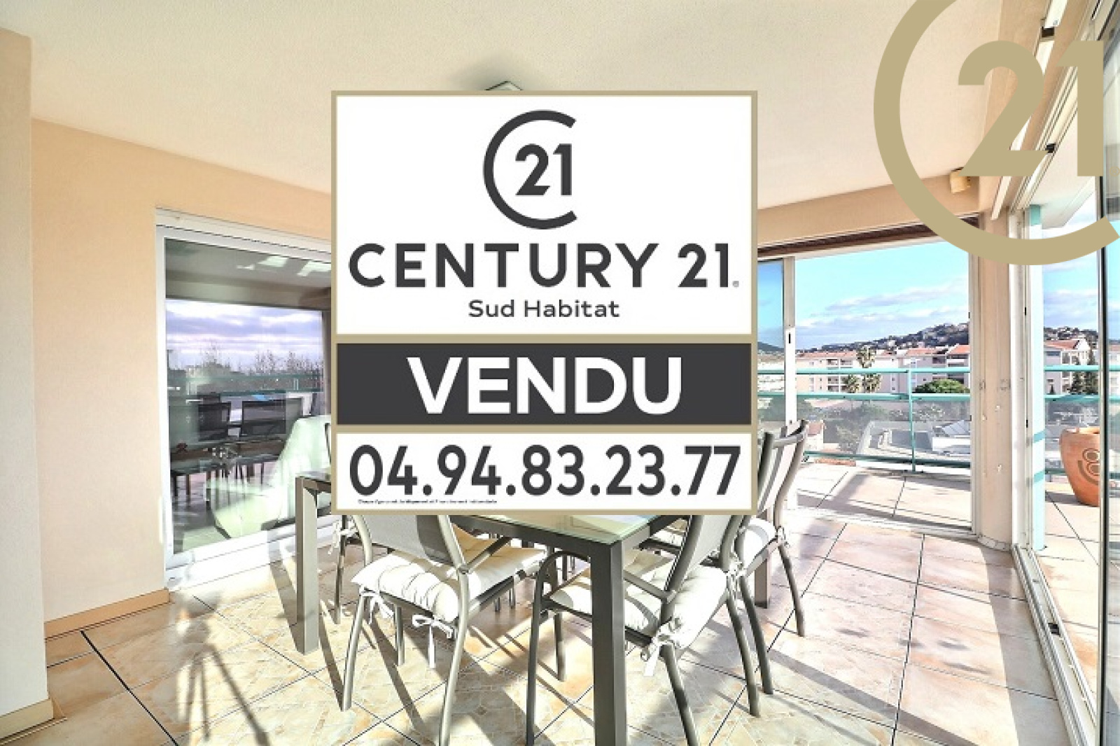 EXCLUSIVITE FREJUS PROCHE PLAGES ET CENTRE-VILLE DE SAINT-RAPHAEL - Villa sur le toit de 101 m² située dans une résidence de standing sécurisée avec ascenseur à quelques minutes à pied des plages et du centre-ville . Cet appartement spacieux offre un hall d'entrée avec placard et dressing, une pièce de vie bénéficiant d'une triple exposition ouverte sur une grande terrasse couverte de 14 m², une spacieuse cuisine entièrement équipée donnant également sur la terrasse, et un coin nuit composé d'une belle suite parentale avec rangements, salle d'eau privative et WC, d'une grande chambre avec placards, d'une salle d'eau avec WC et fenêtre et de WC séparés. Une terrasse de 38 m² entoure l'appartement. Belle exposition est-sud-ouest. Jolie vue sur la basilique de Saint-Raphaël, le rocher de Roquebrune-sur-Argens et l'Estérel. Climatisation réversible, double vitrage et volets roulants centralisés. 2 parkings couverts, un parking extérieur et deux caves sont vendus avec cet appartement. Tous commerces, centre-ville de Saint-Raphaël et plages accessibles à pied. Copropriété de X lots. Charges annuelles : 2640 €.