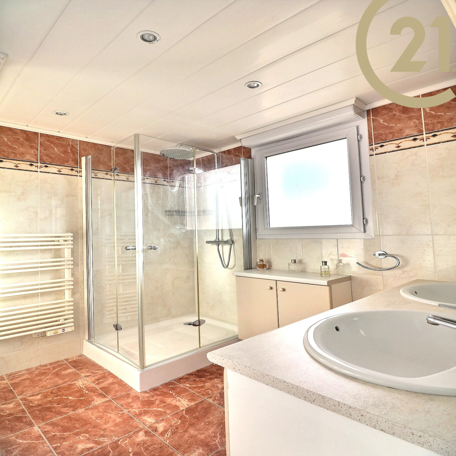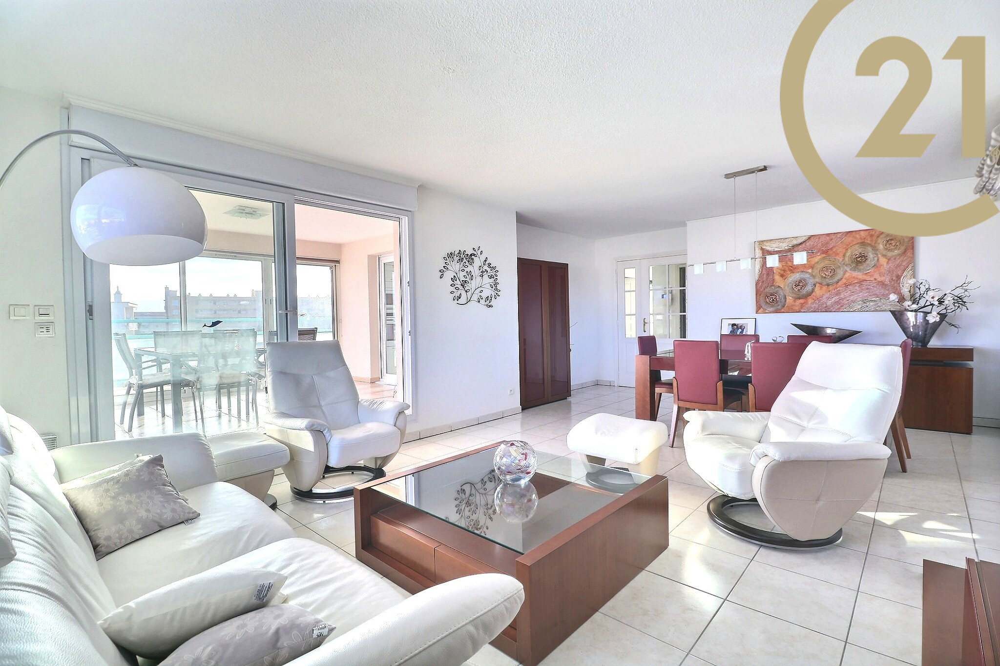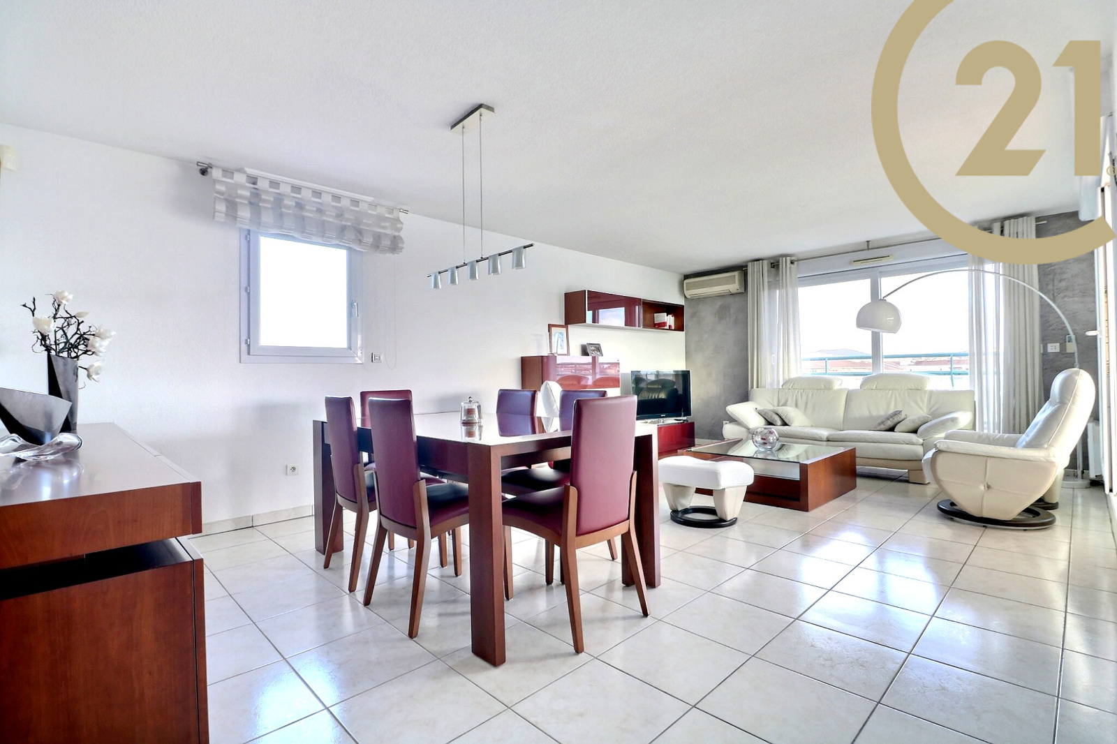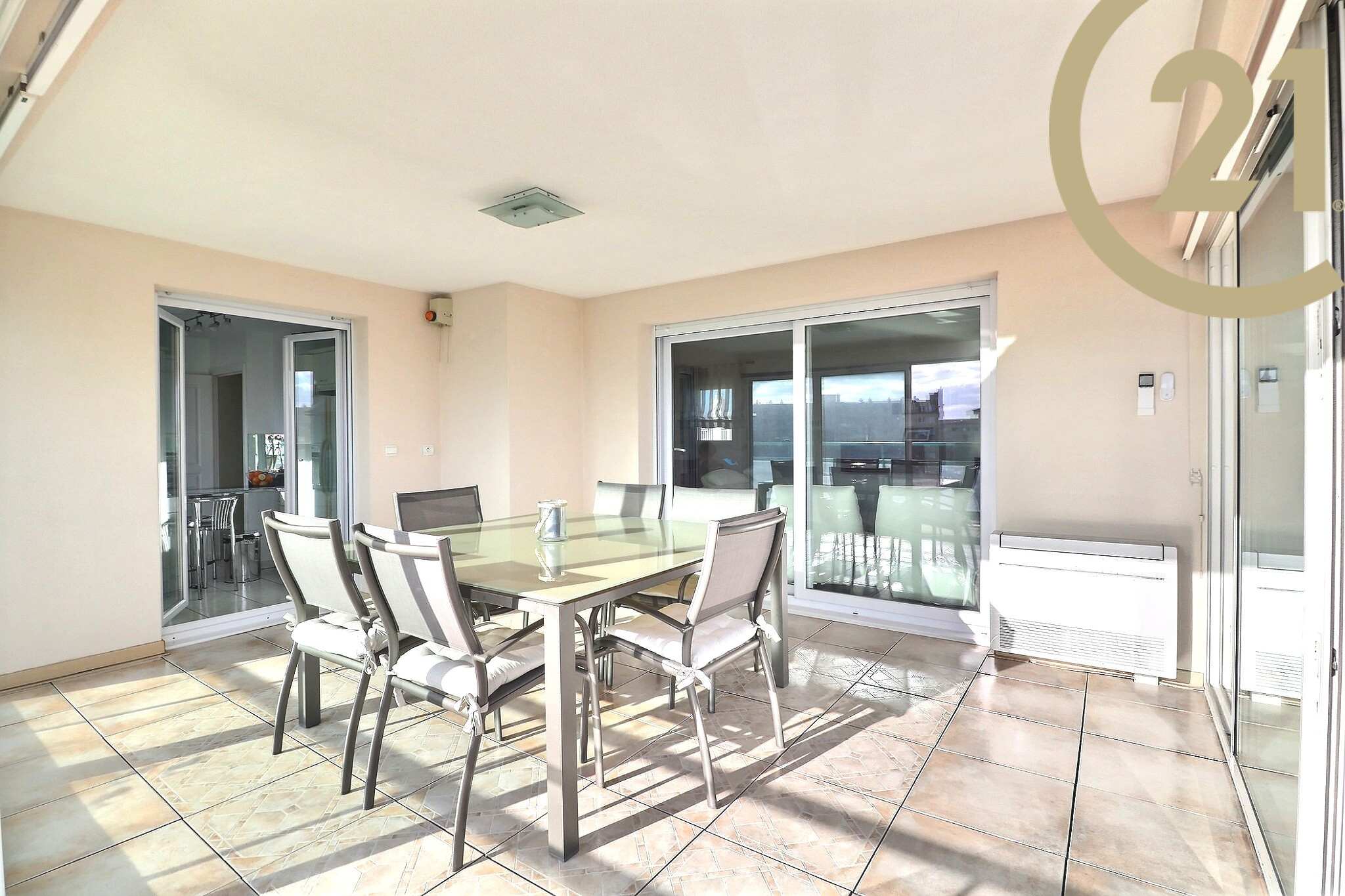 EXCLUSIVITE FREJUS PROCHE PLAGES ET CENTRE-VILLE DE SAINT-RAPHAEL - Villa sur le toit de 101 m² située dans une résidence de standing sécurisée avec ascenseur à quelques minutes à pied des plages et du centre-ville . Cet appartement spacieux offre un hall d'entrée avec placard et dressing, une pièce de vie bénéficiant d'une triple exposition ouverte sur une grande terrasse couverte de 14 m², une spacieuse cuisine entièrement équipée donnant également sur la terrasse, et un coin nuit composé d'une belle suite parentale avec rangements, salle d'eau privative et WC, d'une grande chambre avec placards, d'une salle d'eau avec WC et fenêtre et de WC séparés. Une terrasse de 38 m² entoure l'appartement. Belle exposition est-sud-ouest. Jolie vue sur la basilique de Saint-Raphaël, le rocher de Roquebrune-sur-Argens et l'Estérel. Climatisation réversible, double vitrage et volets roulants centralisés. 2 parkings couverts, un parking extérieur et deux caves sont vendus avec cet appartement. Tous commerces, centre-ville de Saint-Raphaël et plages accessibles à pied. Copropriété de X lots. Charges annuelles : 2640 €.