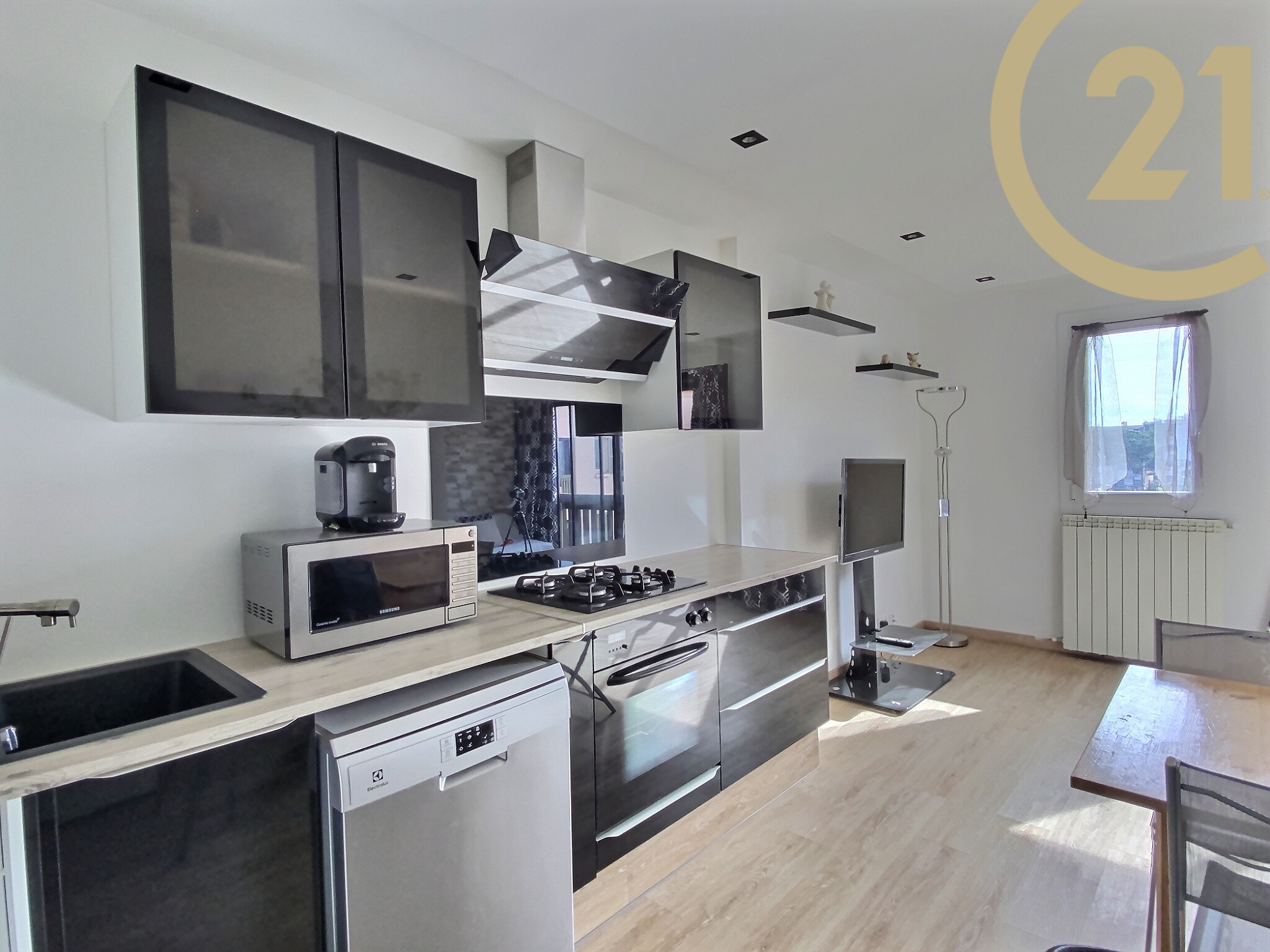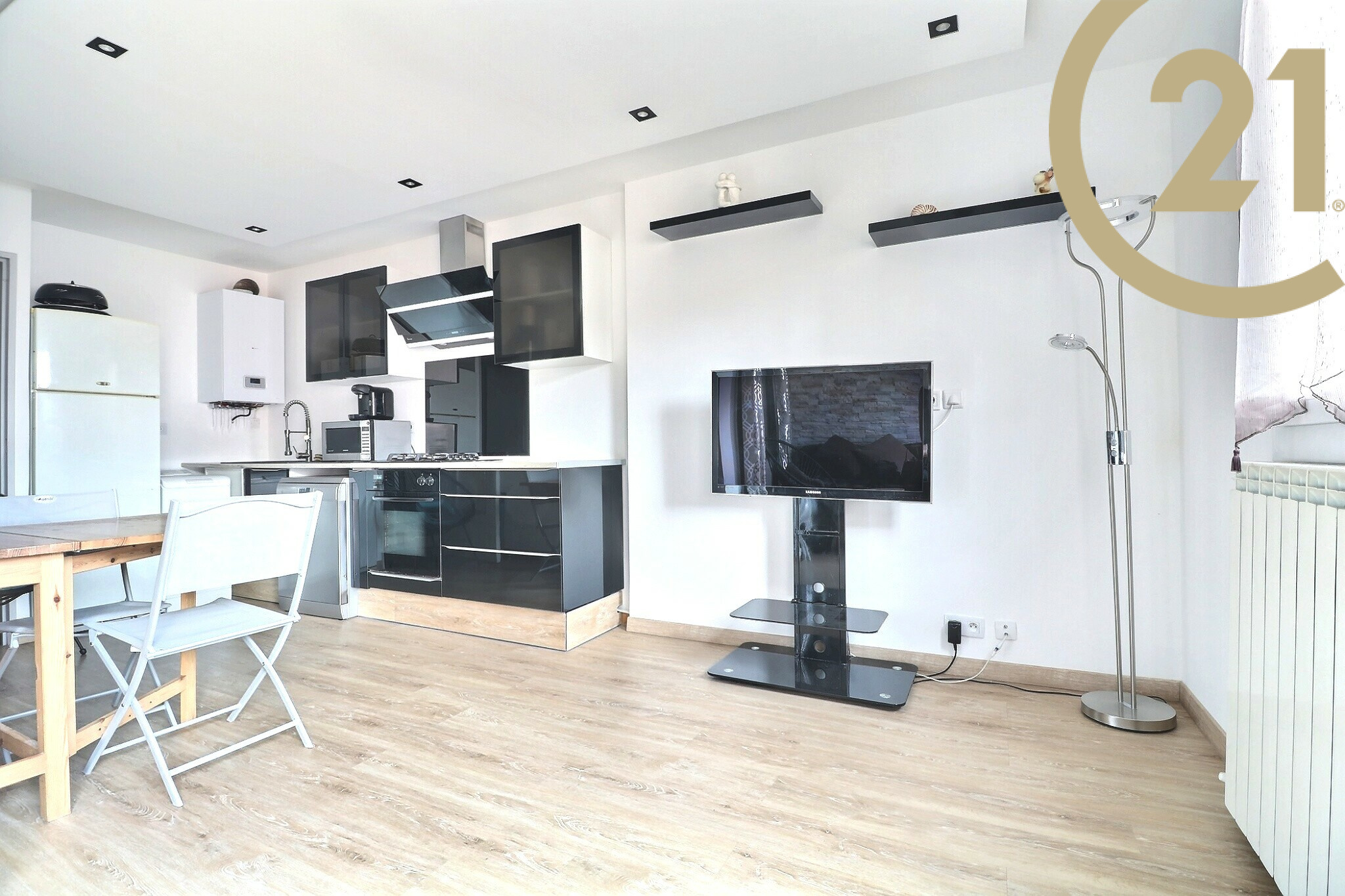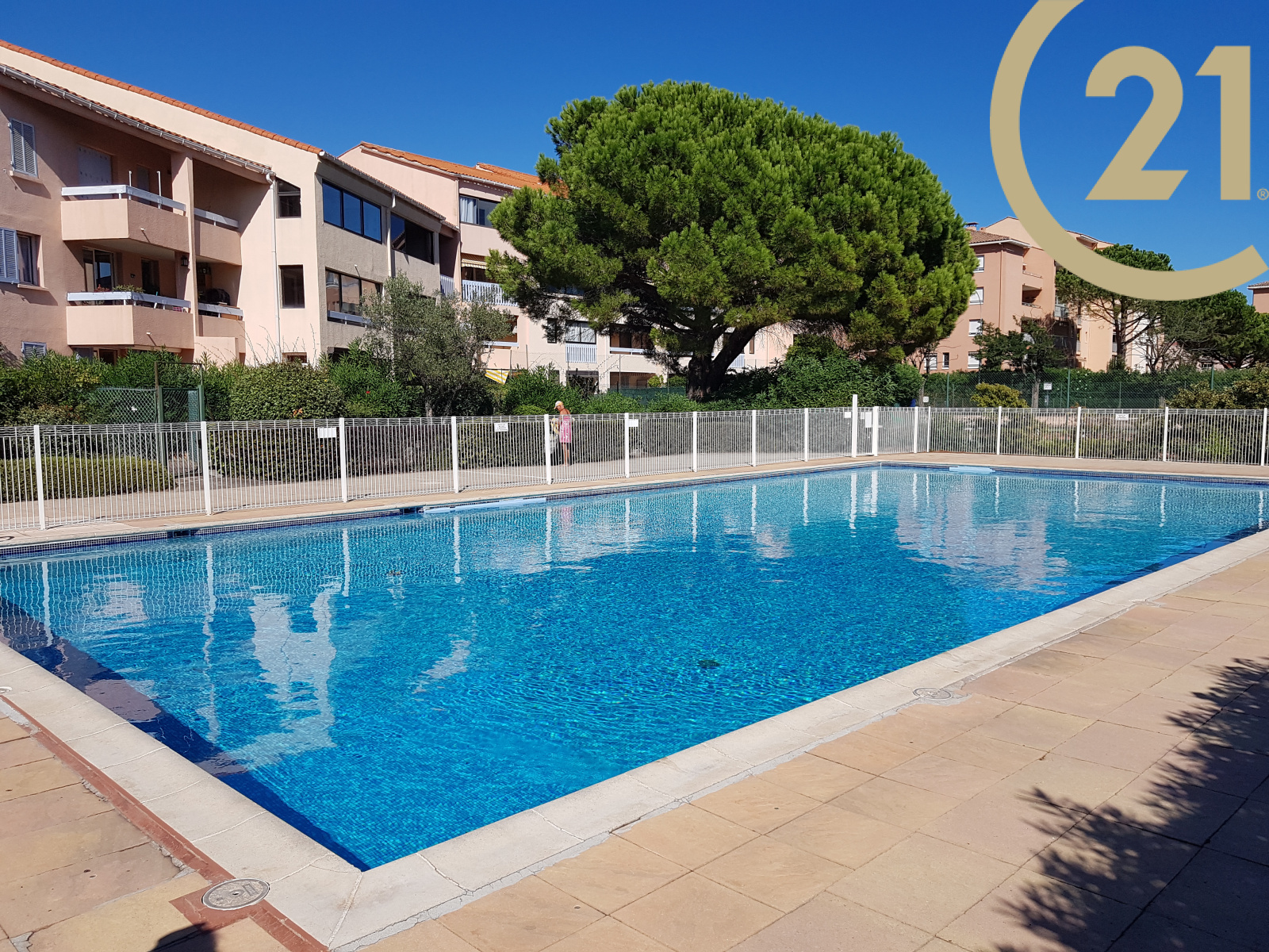 EXCLUSIVITE - FREJUS PROCHE CENTRE - Appartement 2/3 pièces de 40.51 m² exposé sud situé en étage élevé dans une résidence sécurisée avec ascenseur, piscine et tennis à proximité immédiate du centre-ville et des commodités. Cet appartement offre un lumineux séjour avec cuisine ouverte récente entièrement équipée, une chambre avec dressing, un coin nuit avec lits supeposés et rangements, une salle de bains et des WC séparés. Une cave est vendue avec cet appartement. Possibilité d'acquérir un garage en supplément. Appartement lumineux et bien agencé. Etablissements scolaires, gare, et centre-ville accessibles à pied en quelques minutes.Charges annuelles : 1114 € Copropriété de 403 lots. Visite virtuelle disponible sur demande.