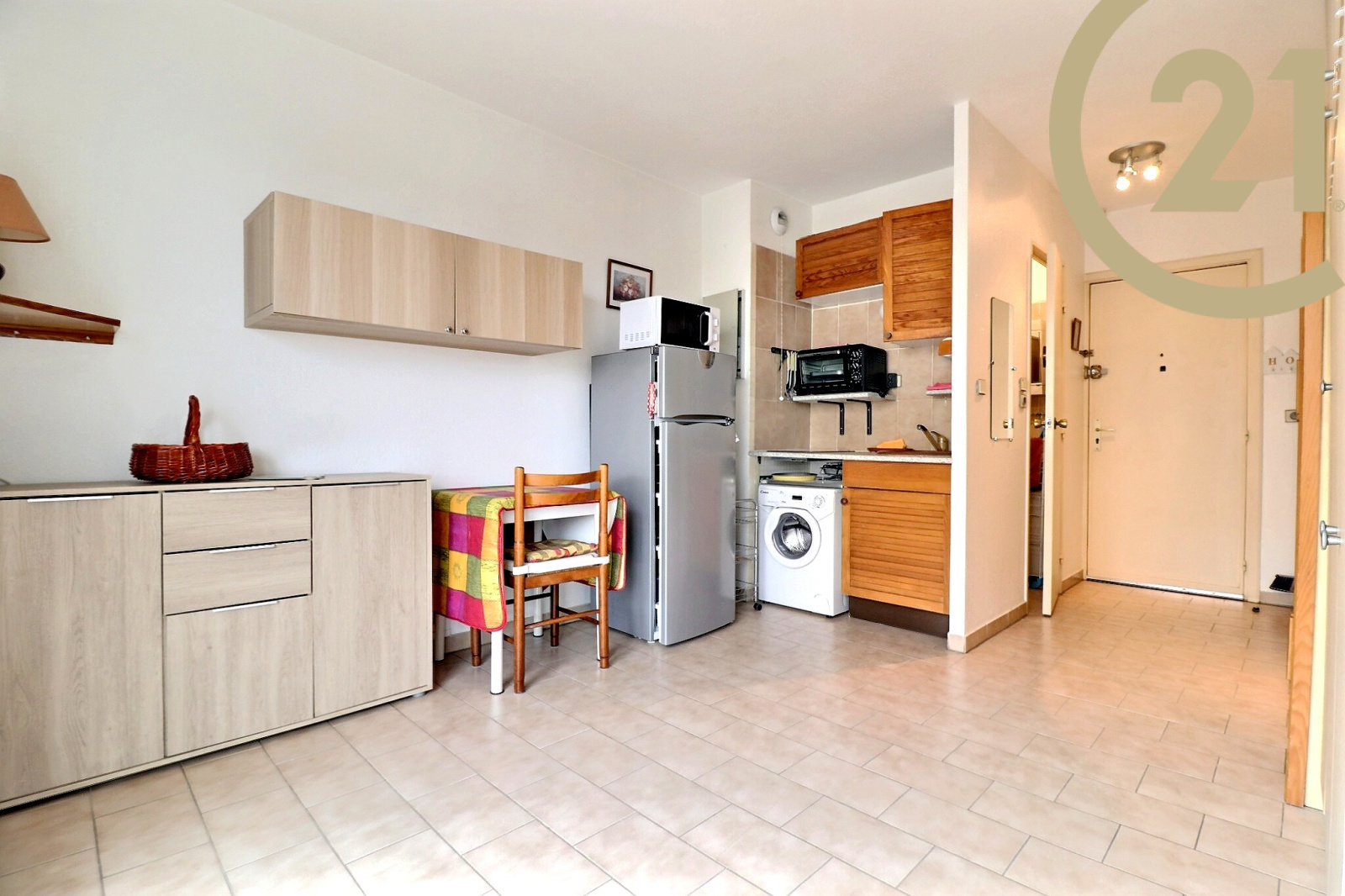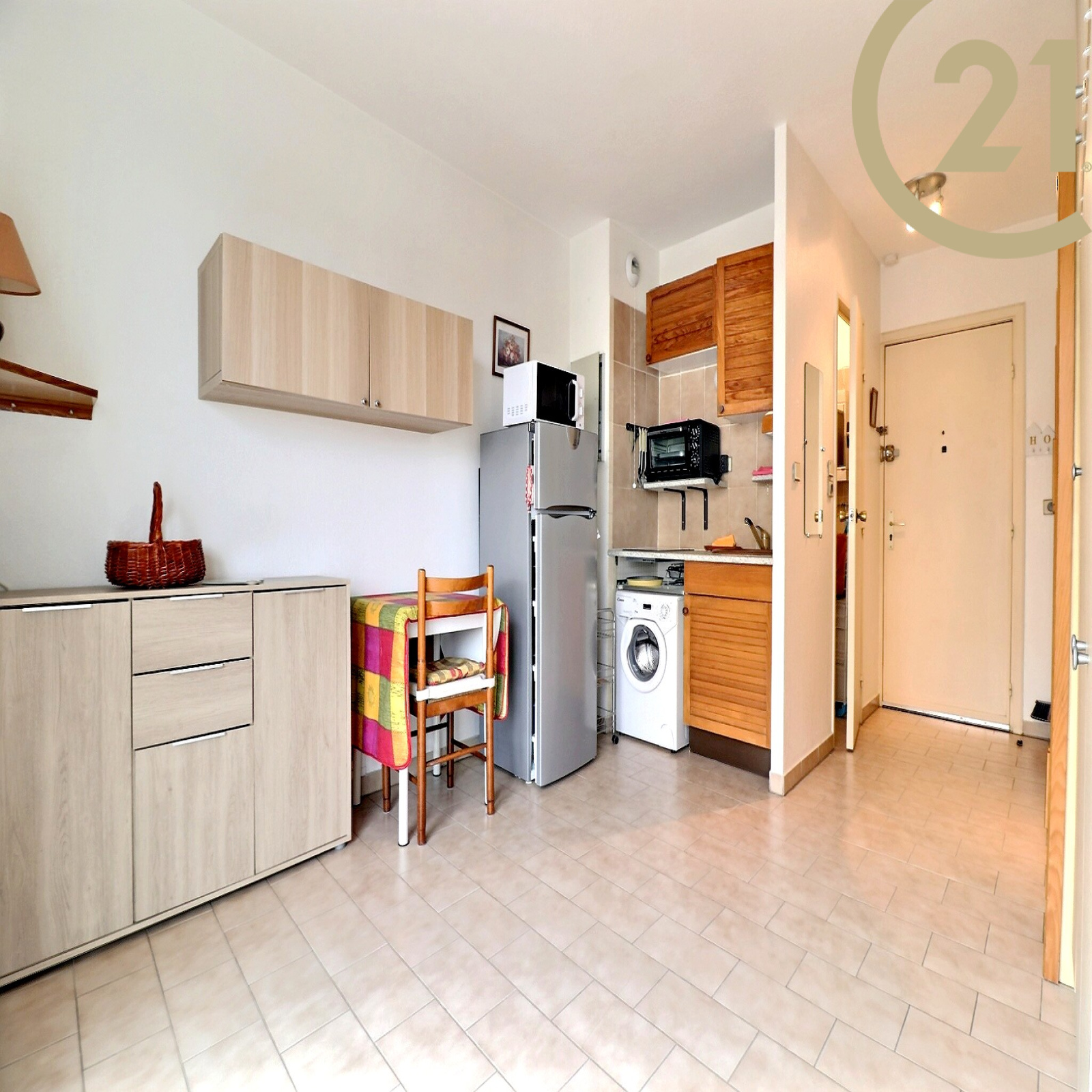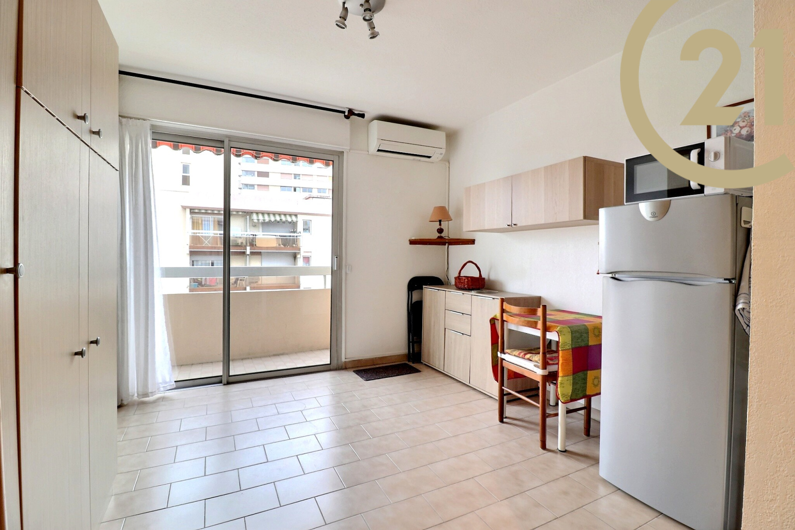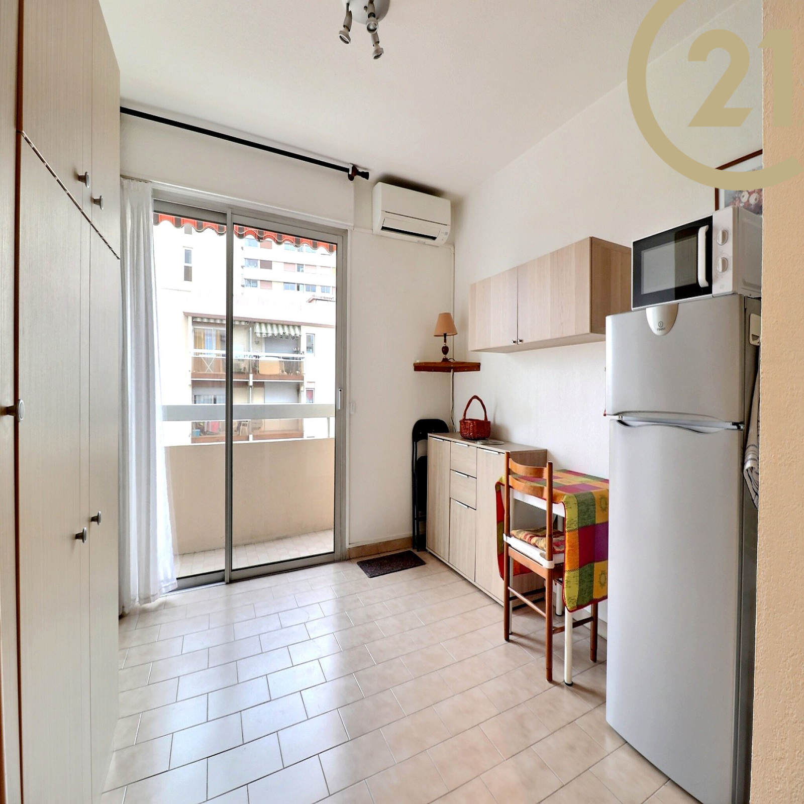 Cet appartement vendu entièrement meublé offre un séjour avec kitchenette ouvert sur un balcon bénéficiant d'une exposition SUD/EST et d'une salle d'eau avec wc.