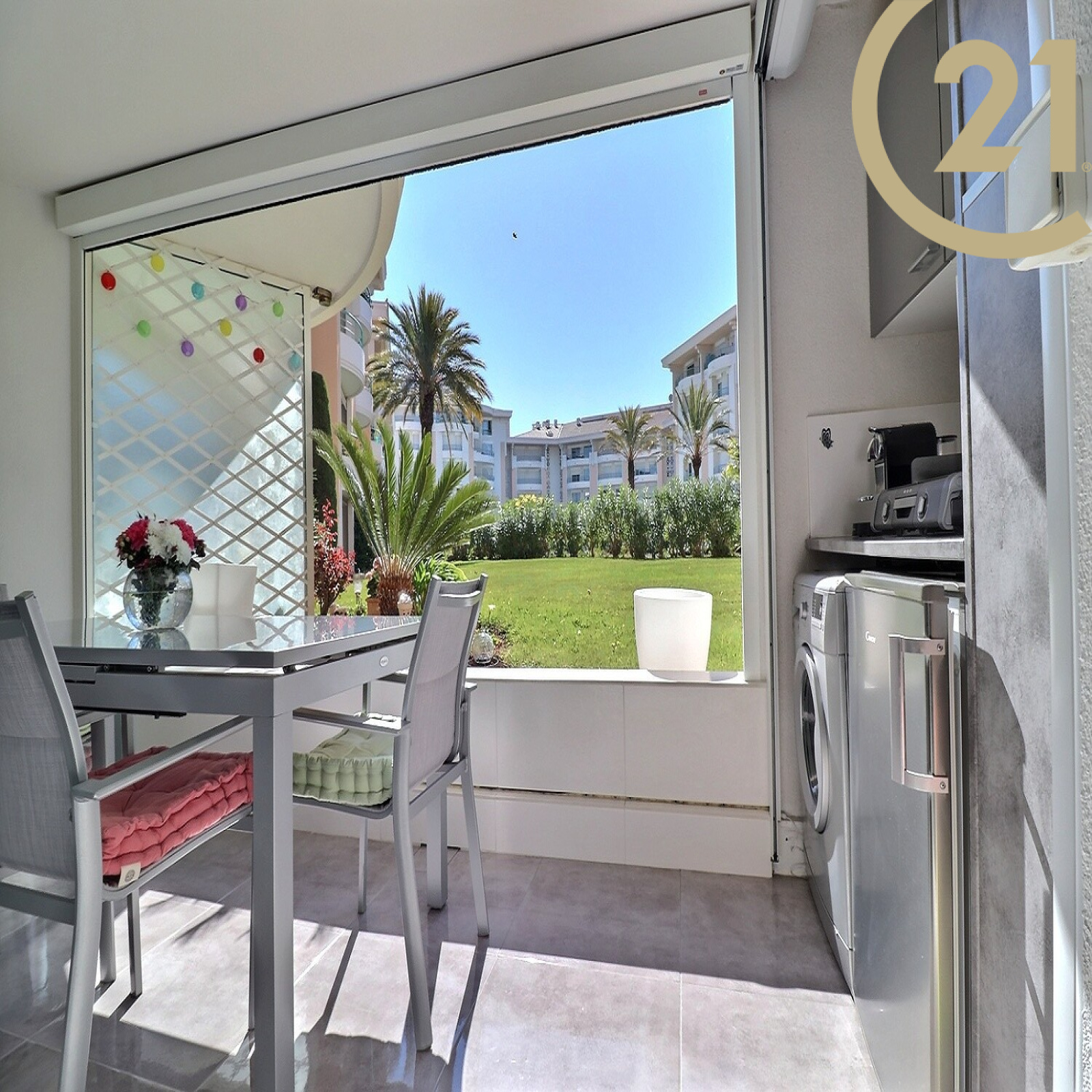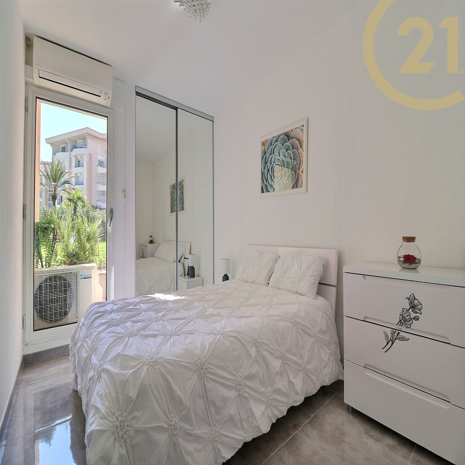 EXCLUSIVITE PORT-FREJUS, magnifique 2 pièces très spacieux dans une résidence avec piscine. Il se compose d'un séjour avec cuisine équipée donnant sur une terrasse de 10 m² exposée sud/est avec vue sur la verdure, d'une chambre, d'une salle de bains et d'un wc indépendant.