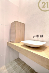 EXCLUSIVITE - FREJUS CENTRE - VISITE VIRTUELLE ACCESSIBLE SUR DEMANDE - Bel appartement 2 pièces atypique entièrement rénové de 44.69 m² situé dans une jolie rue piétonne à Fréjus centre. Cet appartement offrant une belle hauteur sous plafond se compose d'un grand hall d'entrée, d'une belle pièce de vie de plus de 31 m² dotée de deux grandes baies vitrées avec cuisine ouverte récente entièrement équipée , d'une chambre avec salle d'eau récente et belle douche et de WC séparés. Deux balcons accessibles depuis la pièce de vie complètent cet appartement. Exposition sud. Climatisation réversible. Tous commerces, gare et commodités accessibles à pied. Une cave est vendue avec ce bien. Copropriété de 9 lots à usage d'habitation. Charges courantes annuelles : 490 €.