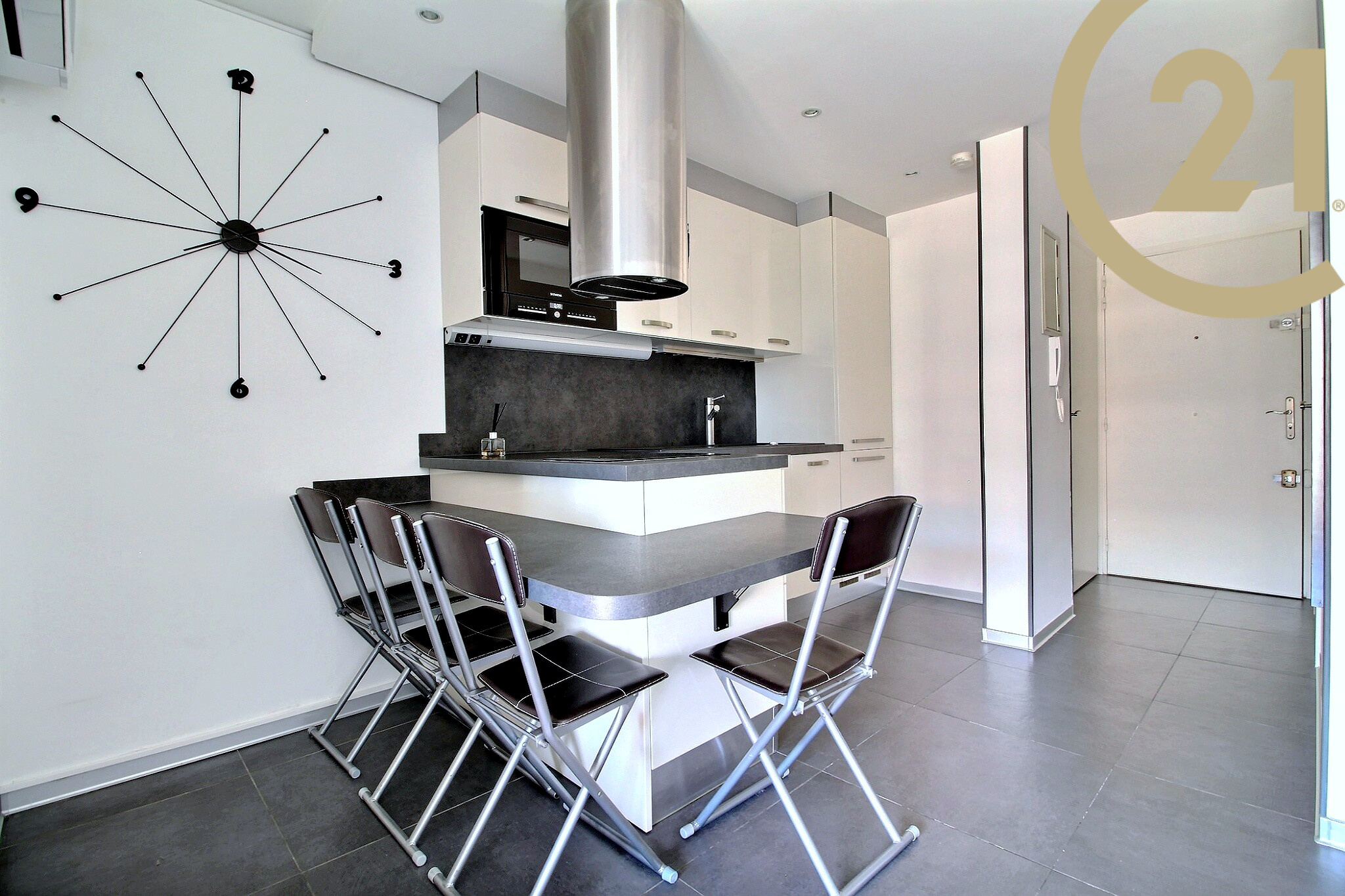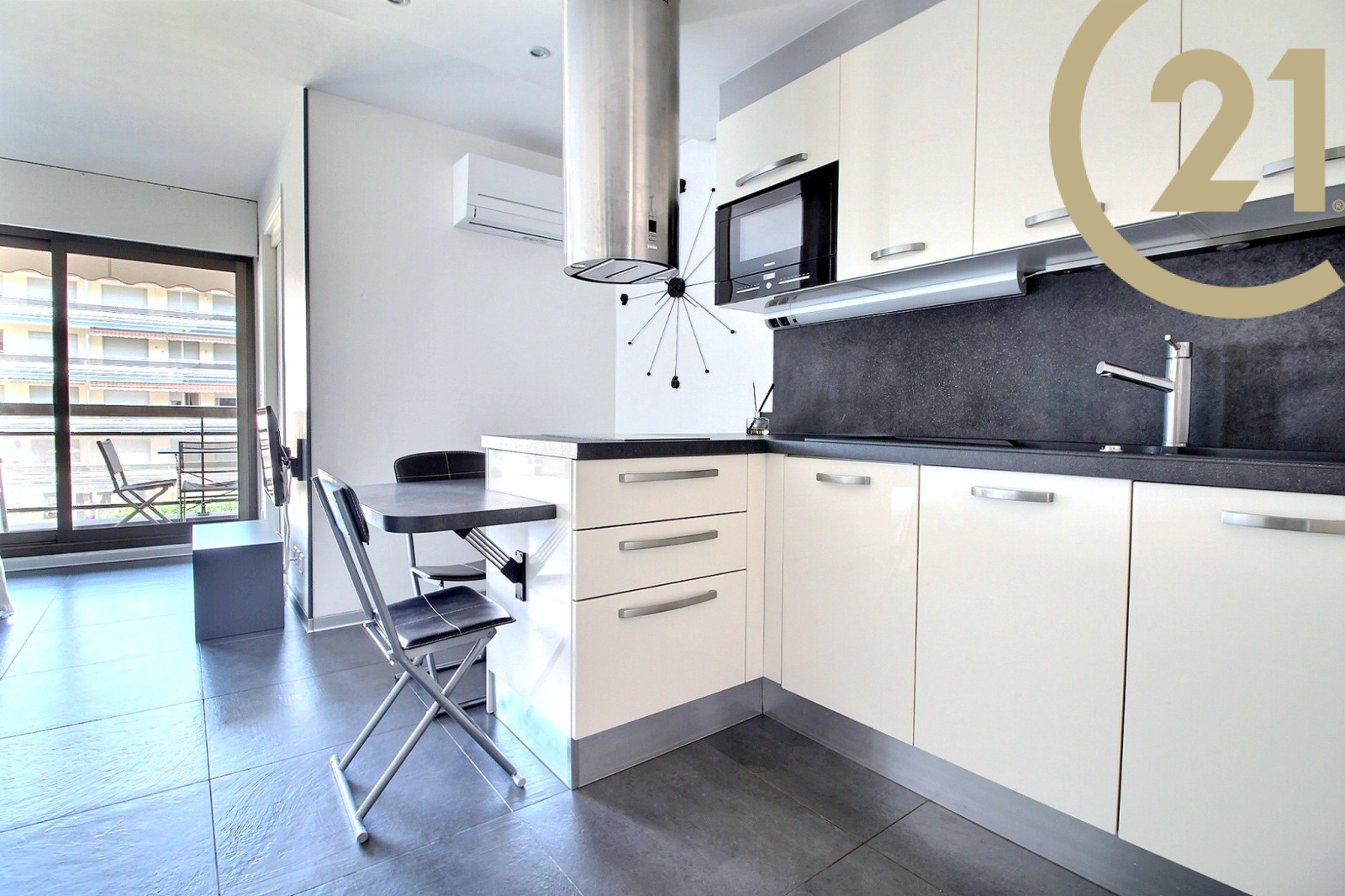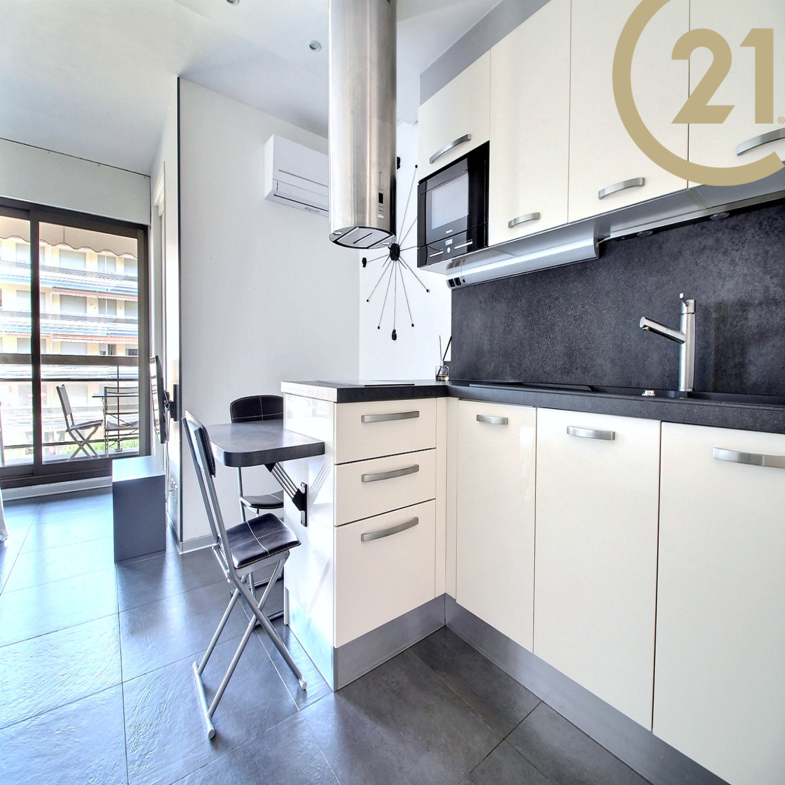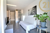 EXCLUSIVITE FREJUS PLAGE - Superbe studio cabine entièrement rénové situé dans une résidence prisée avec ascenseur implantée sur le front de mer à Fréjus plage. Ce joli appartement rénové avec des matériaux de qualité offre un séjour avec espace de rangements et belle cuisine américaine équipée avec îlot central donnant sur la terrasse, un coin cabine avec lits superposés et porte-fenêtre donnant également sur la terrasse, une belle salle d'eau avec grande douche et rangements et des WC séparés. L'appartement est vendu entièrement meublé. Une jolie terrasse carrelée équipée d'un store motorisé complète ce bien. Climatisation réversible, double vitrage et volet roulant motorisé. L'appartement est situé à quelques pas des plages, des commerces et du port de Fréjus. Copropriété de 192 lots principaux. Charges annuelles : 479 €