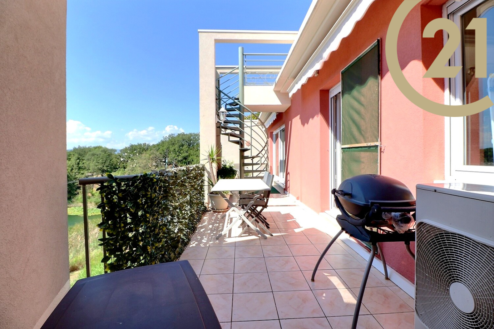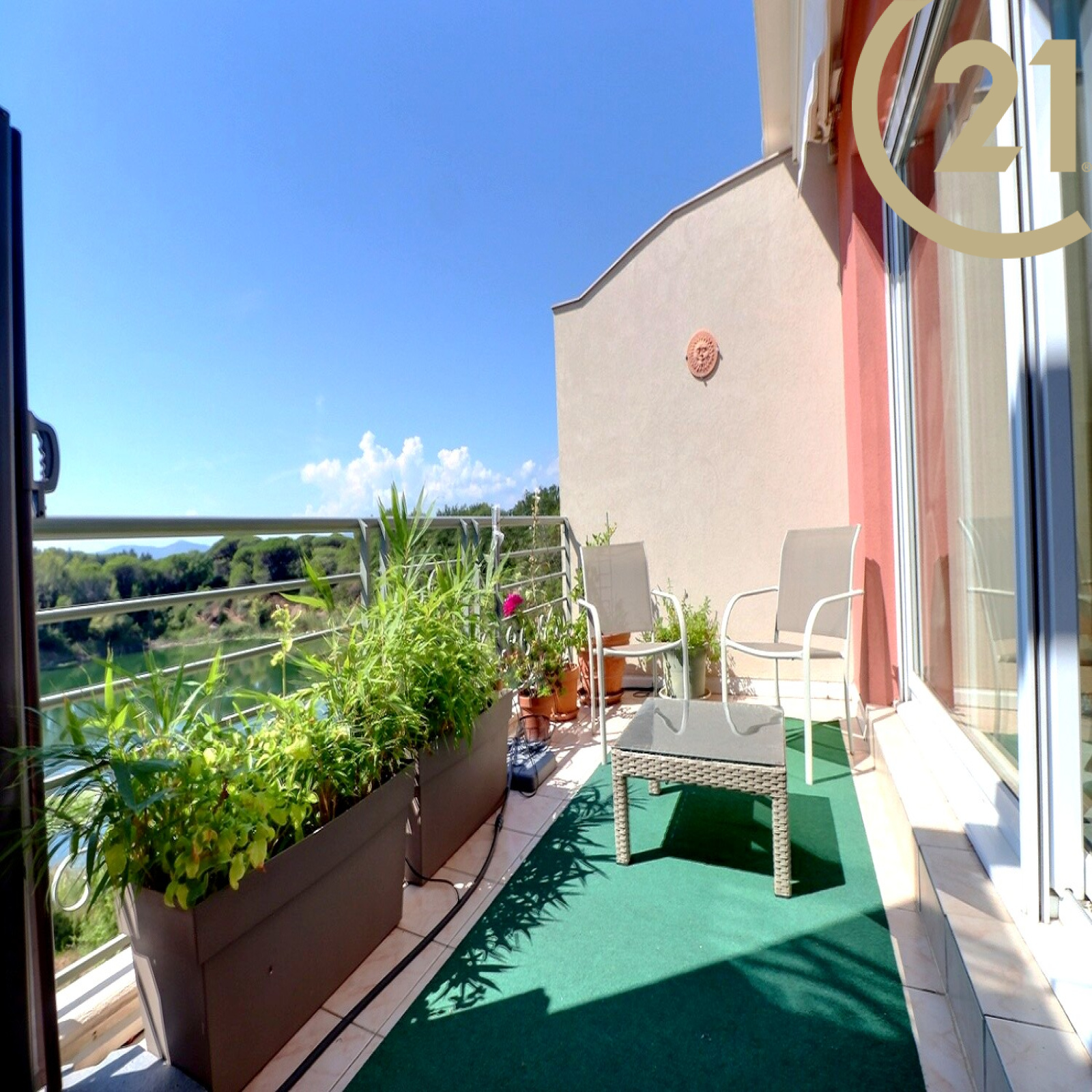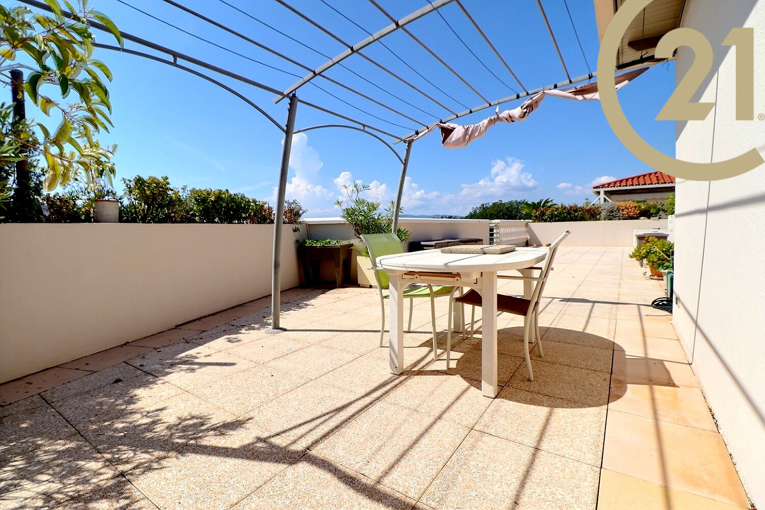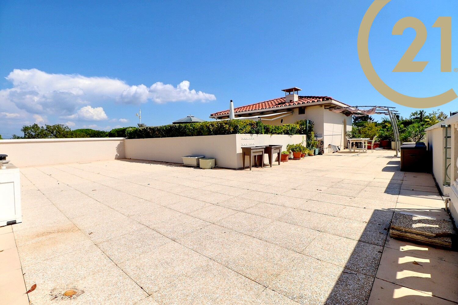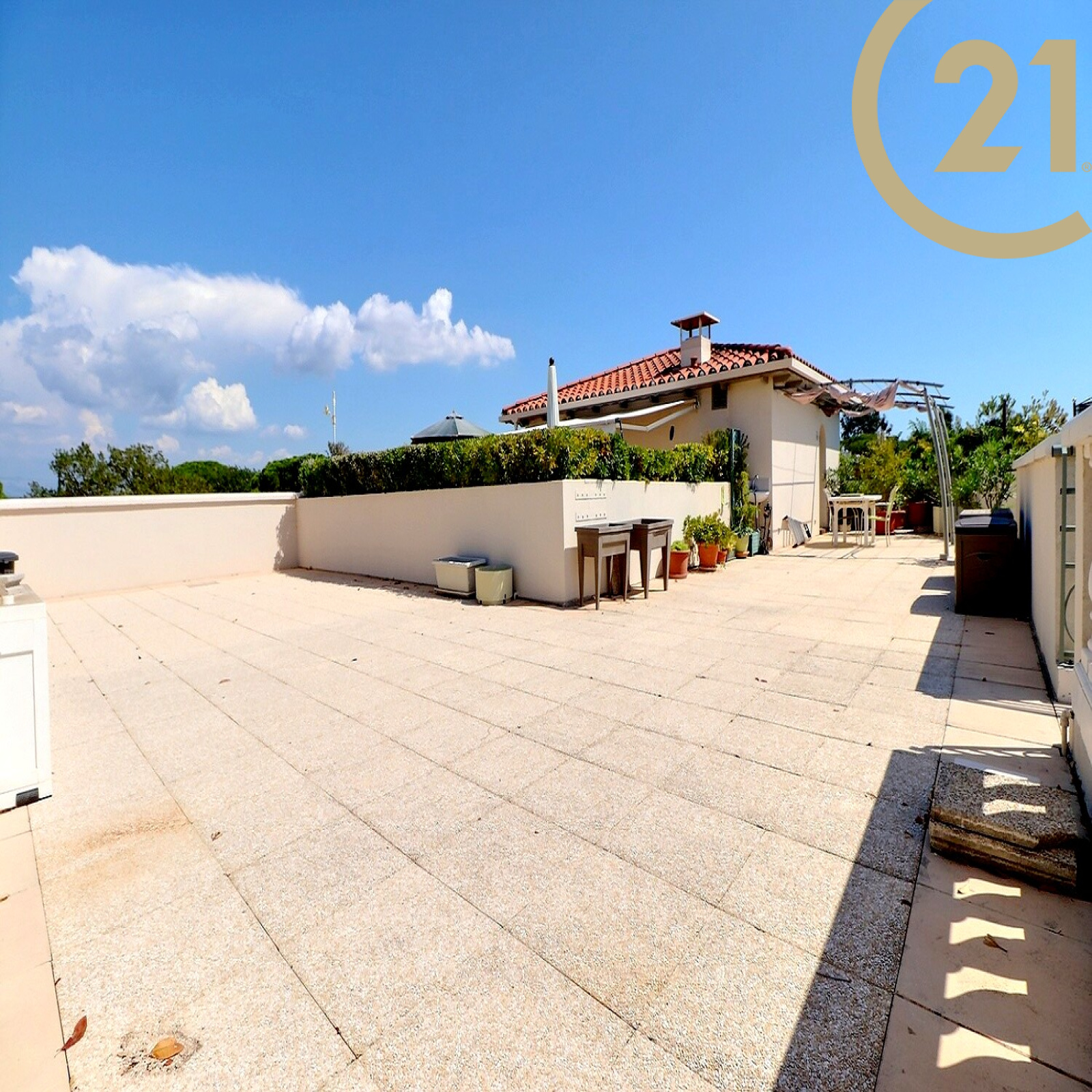 Son solarium de 120 m² vous séduira avec sa vue panoramique sur la mer et le lac. Vous trouverez également un local électrifié sur le solarium pouvant servir de cuisine d'été.