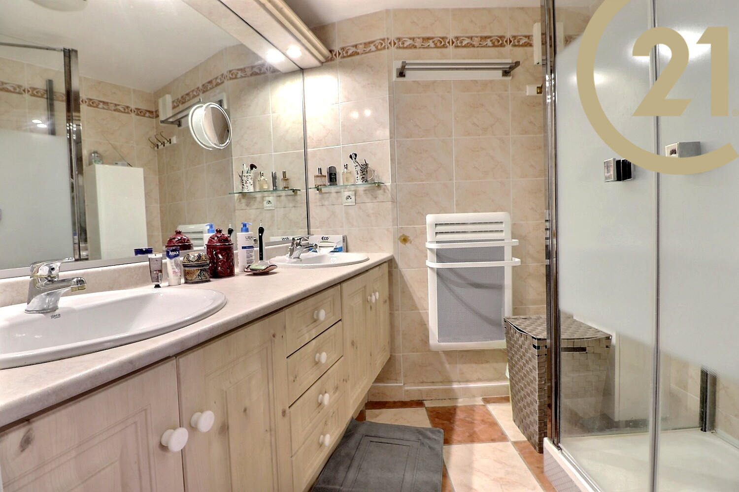 Il se situe au 3ème et dernier étage avec ascenseur, il bénéficie d'un lumineux salon-séjour, d'une cuisine équipée indépendante (possibilité cuisine ouverte) avec accès sur une grande terrasse de 24 m² exposée plein sud, de 3 belles chambres avec placards dont une ayant un accès terrasse, d'une salle d'eau, d'une salle de bains et de deux WC indépendants.