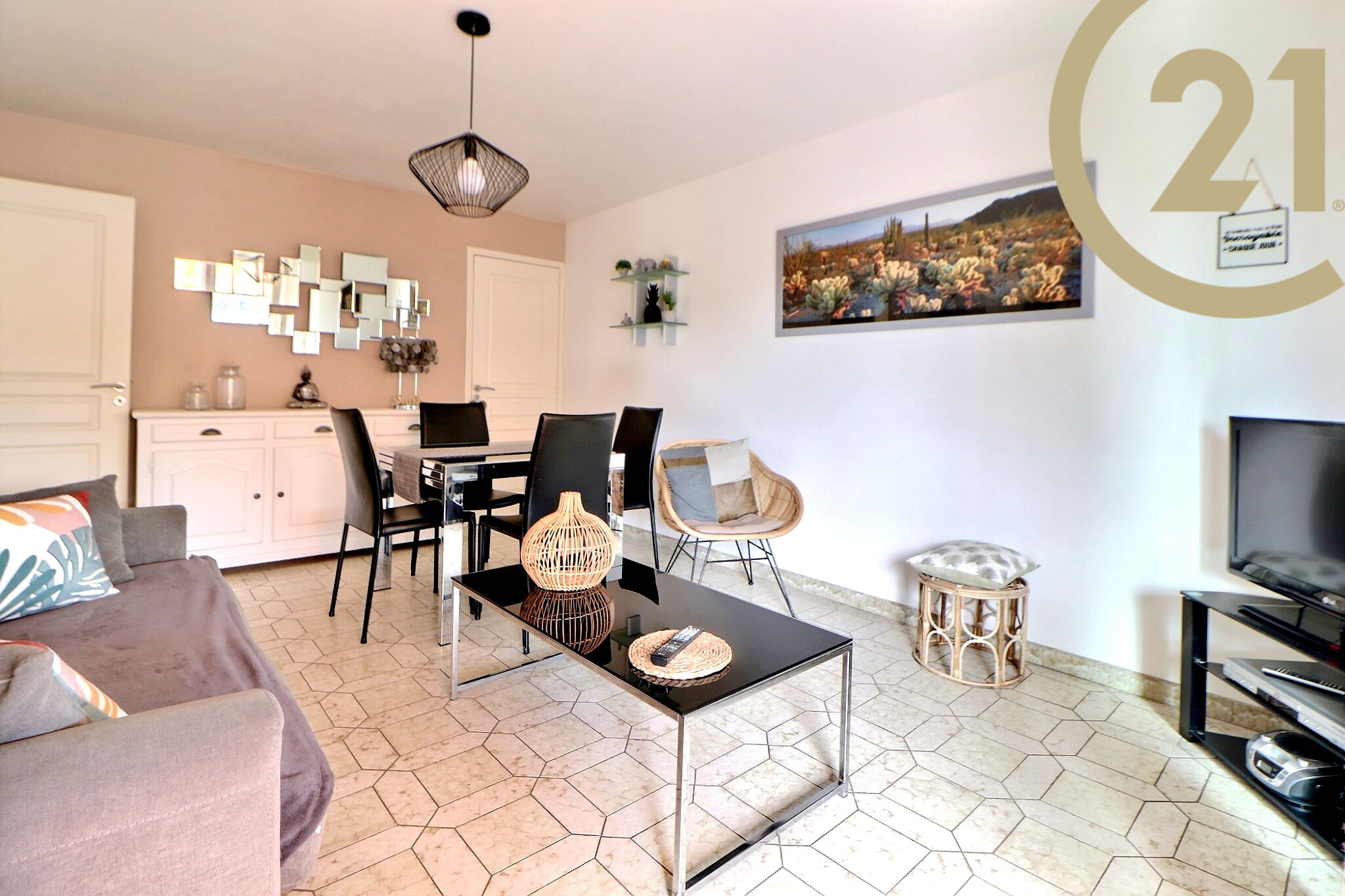 FREJUS PROCHE COMMERCES ET PLAGE- Appartement 2 pièces de 50 m² situé dans une résidence sécurisée avec ascenseur à proximité des commerces et des plages. Cet appartement bien agencé et parfaitement entretenu offre une entrée avec cellier, un séjour de 20 m² donnant sur une terrasse de 12 m², une cuisine indépendante entièrement équipée, une chambre avec placard, une salle d'eau et des WC séparés. L'appartement est vendu meublé. Une place de parking et une cave complètent cet appartement. Commerces, plages, établissements scolaires et accessibles en quelques minutes à pied. Copropriété de 36 lots à usage d'habitation. Charges courantes annuelles : 816 €.
