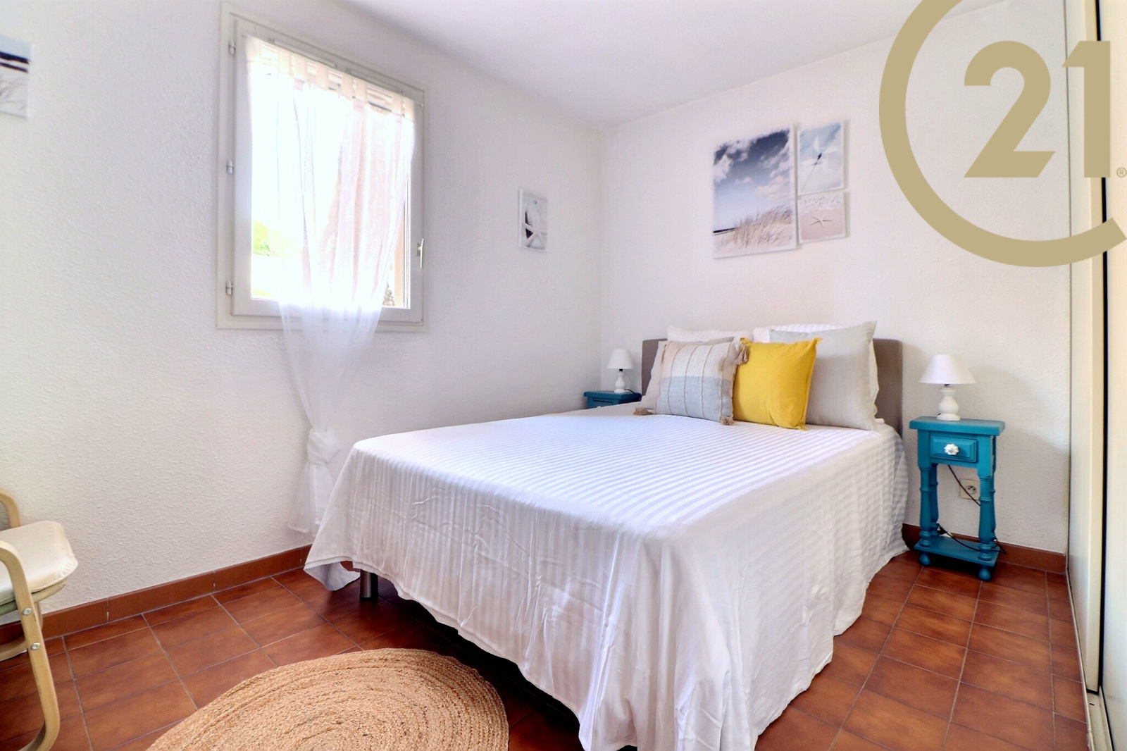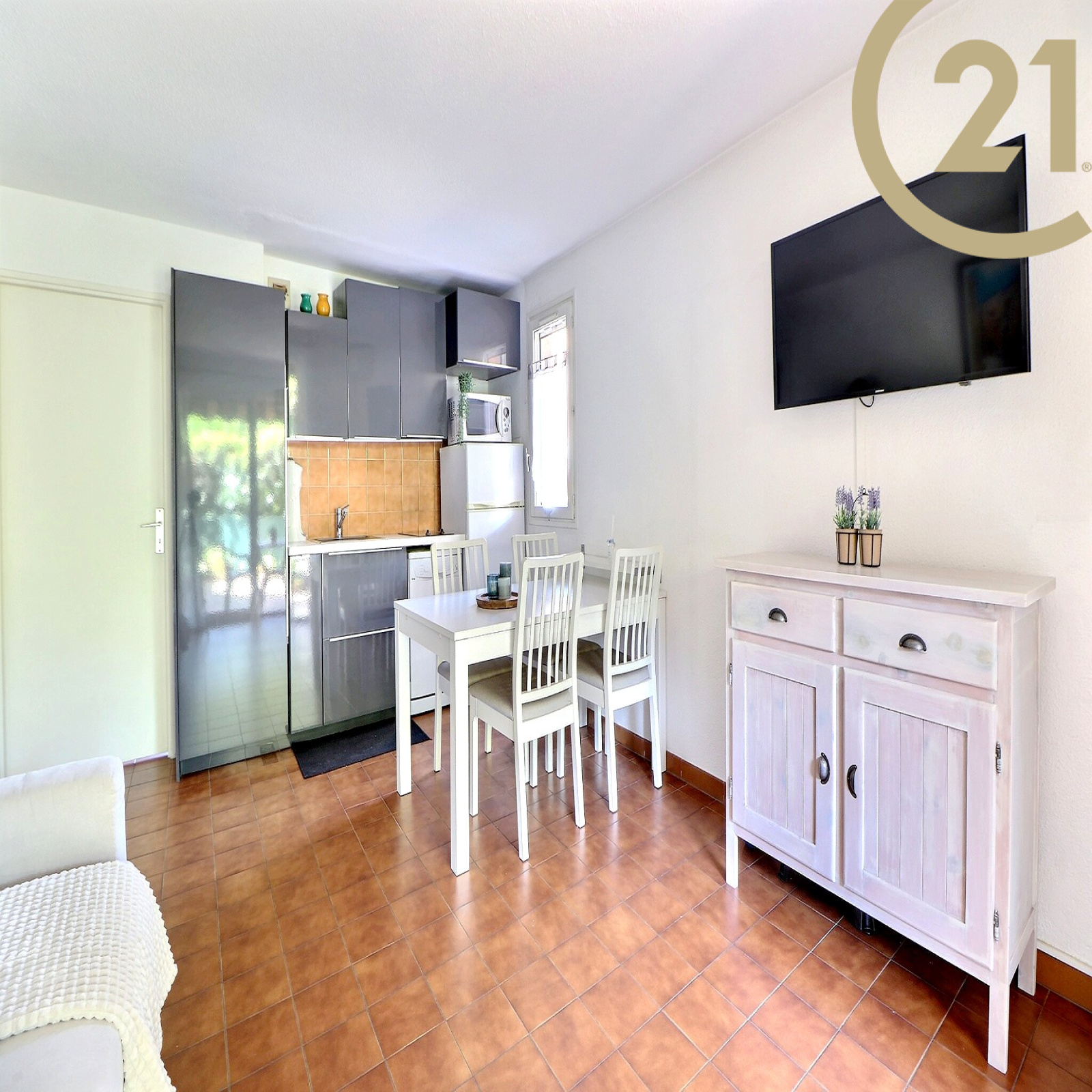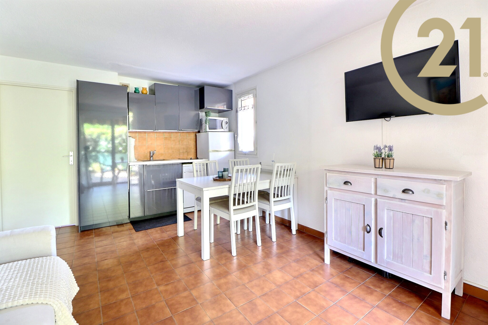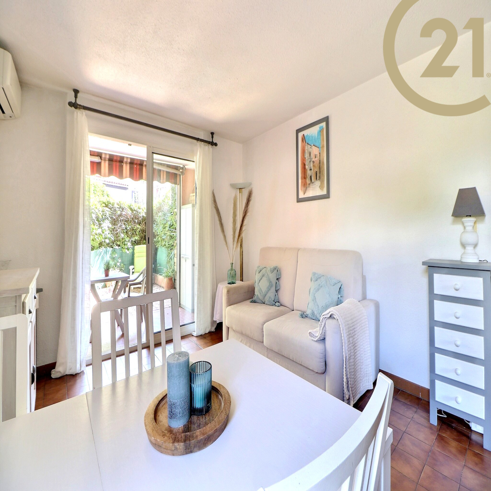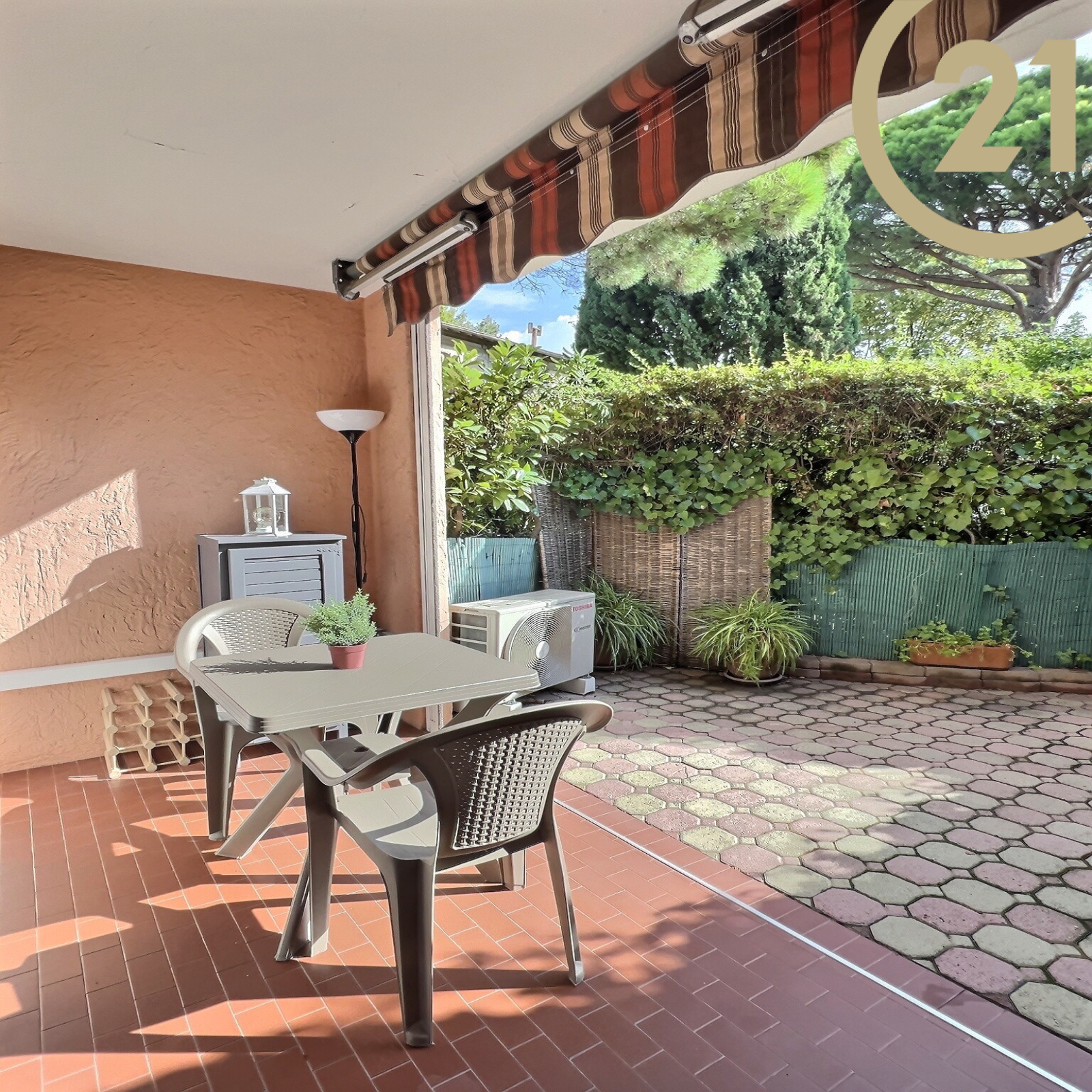 EXCLUSIVITE - FREJUS PROCHE PLAGES PORT ET BASE NATURE - Coquet appartement 2 pièces de 33.78 m² situé en rez-de-jardin dans une résidence sécurisée à quelques minutes à pied de la base nature, du port, des plages et des commerces. Cet appartement traversant et bien entretenu offre un hall d'entrée, un séjour avec cuisine ouverte équipée, une chambre avec placard et une salle d'eau avec WC. Une jolie terrasse couverte équipée d'une moustiquaire et d'un store prolongée d'un jardin vous permettra de profiter de l'extérieur. Appartement climatisé et baie à galandage dans le séjour. Ce bien est vendu avec un cellier et une place de parking privative. Local vélos dans la résidence. Tous commerces, centre-ville, port et plages accessibles à pied. Copropriété de 69 lots à usage d'habitation. Charges annuelles : 896 €.