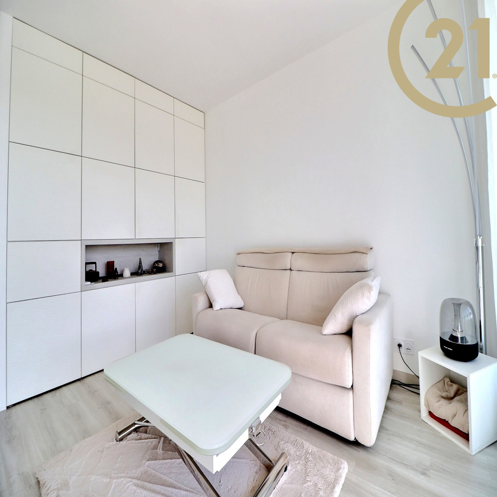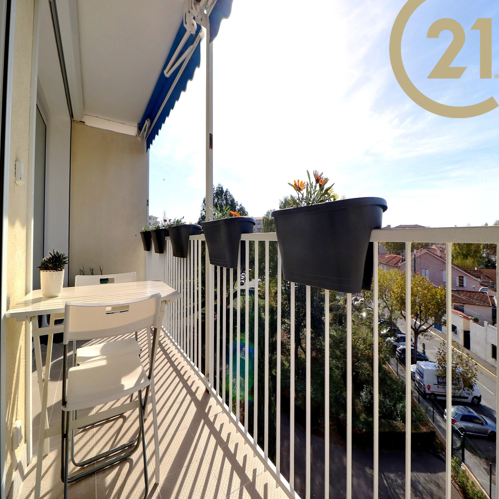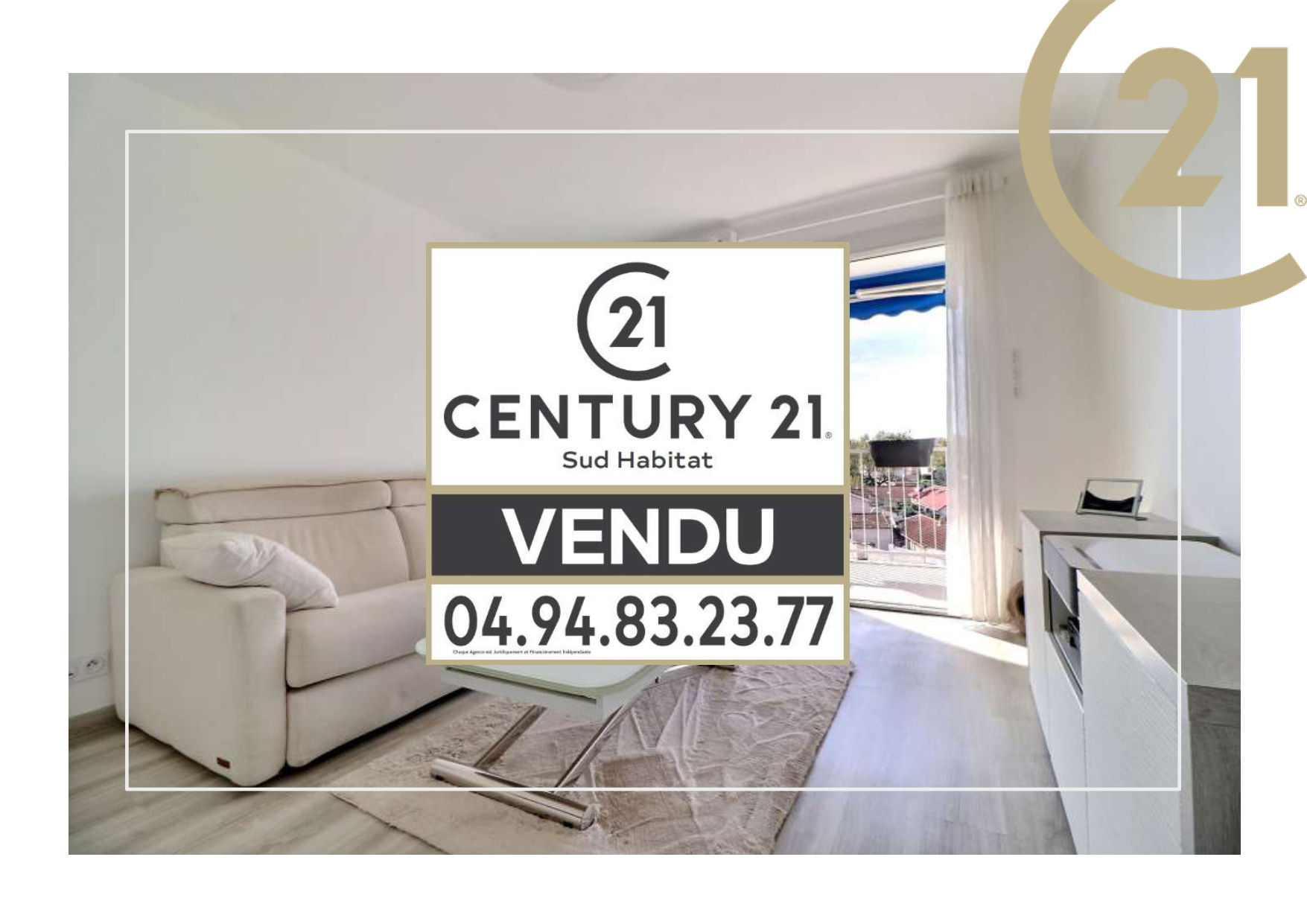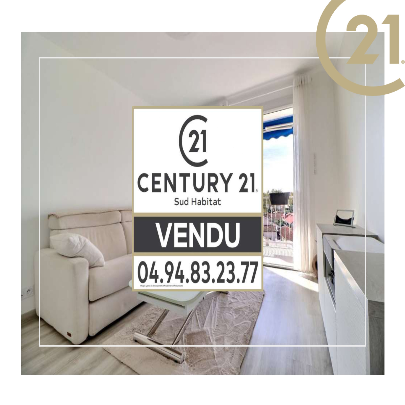 Le séjour et la chambre donnent sur une terrasse exposée SUD. Appartement climatisé.