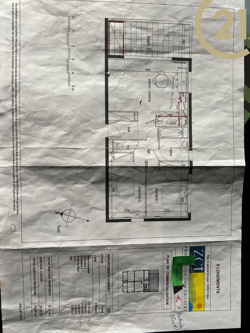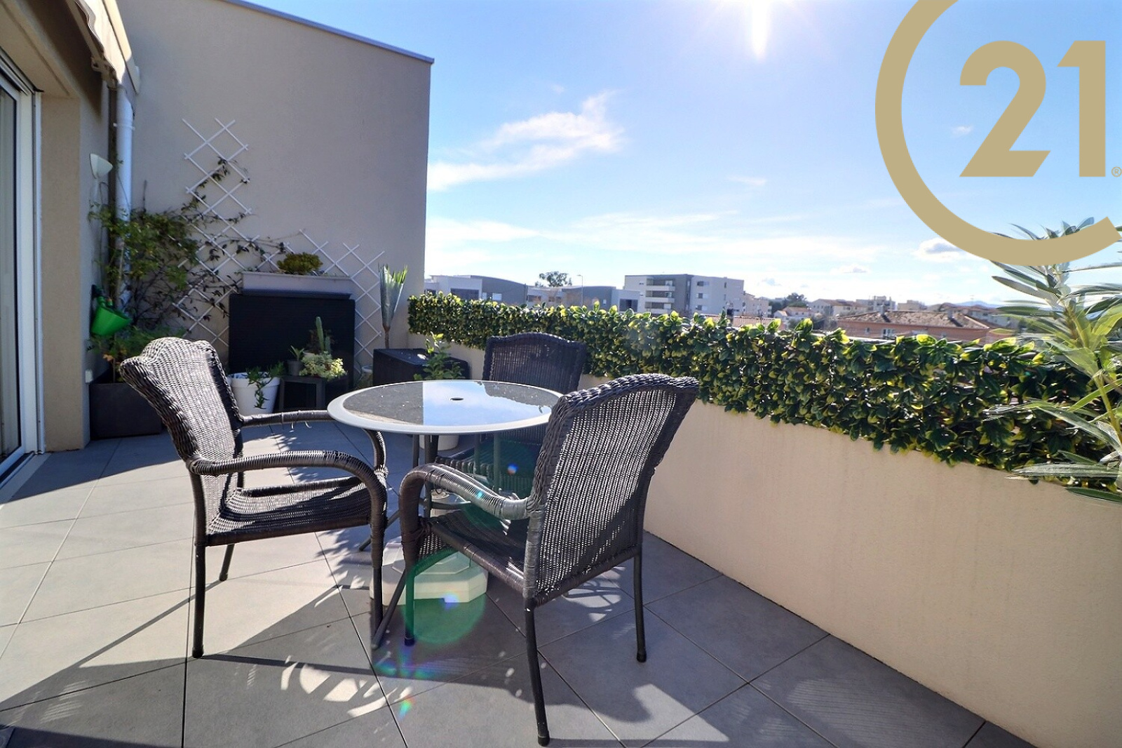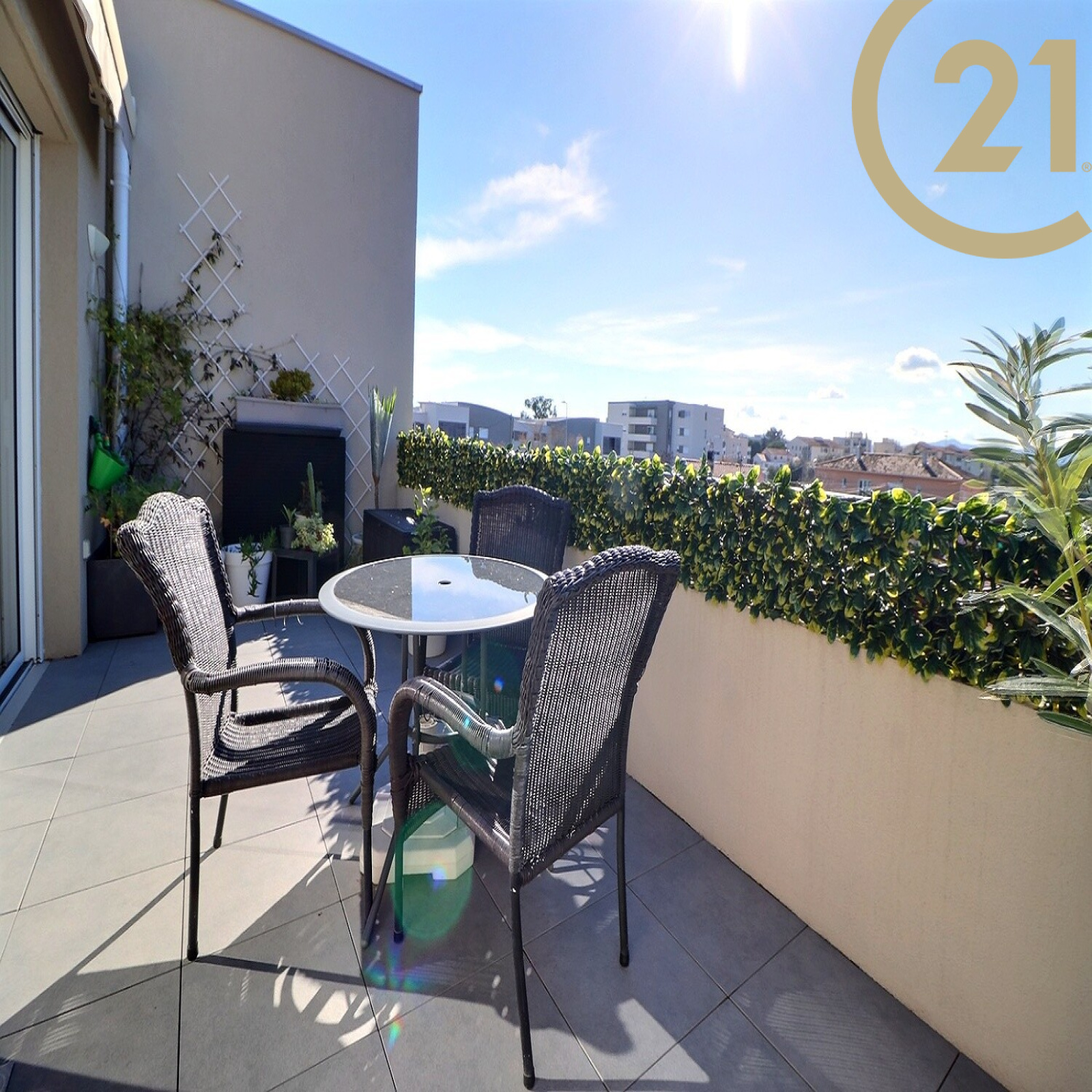 FREJUS - Bel appartement 3 pièces situé en dernier étage d'une résidence de standing récente. Cet appartement traversant et lumineux offre un agencement idéal. Il se compose : d'un hall d'entrée avec grand placards, d'un séjour avec cuisine ouverte de qualité donnant sur une spacieuse terrasse de 15 m² avec vue dégagée. L'espace nuit se compose de deux belles chambres avec placards, d'une salle de bains moderne et d'un WC indépendant. L'appartement est vendu avec une place de parking privative. Belles prestations : double vitrage, volets électriques, climatisation réversible..