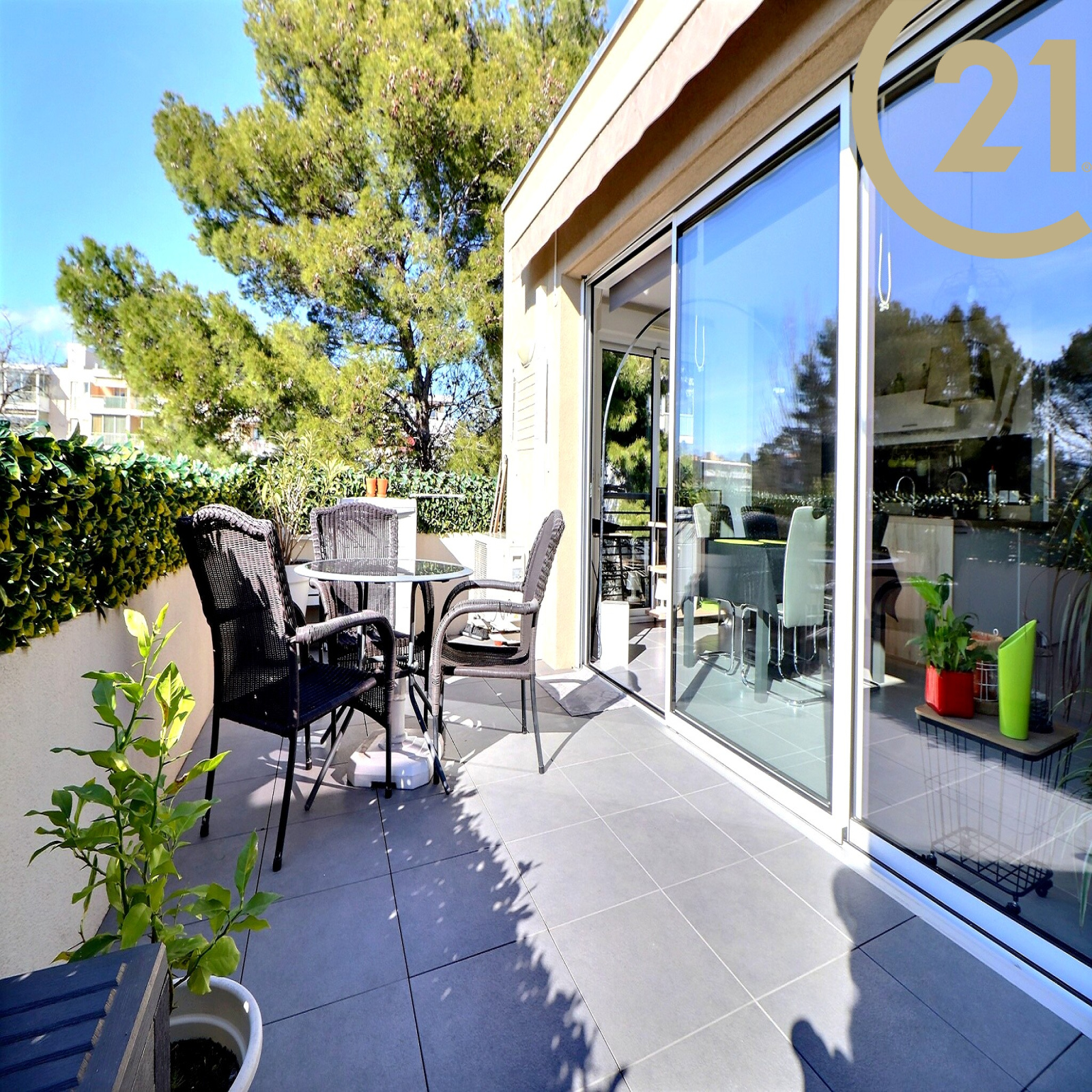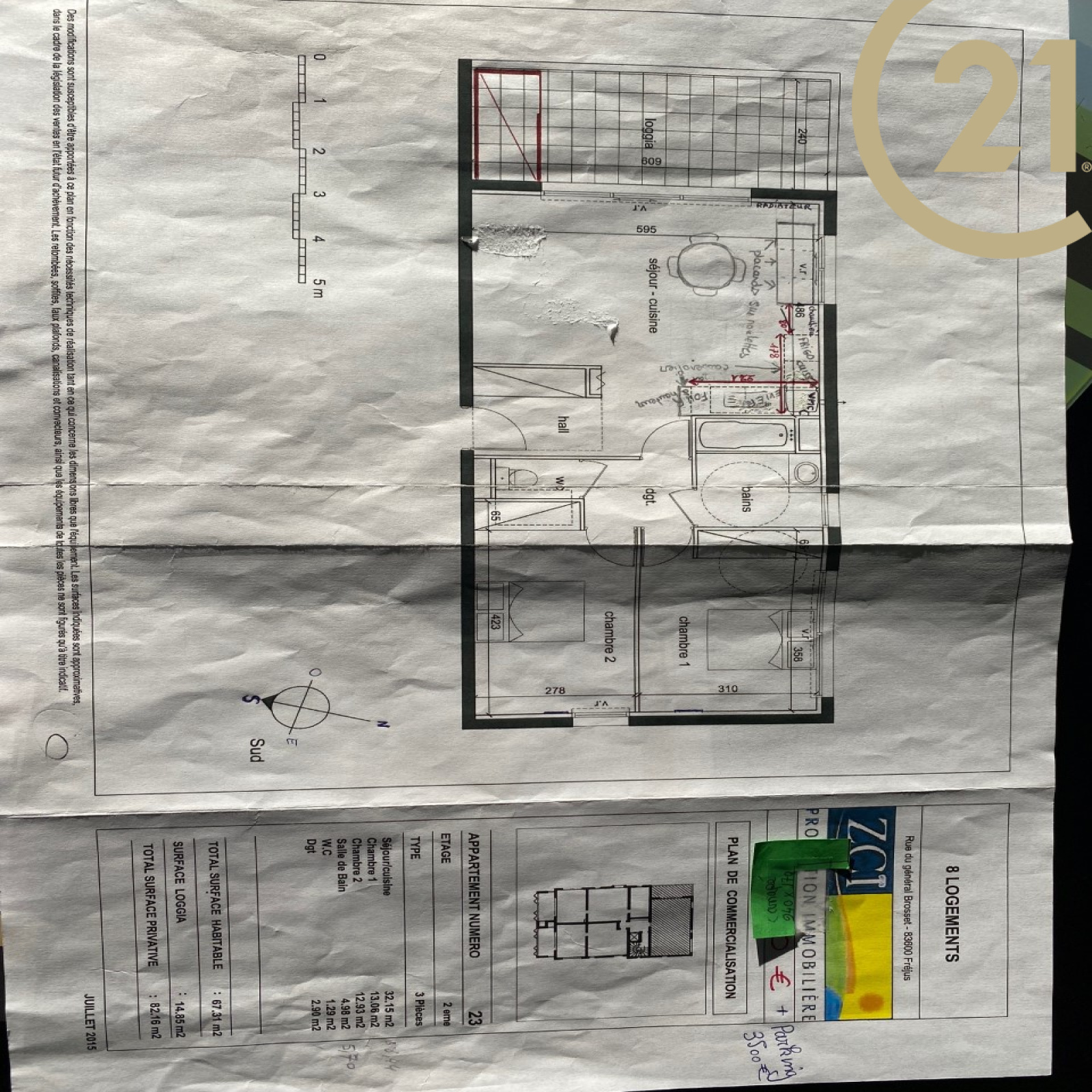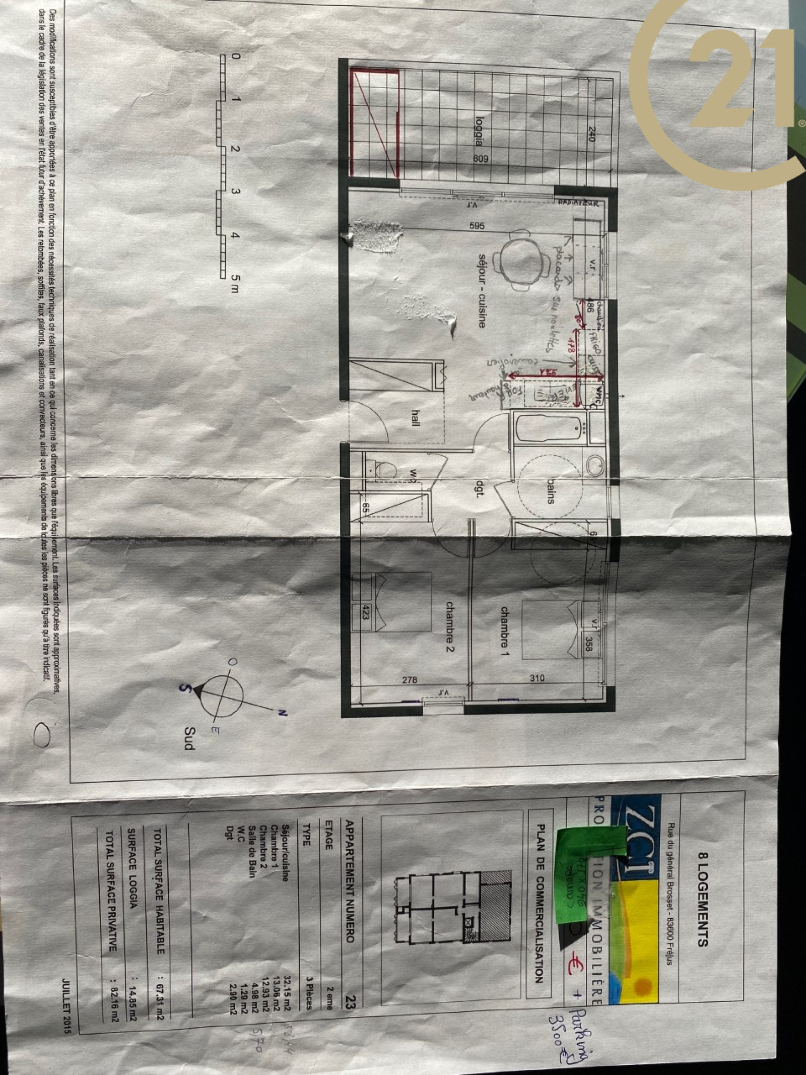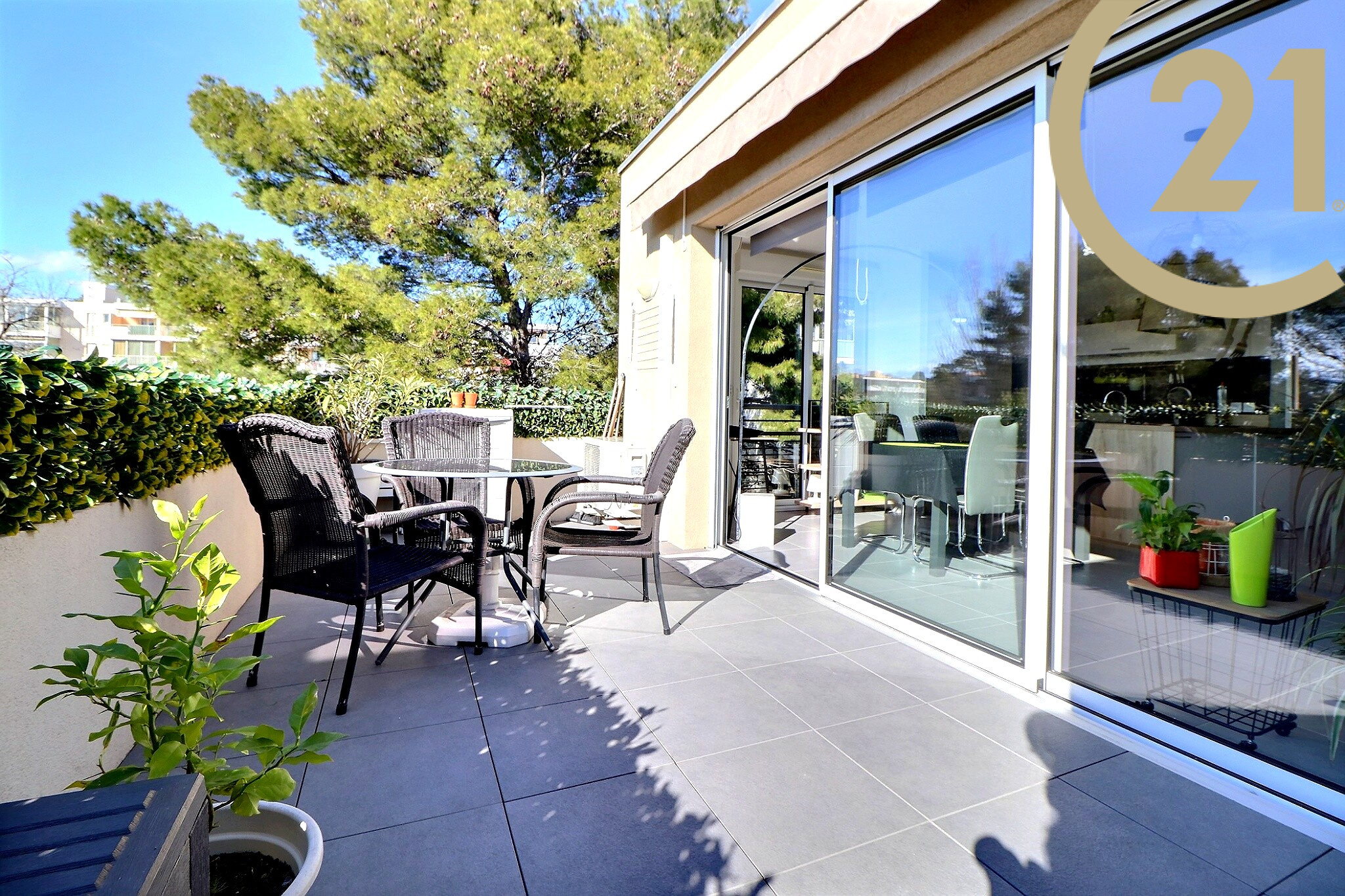 FREJUS - Bel appartement 3 pièces situé en dernier étage d'une résidence de standing récente. Cet appartement traversant et lumineux offre un agencement idéal. Il se compose : d'un hall d'entrée avec grand placards, d'un séjour avec cuisine ouverte de qualité donnant sur une spacieuse terrasse de 15 m² avec vue dégagée. L'espace nuit se compose de deux belles chambres avec placards, d'une salle de bains moderne et d'un WC indépendant. L'appartement est vendu avec une place de parking privative. Belles prestations : double vitrage, volets électriques, climatisation réversible..
