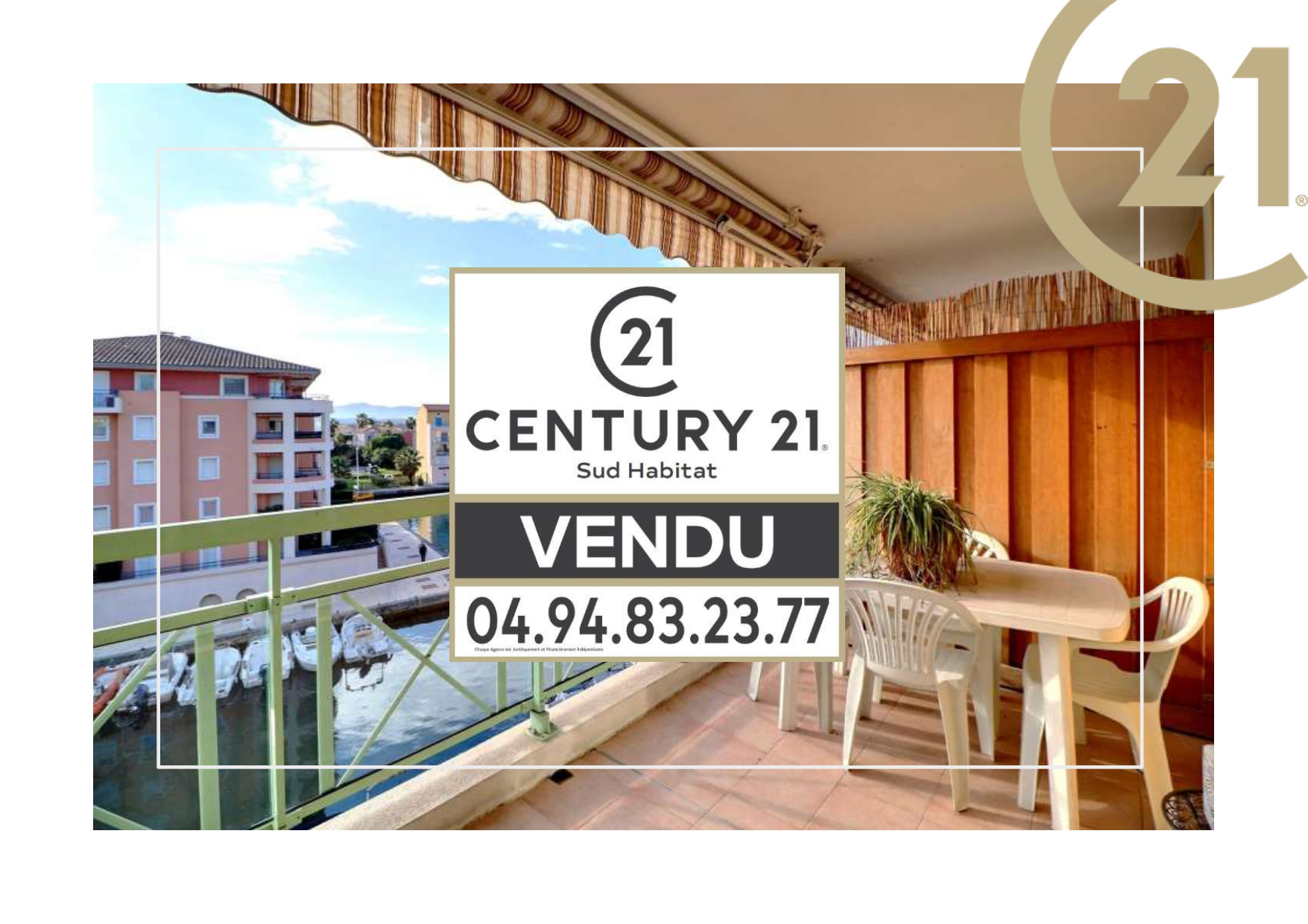 EXCLUSIVITE PORT-FREJUS - Dans une résidence de standing au calme, bel appartement T2 de 34 m² en étage avec ascenseur, offrant une magnifique vue sur le canal de Port-Fréjus.