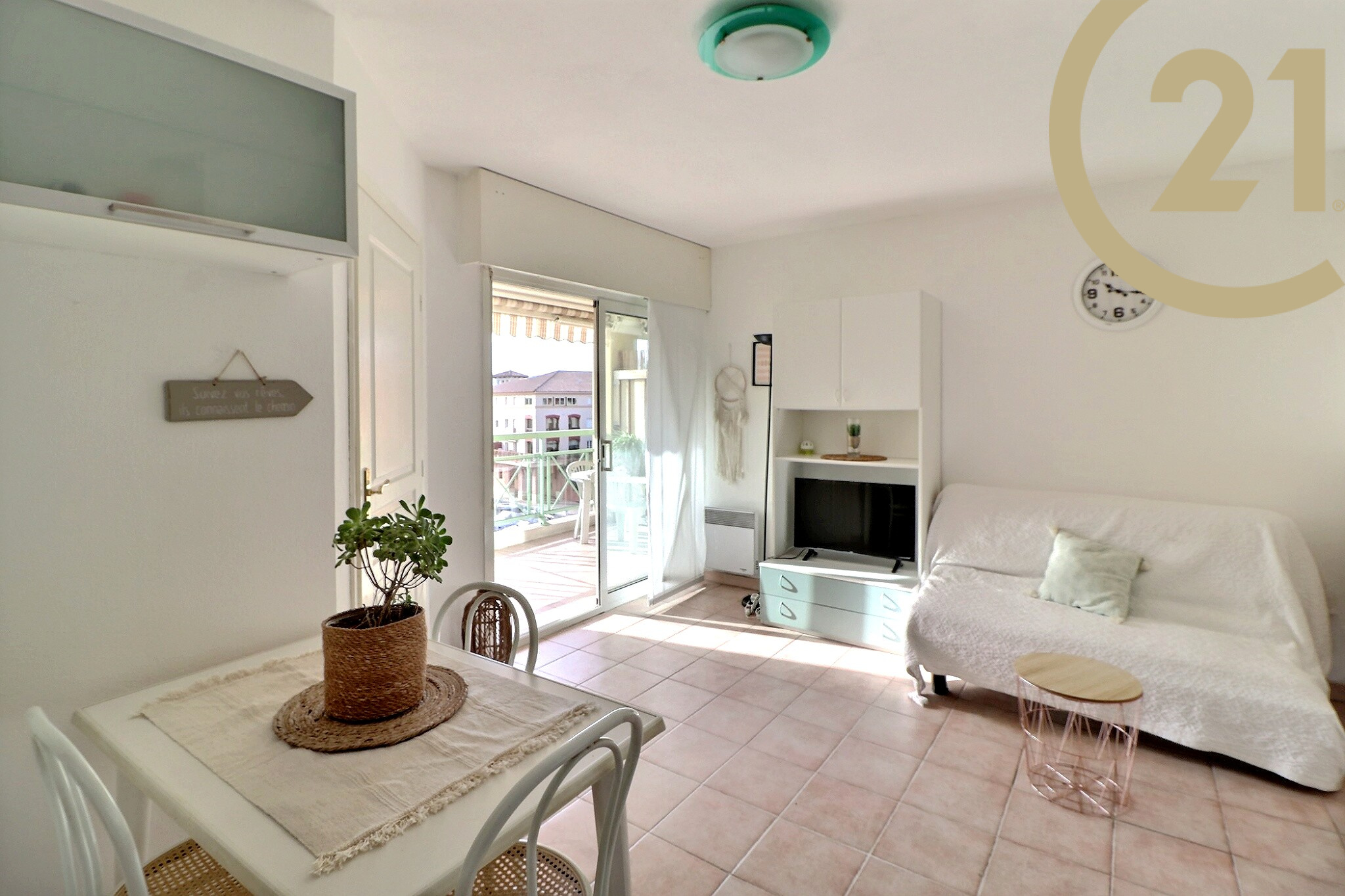 Bien agencé, il se compose : d'une grande entrée avec coin cabine, d'un LUMINEUX séjour avec cuisine équipée prolongée par la terrasse de 8 m², d'une chambre offrant l'accés à la terrasse, d'une salle de bains et d'un WC indépendant.