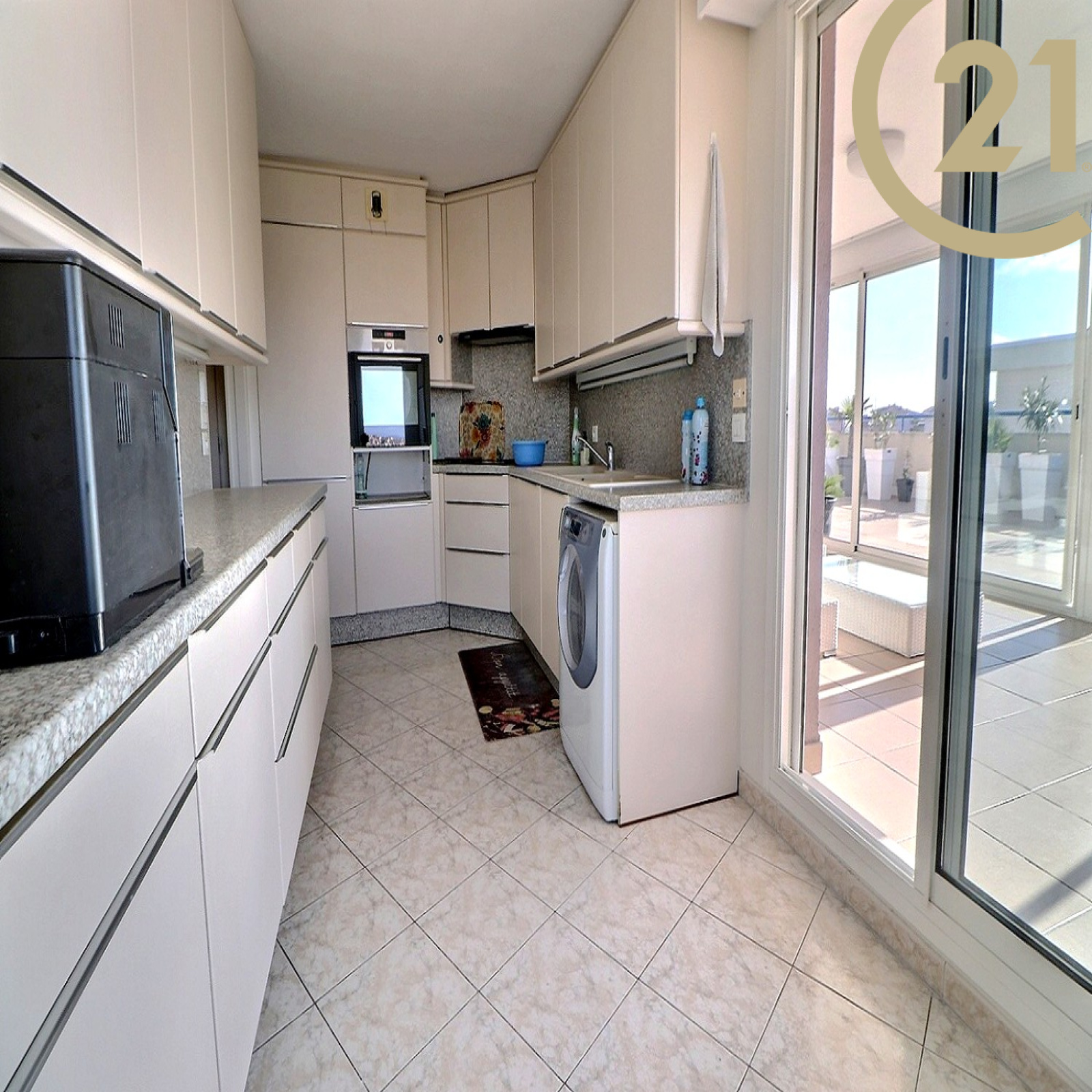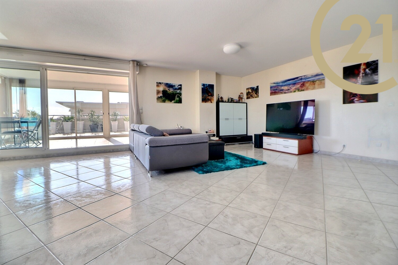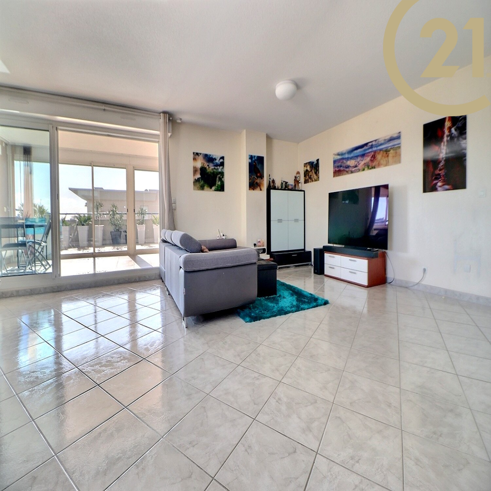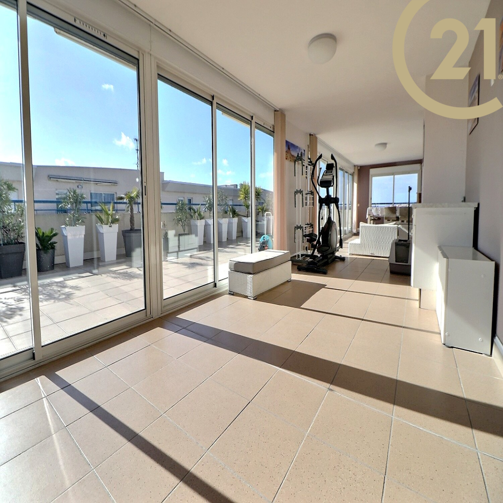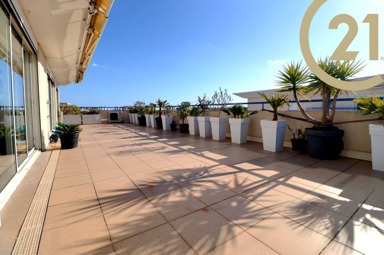 FREJUS PLAGE - Situé à quelques minutes du bord de mer, superbe appartement 4 pièces dans une résidence avec piscine situé au 5ème et dernier étage avec ascenseur. Ce bien d'exception est composé : d'une grande pièce de vie donnant sur une spacieuse véranda lumineuse ainsi qu'une grande terrasse plein Sud, d'une cuisine indépendante aménagée et équipée, d'une chambre avec salle d'eau, d'une autre chambre avec placard, d'une salle de bains et de 2 WC. Un grand garage en sous-sol et une place de parking extérieure complètent ce bien.