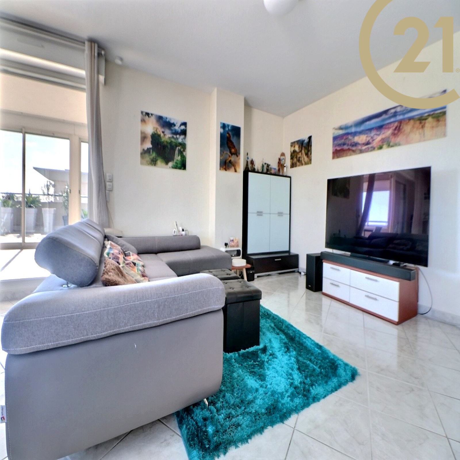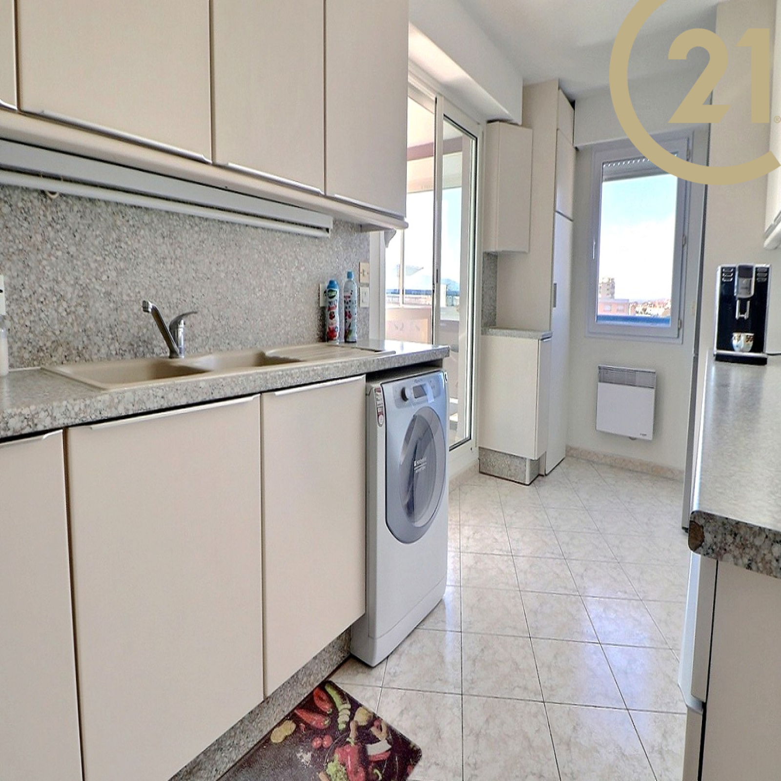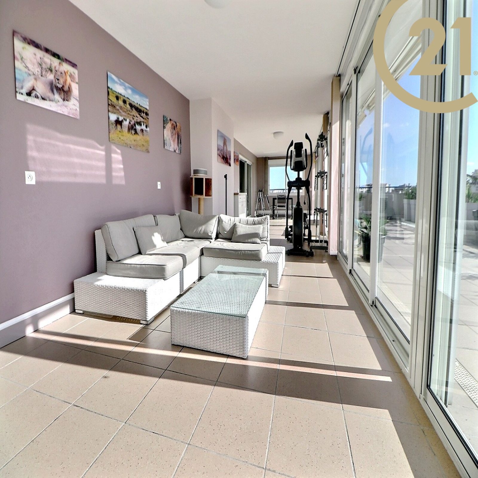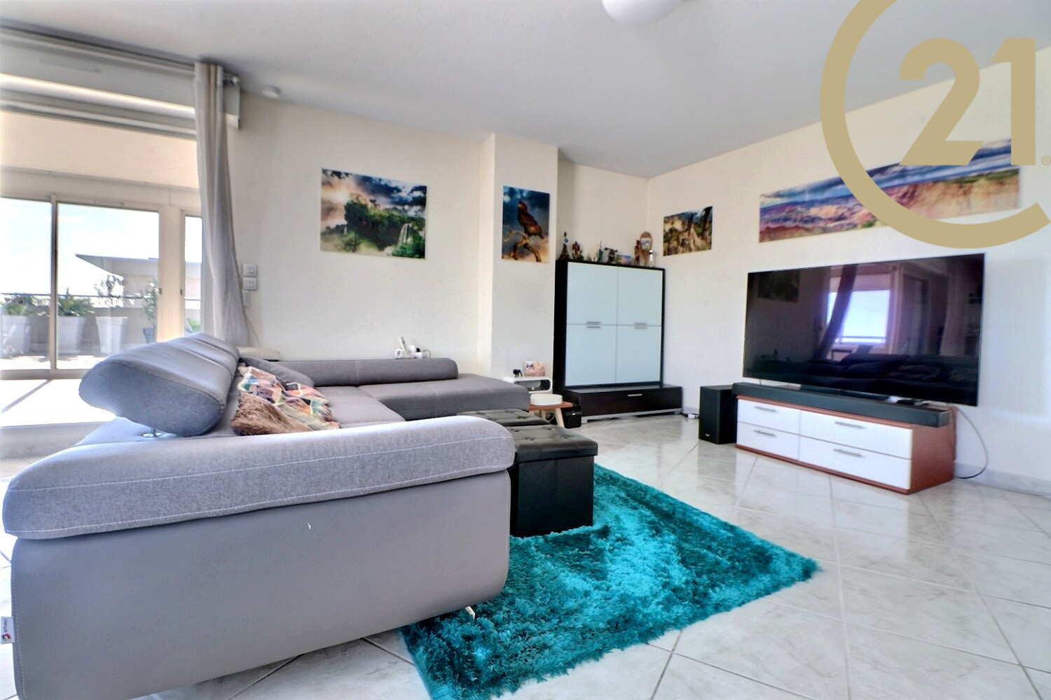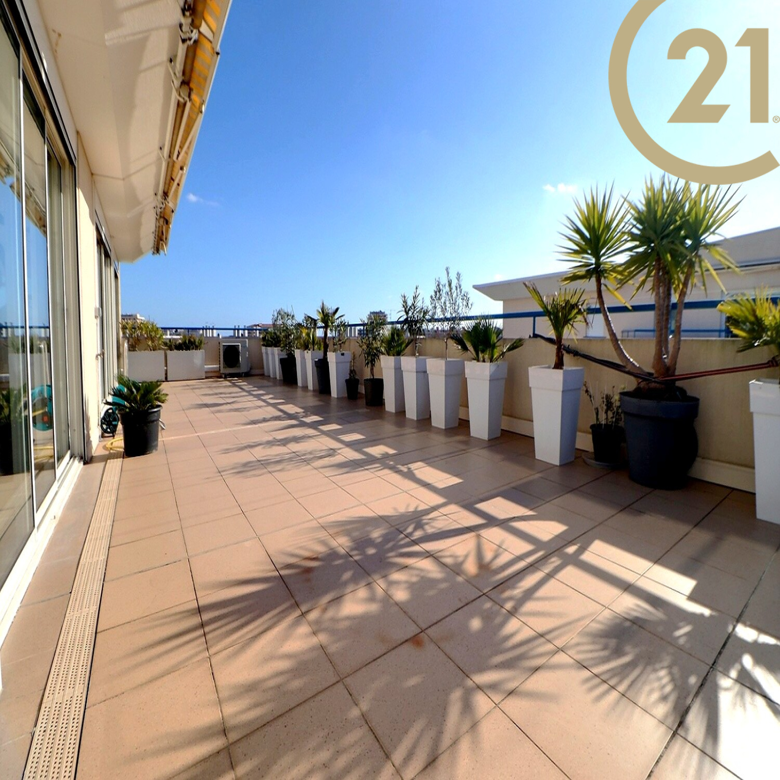 FREJUS PLAGE - Situé à quelques minutes du bord de mer, superbe appartement 4 pièces dans une résidence avec piscine situé au 5ème et dernier étage avec ascenseur. Ce bien d'exception est composé : d'une grande pièce de vie donnant sur une spacieuse véranda lumineuse ainsi qu'une grande terrasse plein Sud, d'une cuisine indépendante aménagée et équipée, d'une chambre avec salle d'eau, d'une autre chambre avec placard, d'une salle de bains et de 2 WC. Un grand garage en sous-sol et une place de parking extérieure complètent ce bien.