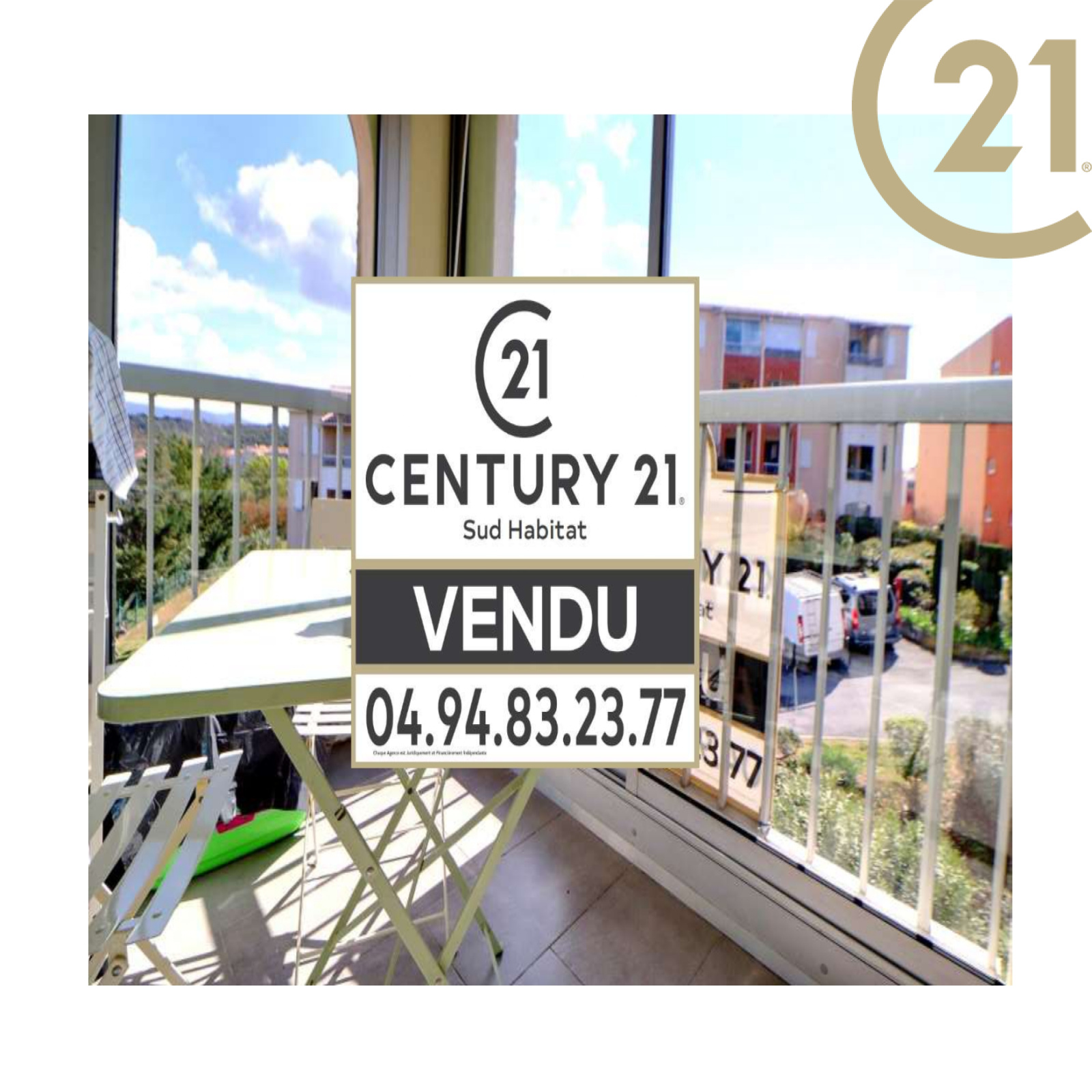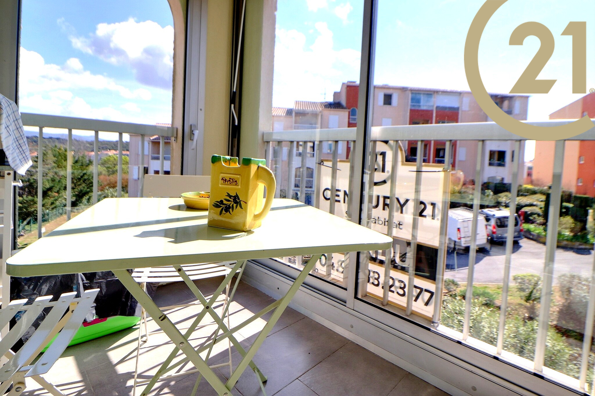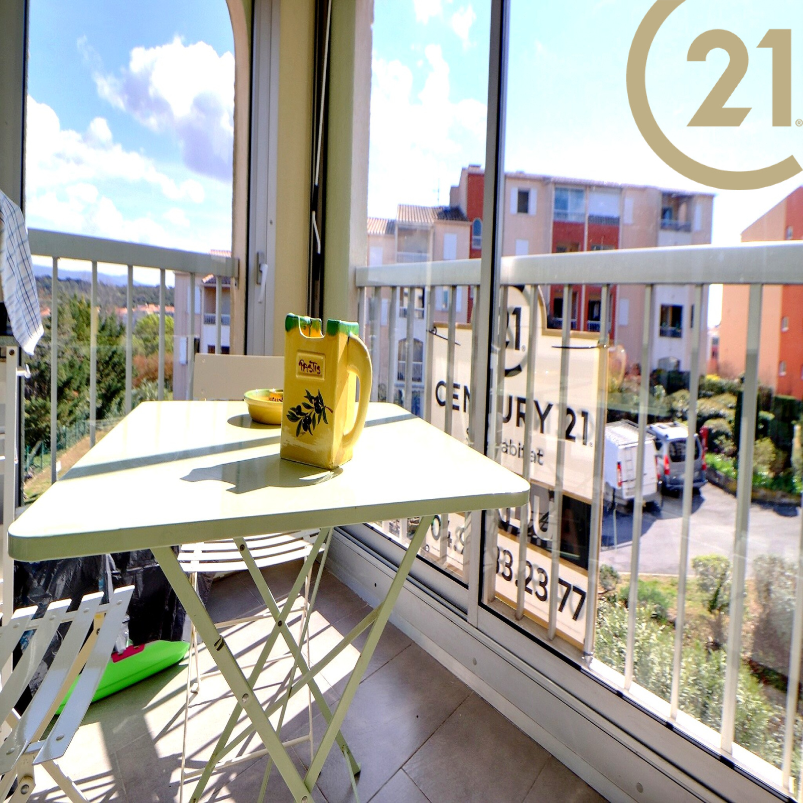 La loggia est équipée d'un store banne et donne sur la cour avec une exposition Sud.