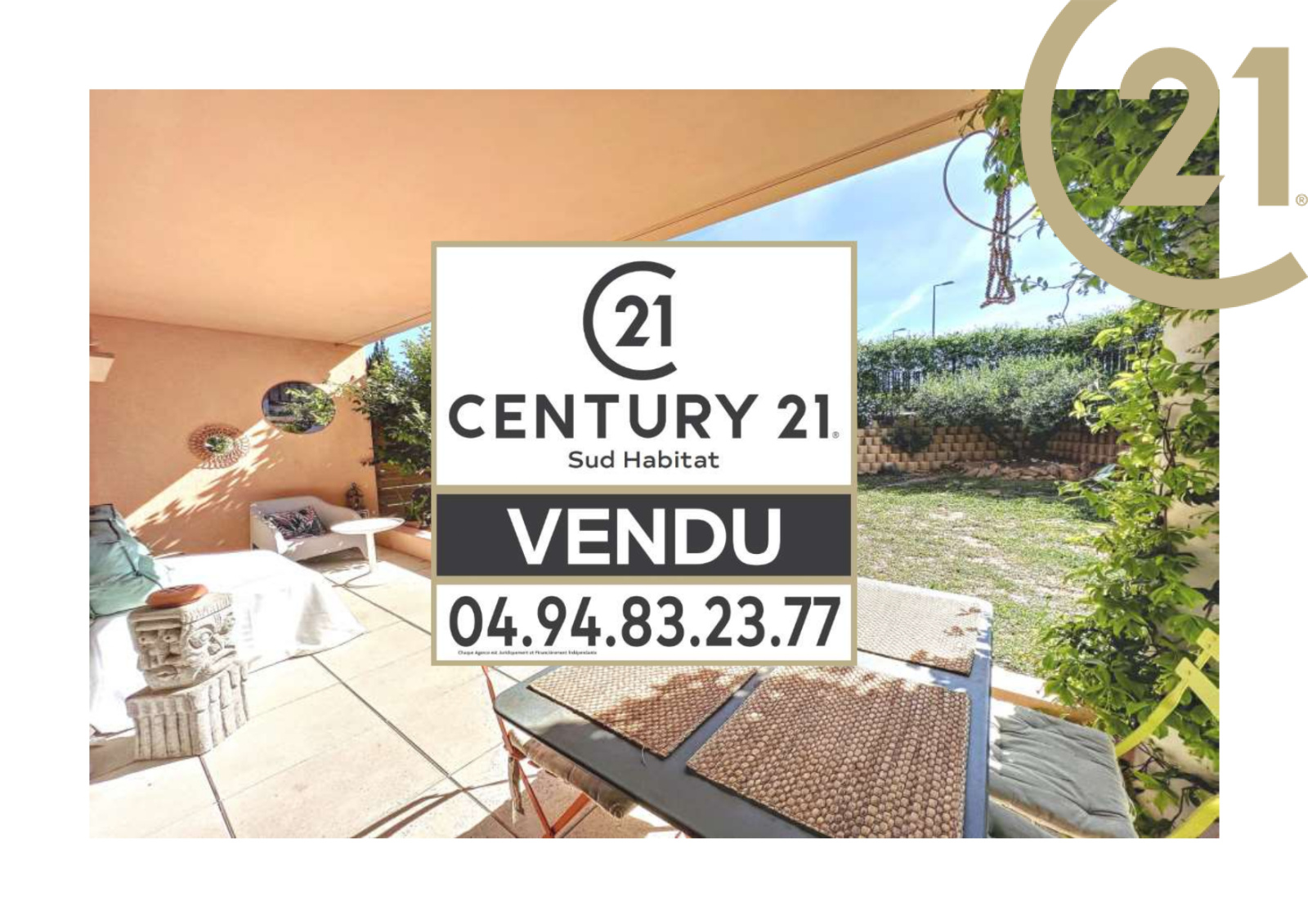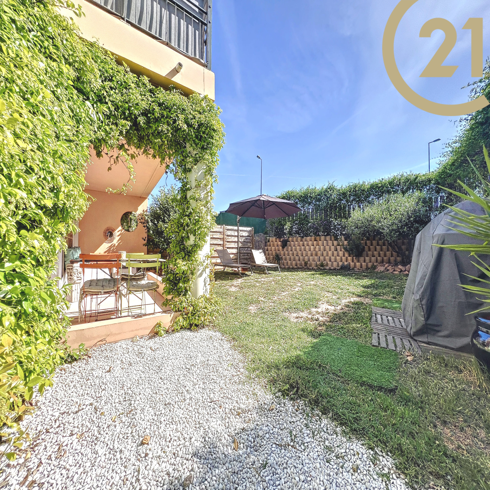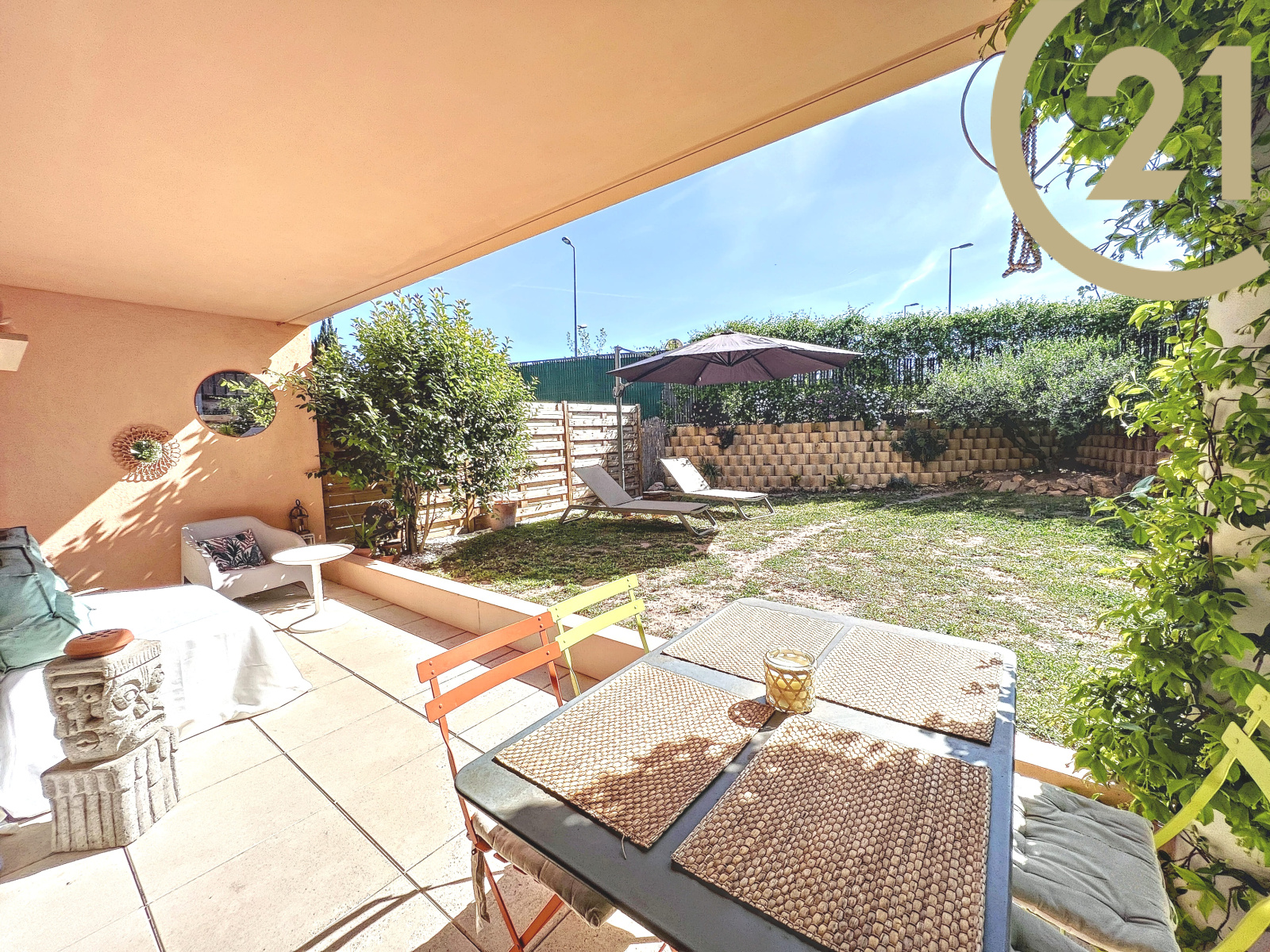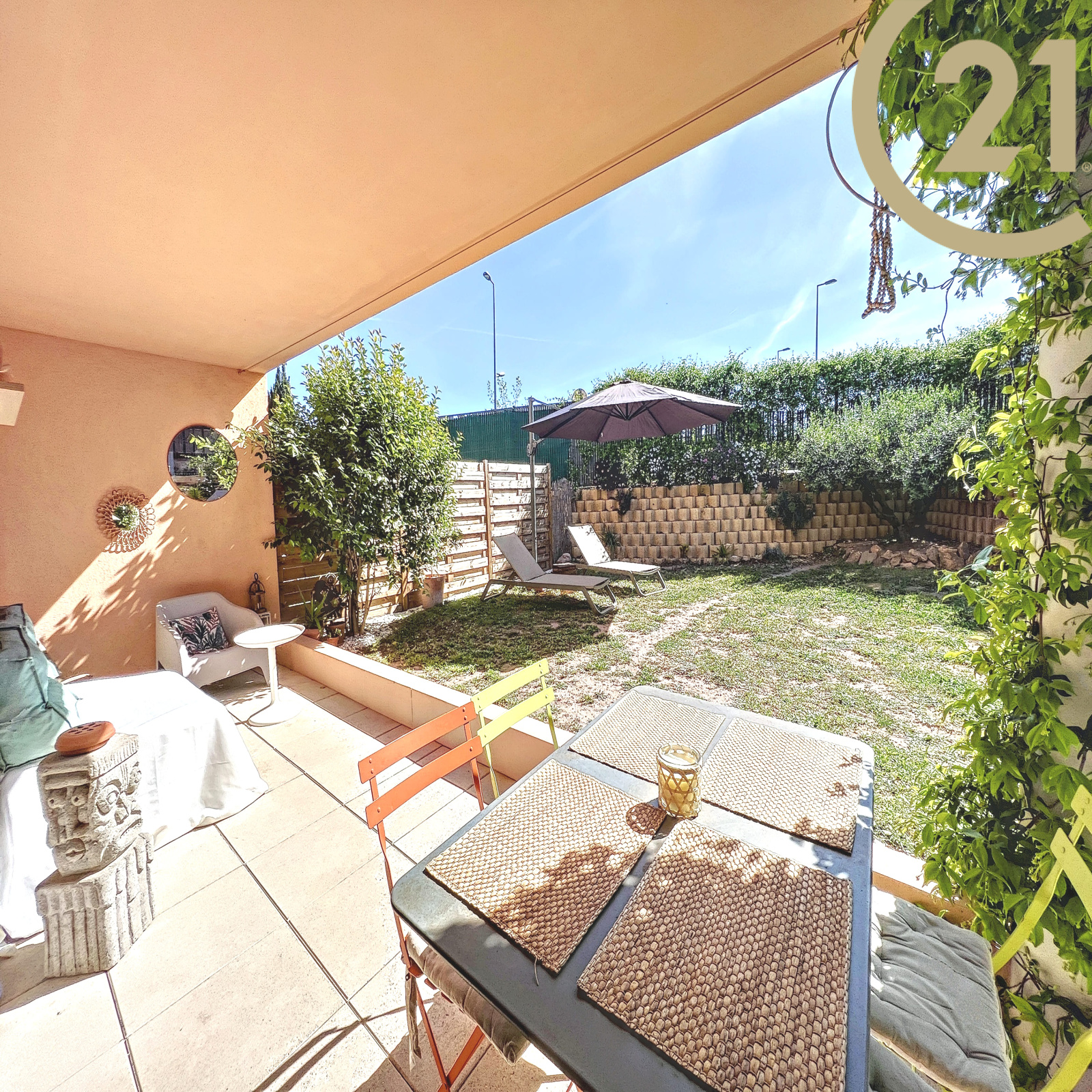 FREJUS - Bel appartement 3 pièces de 54.43 m² avec large terrasse couverte de 12.72 m² et grand jardin en angle de 105.88 m² situé dans une copropriété récente et sécurisée avec piscine à quelques minutes des commerces, établissements scolaires et accès autoroute.