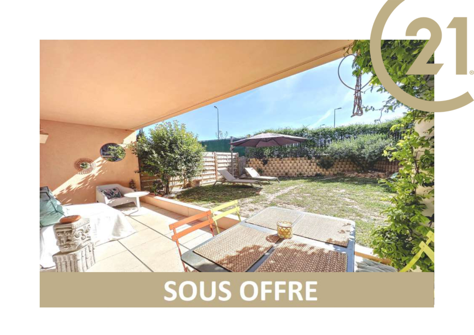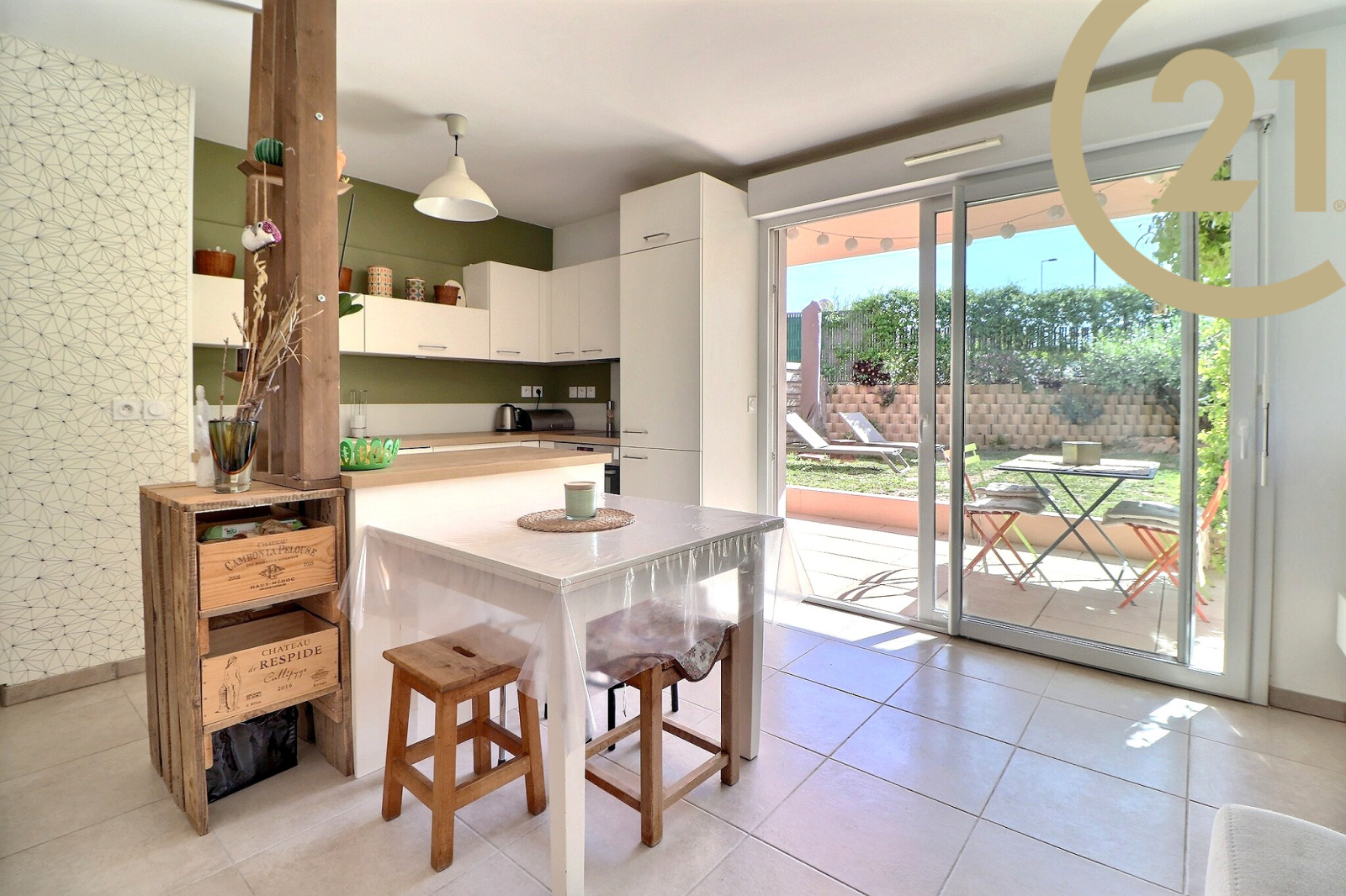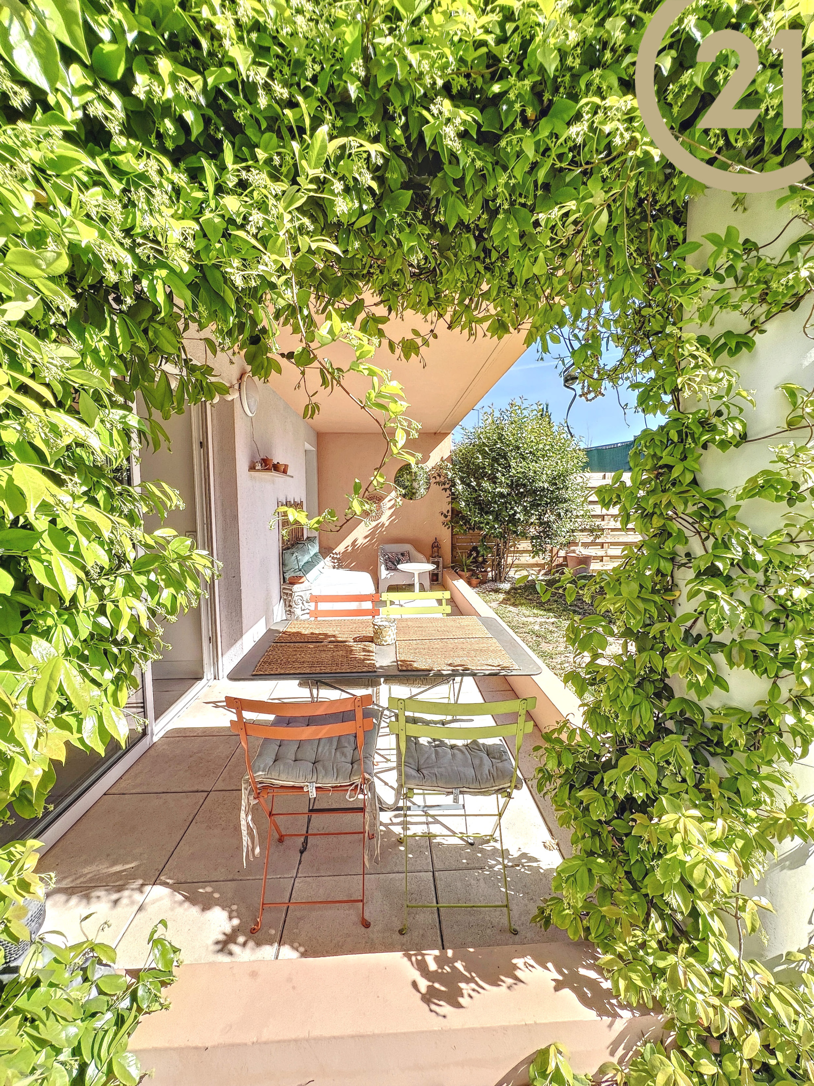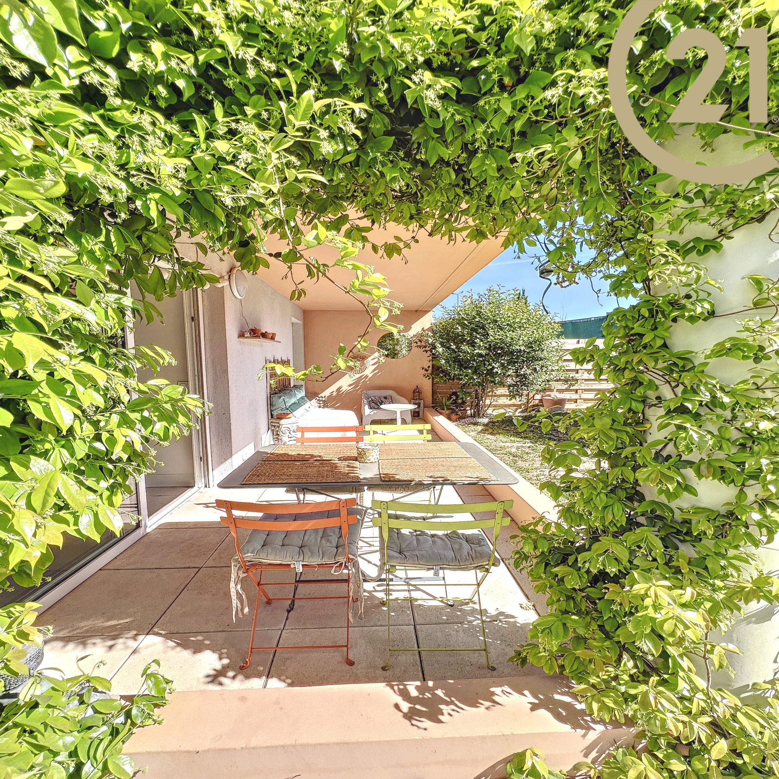 FREJUS - Bel appartement 3 pièces de 54.43 m² avec large terrasse couverte de 12.72 m² et grand jardin en angle de 105.88 m² situé dans une copropriété récente et sécurisée avec piscine à quelques minutes des commerces, établissements scolaires et accès autoroute.