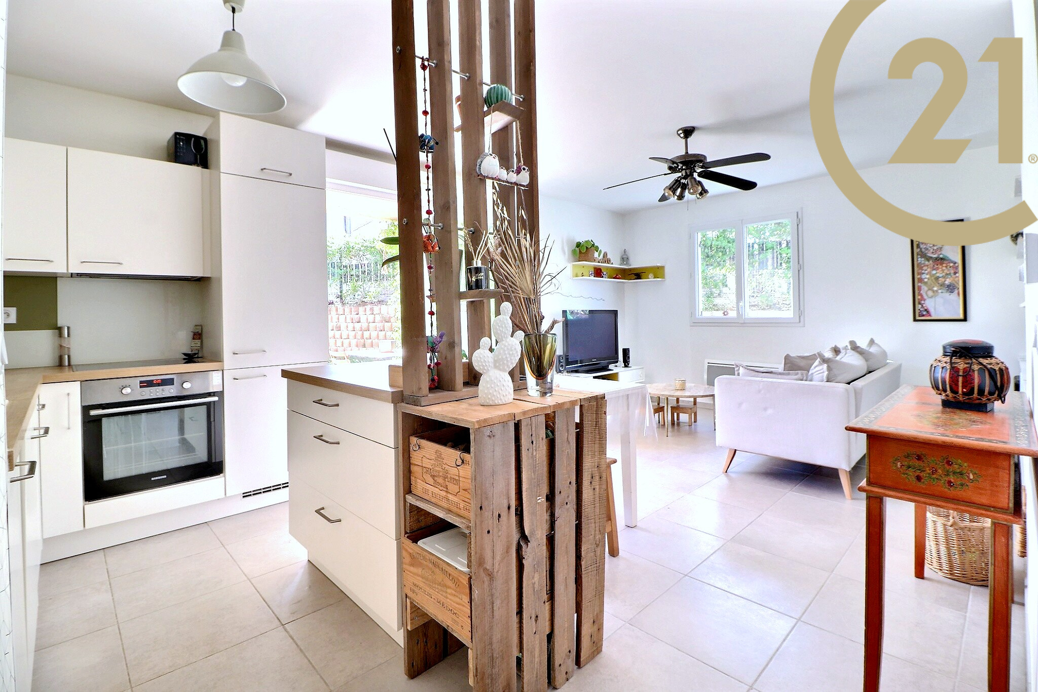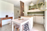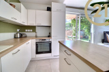 Cet appartement lumineux et bien agencé offre une pièce de vie avec belle cuisine ouverte récente entièrement équipée bénéficiant d'une double exposition Sud et Est, deux chambres avec espaces de rangements dont une offrant un accès direct sur la terrasse et le jardin, une salle d'eau avec grande douche et des WC séparés.