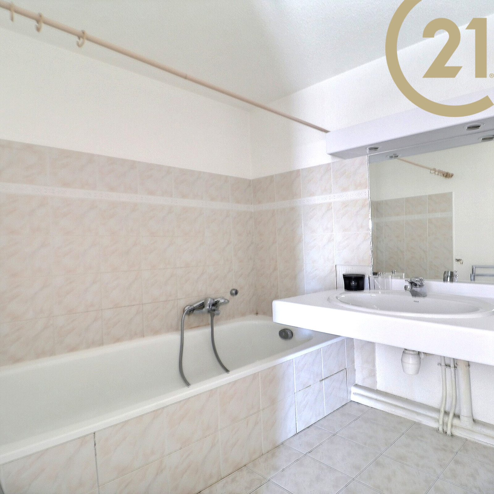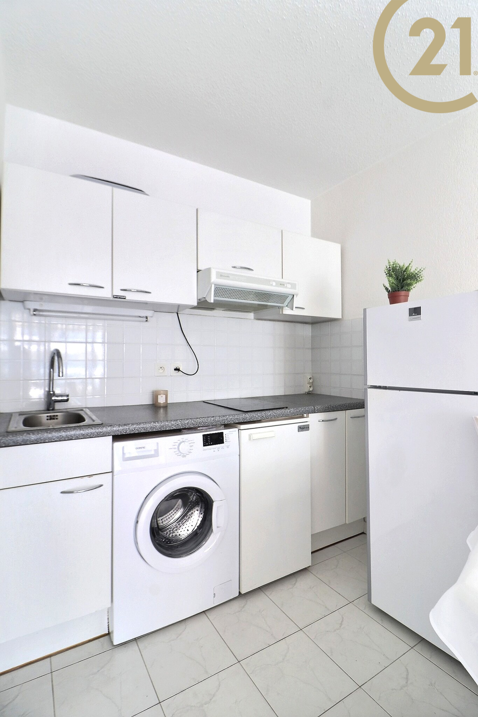 Cet appartement bien agencé offre un hall d'entrée avec placard, un séjour avec cuisine équipée donnant sur une terrasse couverte, une chambre avec placard donnant également sur la terrasse et une salle de bains avec WC.
