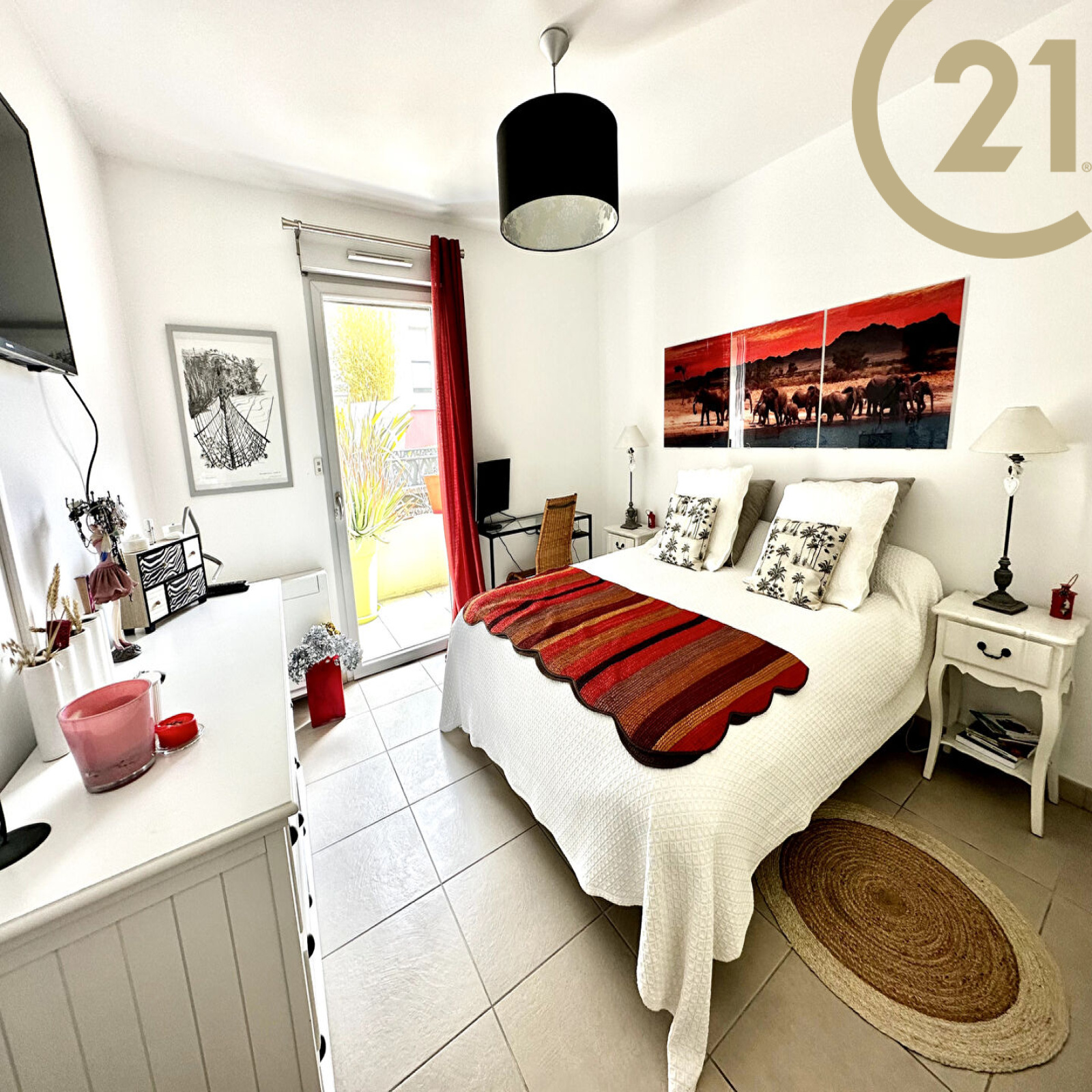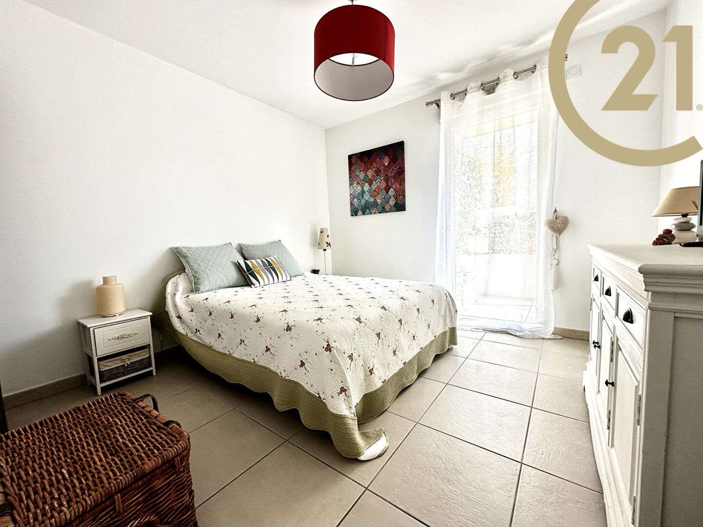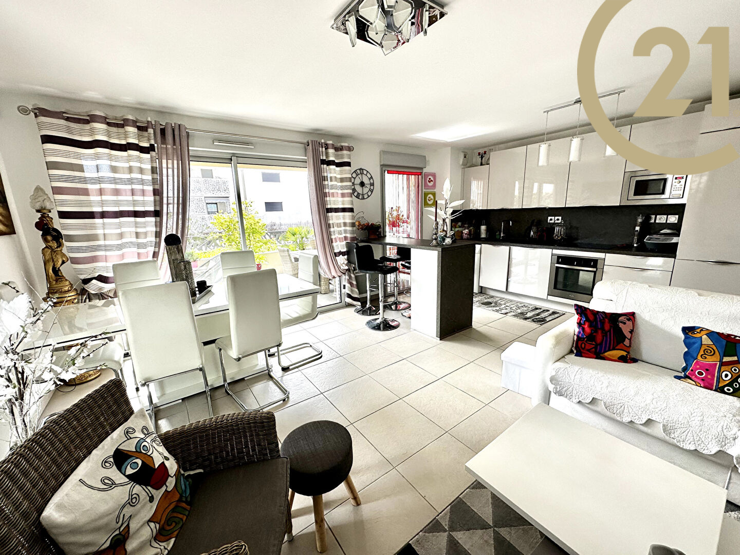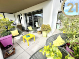 Cet appartement offre un hall d'entrée avec placard, un séjour avec cuisine américaine ouverte entièrement équipée donnant sur une spacieuse terrasse orientée Sud Ouest, un coin nuit indépendant composé de deux chambres l'une avec dressing l'autre avec placard donnant sur une terrasse, d'une salle de bains et de WC séparés.
