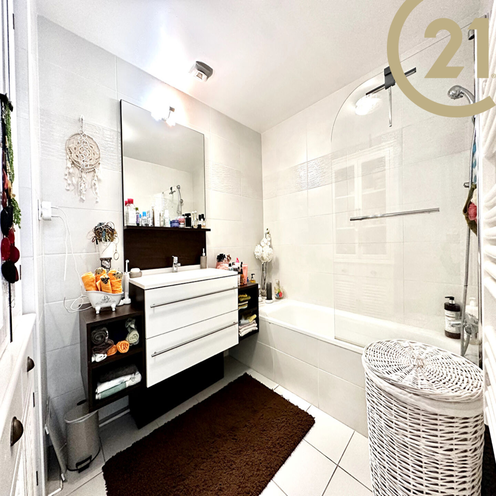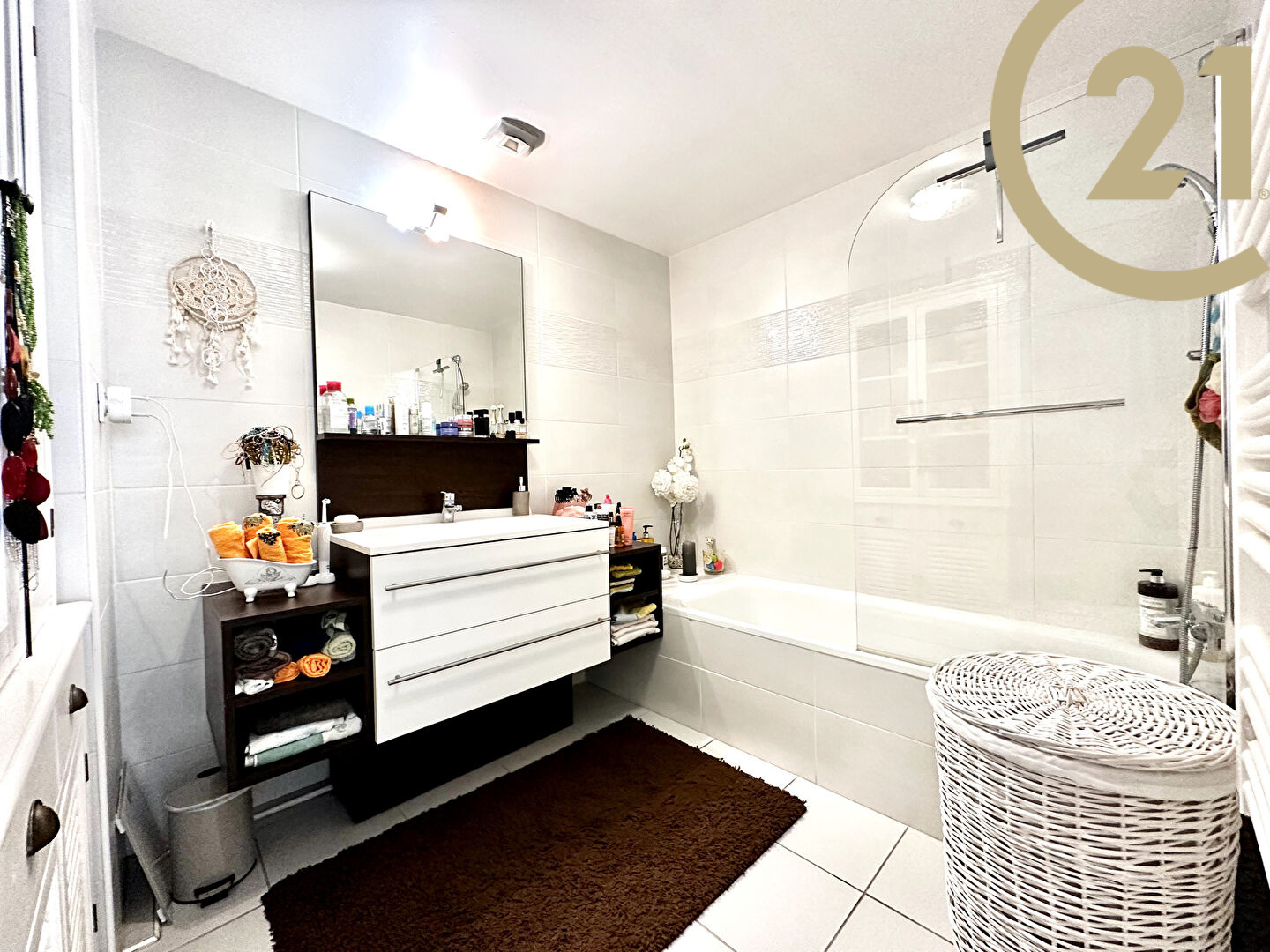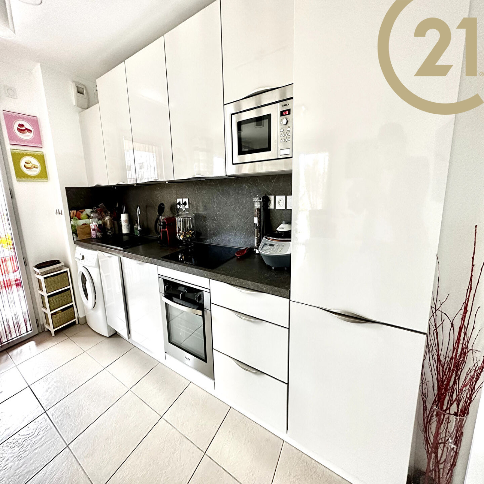 Cet appartement offre un hall d'entrée avec placard, un séjour avec cuisine américaine ouverte entièrement équipée donnant sur une spacieuse terrasse orientée Sud Ouest, un coin nuit indépendant composé de deux chambres l'une avec dressing l'autre avec placard donnant sur une terrasse, d'une salle de bains et de WC séparés.