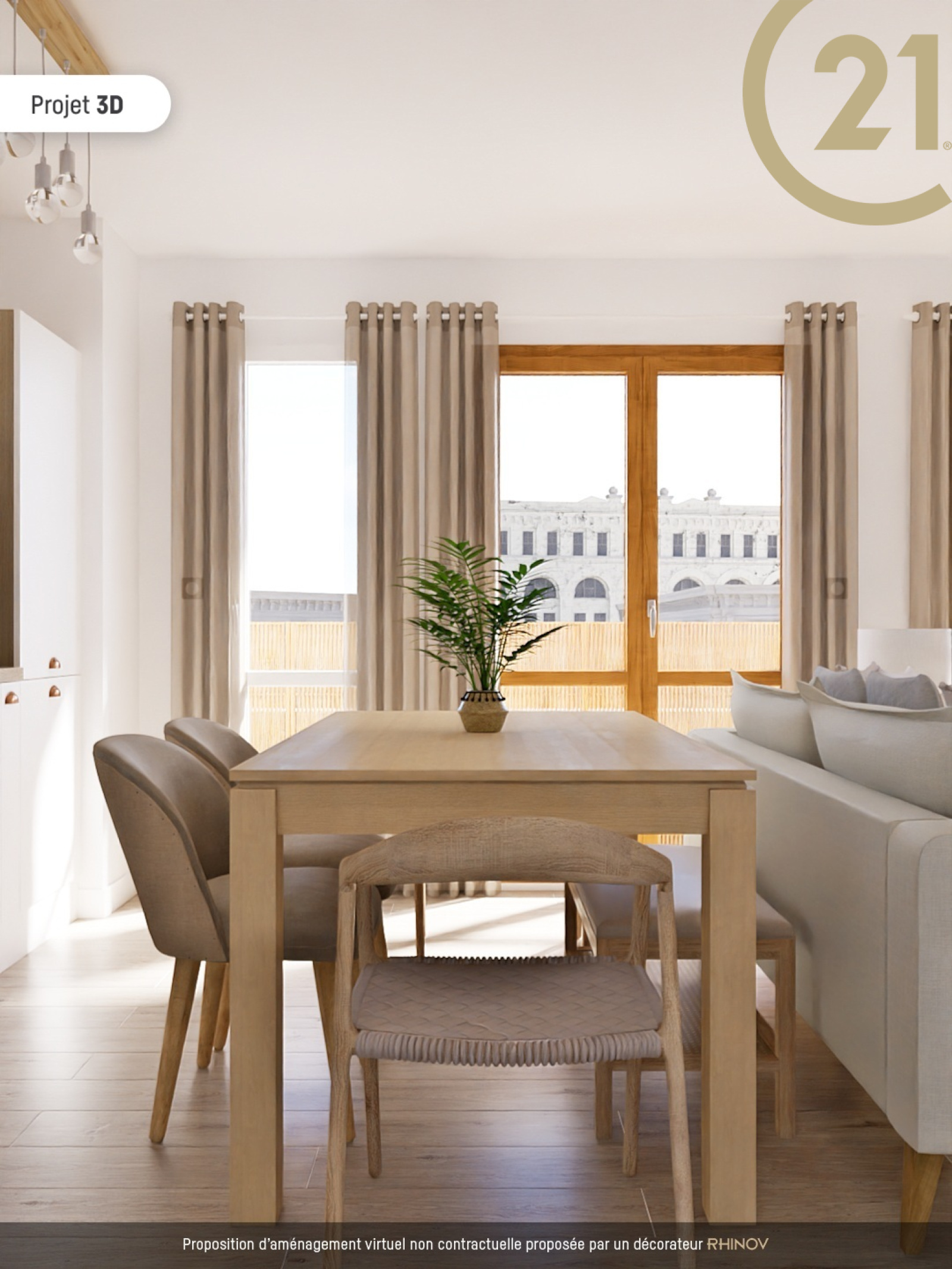 Cet appartement traversant se compose : d'une entrée avec placards, d'un séjour lumineux donnant sur une terrasse exposée Sud, d'une chambre avec dressing et d'une salle de bains ainsi que d'un WC indépendant.