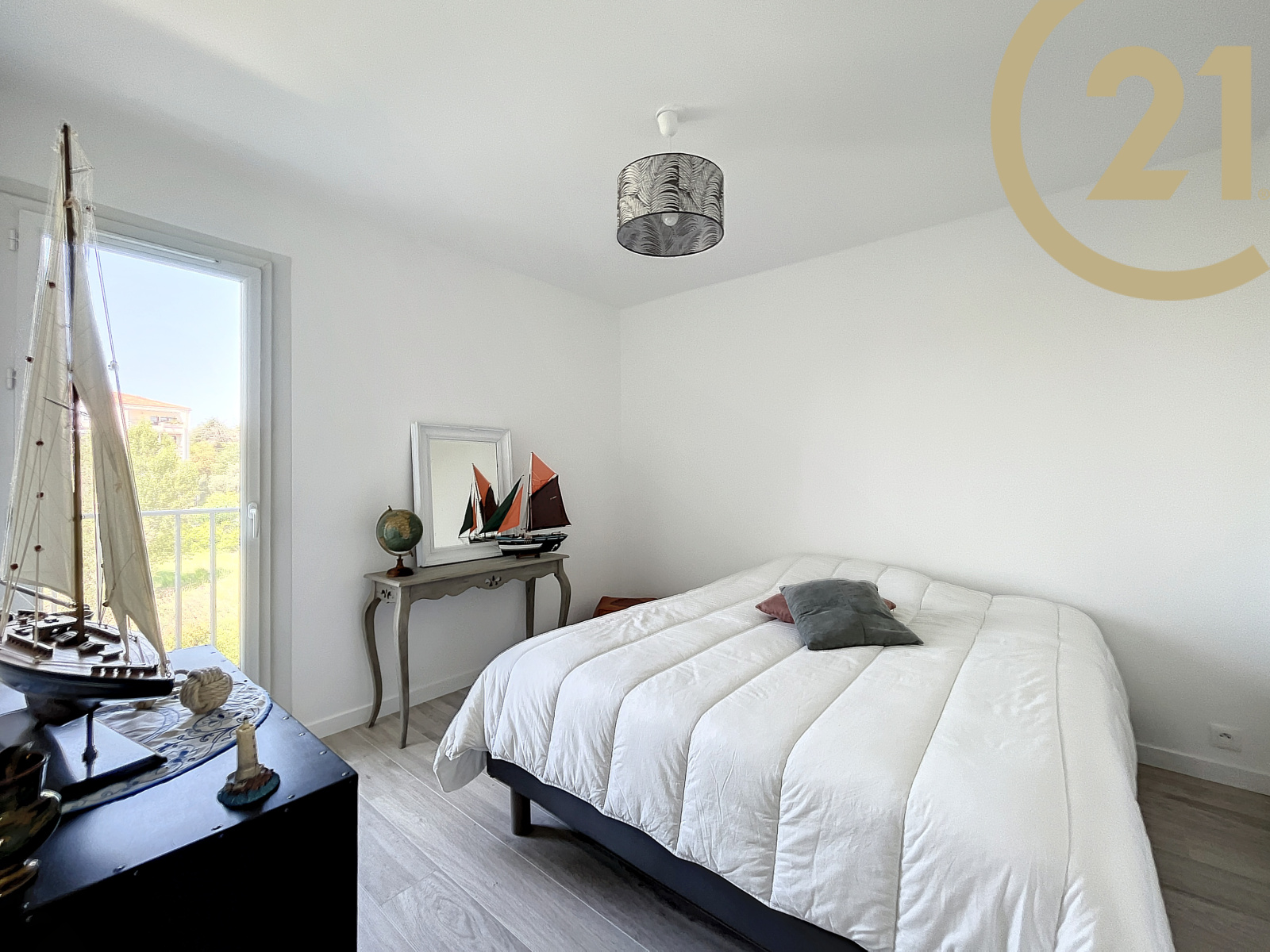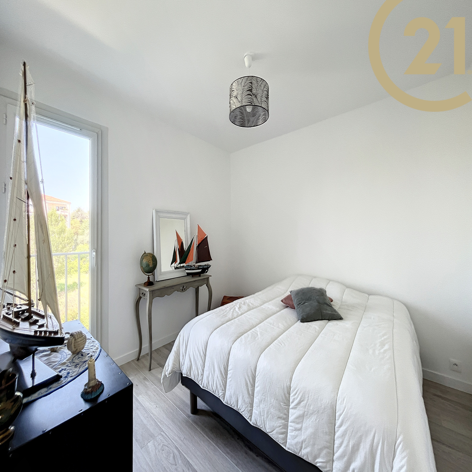 Bien agencé, il se compose : d'une entrée avec rangement, d'un LUMINEUX séjour CLIMATISE avec grands placards prolongé par la TERRASSE, d'une cuisine indépendante équipée pouvant s'ouvrir sur le séjour, d'une grande chambre et d'une salle de bains avec WC.