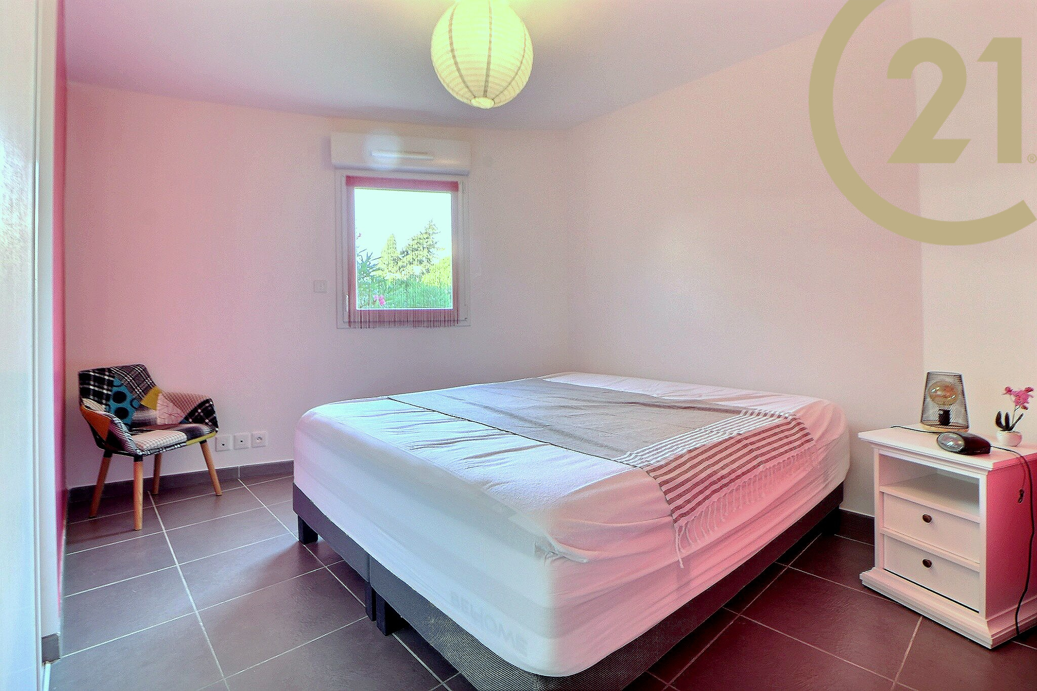 Cet appartement parfaitement entretenu et idéalement agencé offre un spacieux séjour avec placard et de grandes baies-vitrées, une cuisine ouverte aménagée et un coin nuit séparé comprenant deux grandes chambres avec placards, une salle d'eau avec vaste douche et des WC séparés.