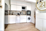 Il se compose d'une entrée avec placard, d'une belle pièce de vie avec cuisine US s'ouvrant sur un balcon exposé ouest, d'une chambre avec placards et d'une salle d'eau avec grande douche et WC.
