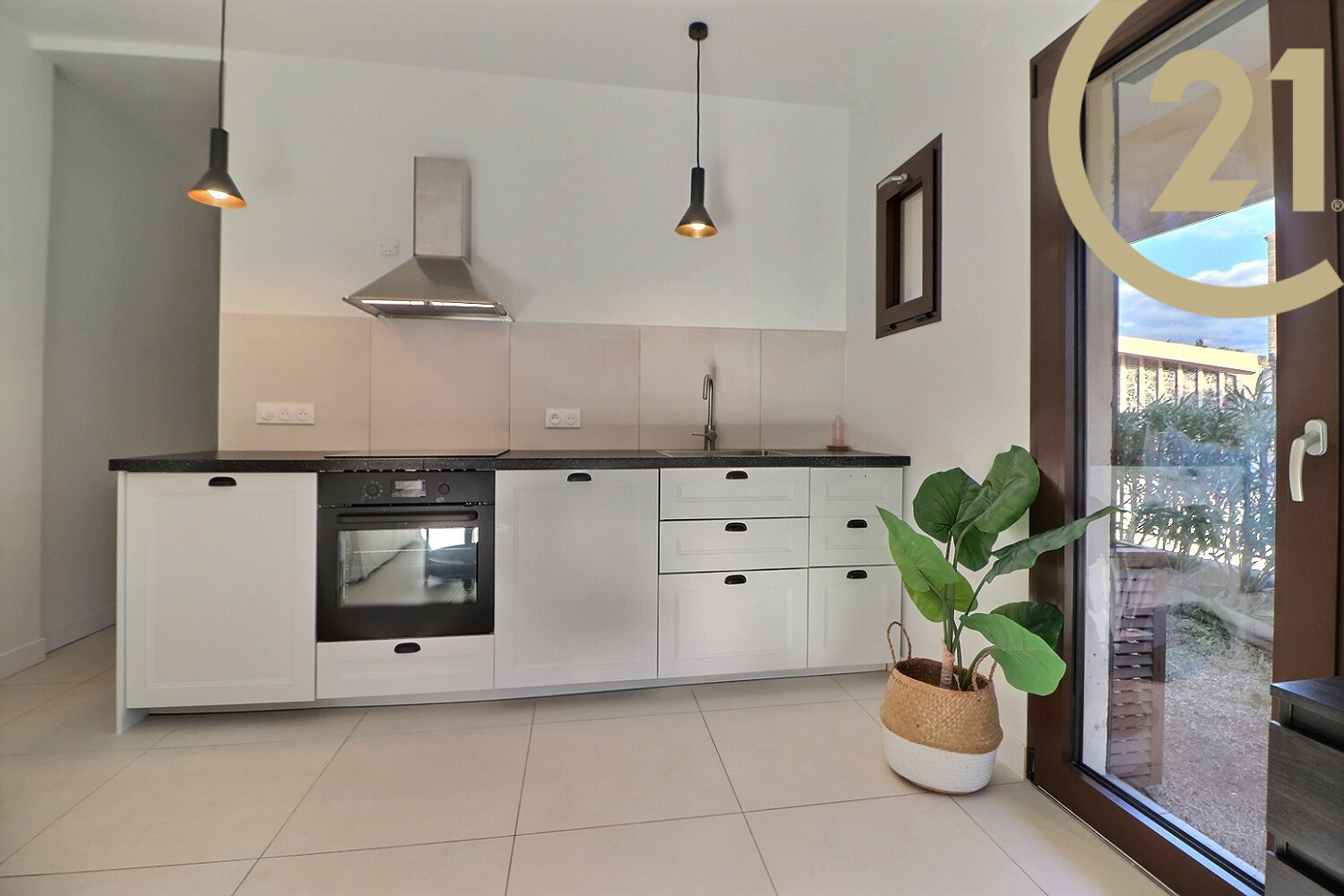 VENTE - FREJUS PLAGE - Dans une résidence prisé du bord de mer, découvrez cet appartement 3 pièces de 50m² entièrement rénové situé au rez-de-chaussée bénéficiant d'une belle terrasse ensoleillée.
