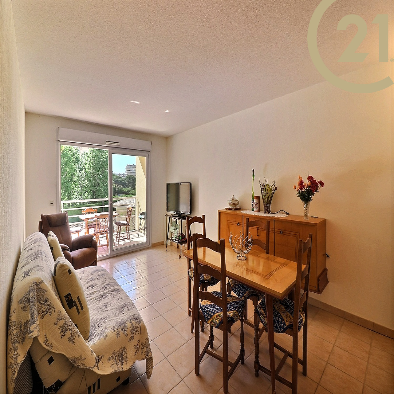 EXCLUSIVITE : FREJUS PLAGE, à 500 m de la mer, appartement 3 pièces dans une résidence de standing très joliment arborée avec piscine.