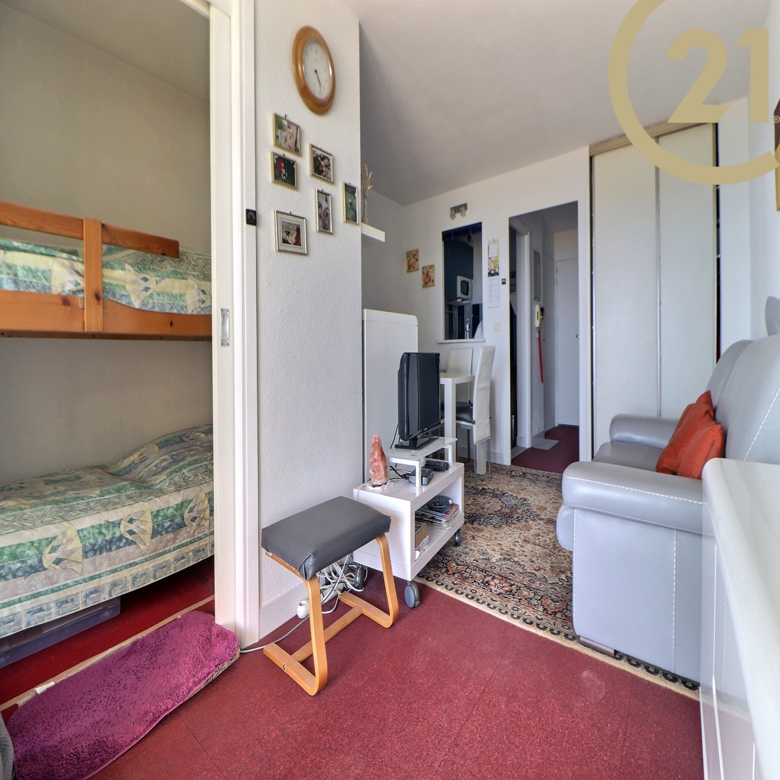 VENTE EN EXCLUSIVITE - FREJUS PLAGE - Découvrez en exclusivité ce studio cabine de 27m² vendu meublé en étage élevé avec vue MER. Idéalement placé face aux plages et à deux pas des commerces.