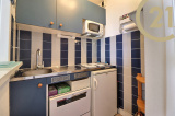 Ce studio bien agencé offre : un séjour donnant sur une jolie terrasse, un coin cuisine, une cabine, une salle de bains et un WC indépendant.