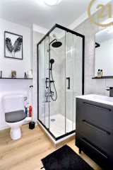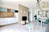 Cet appartement bien agencé offre un hall d'entrée avec placard, un séjour avec cuisine équipée donnant sur une terrasse de 17m² avec cellier, une chambre avec placard donnant également sur la terrasse et une salle de d'eau avec WC.