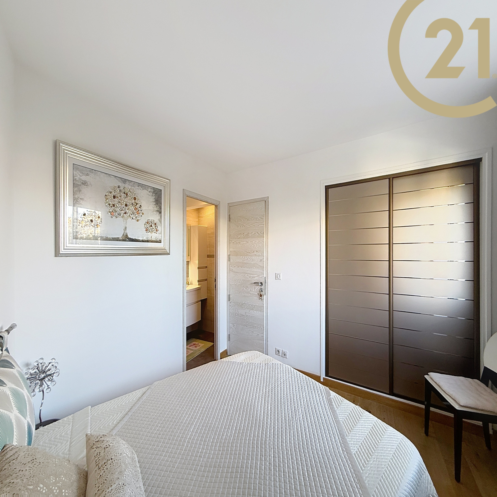 La partie nuit se compose elle d'une première chambre donnant sur une terrasse, d'une salle de bains avec baignoire, vasque et WC, d'une suite parentale avec son grand dressing aménagé et sa salle d'eau privative, et d'une troisième chambre de plus de 13m² bénéficiant d'un accès à la terrasse.