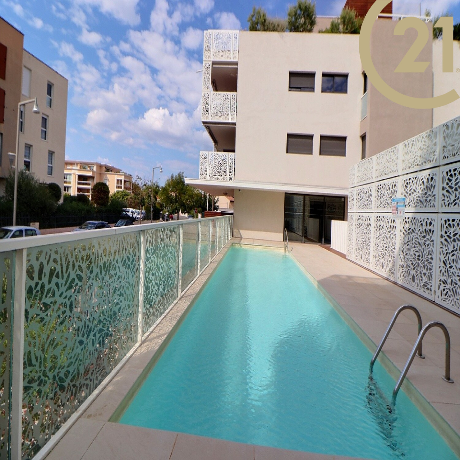 VENTE - PORT FREJUS - Port Fréjus II, dans une résidence récente de 2015 avec piscine et salle de sport, située sur le bord du canal entre la base nature et le centre ville. Cet appartement est composé d'une entrée, un séjour avec coin cuisine équipée donnant sur une belle terrasse de 16 m² et bien exposée, deux chambres, un wc et une salle d'eau. Un garage en sous-sol de 36 m² complète ce lot. Bien rare sur le secteur.