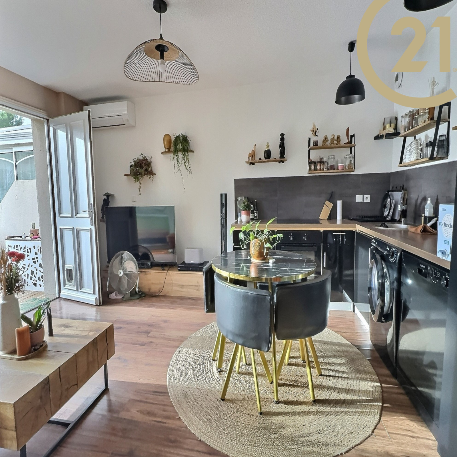 VENTE EN EXCLUSIVITE - PORT FREJUS - COUP DE COEUR pour ce joli 3 pièces rénové avec goût d'une superficie de 46.44 m2 avec un beau jardin privatif clos de 50 m2 et une terrasse de 12m2 exposé sud-ouest ! Cet appartement est idéalement situé dans une petite résidence sécurisée, recherchée au calme absolu et à proximité à pied de la base nature et des commerces qui en fait un véritable tout à pied . VENDU MEUBLE il se compose d'un beau séjour de 22.65 m2 climatisé baigné de lumière avec cuisine ouverte équipée, d'un espcae nuit avec une chambre avec placard, un bureau/chambre, une salle d'eau, un wc séparé et un placard de rangement. Bonnes prestations: Climatisation, volet électrique, moteur et toile du store changés récemment, coffres de rangement sur toute la longueur sur la terrasse en bois, accès portillon privé. Côté stationnement, l'appartement est vendu avec une place de parking privative au sein de la résidence sécurisée. A découvrir sans attendre !