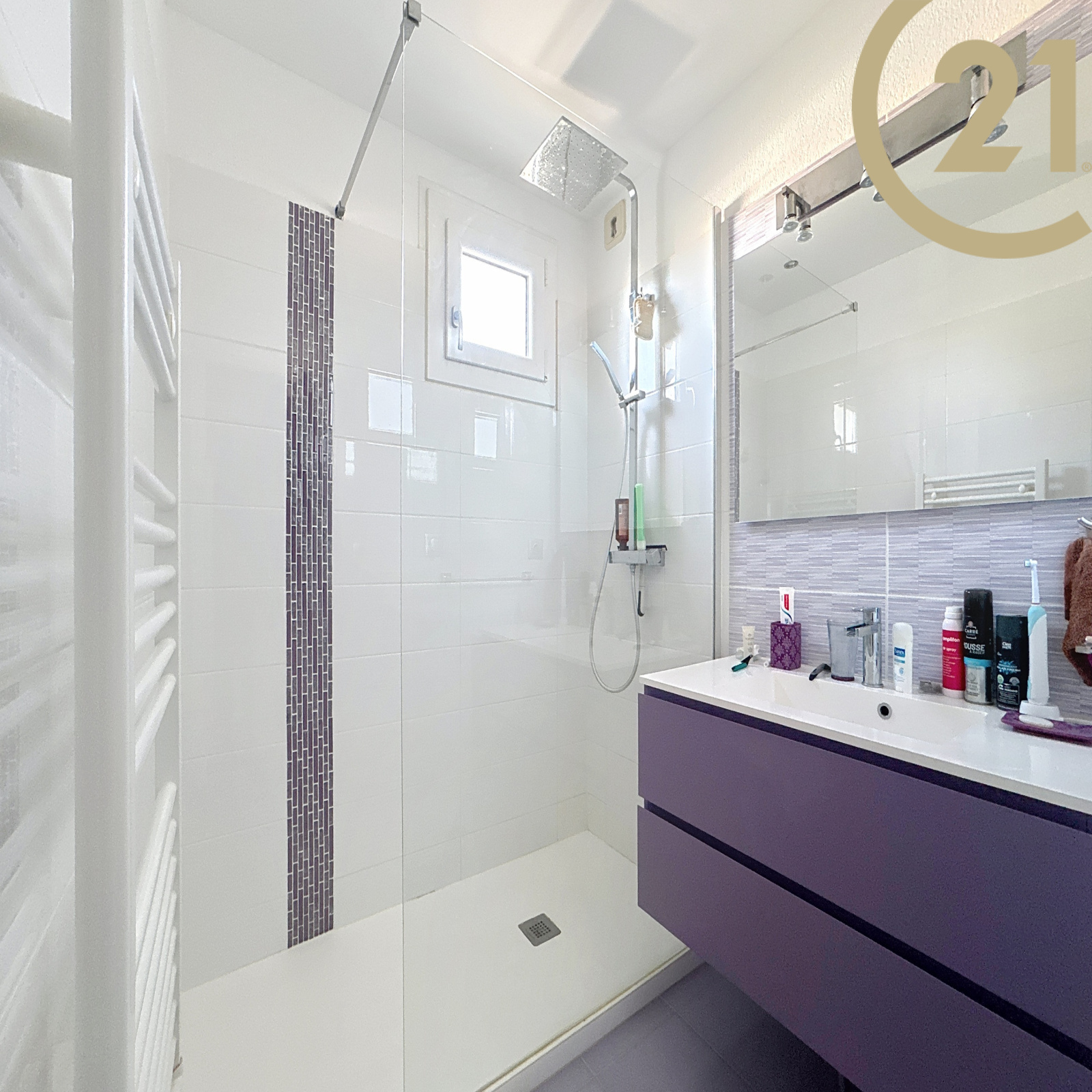 Cet appartement bien agencé offre un hall d'entrée avec placard, un séjour avec cuisine aménagée et équipée donnant sur une terrasse de 9 m², une belle chambre avec placard, une salle d'eau rénovée et un WC suspendu indépendant.