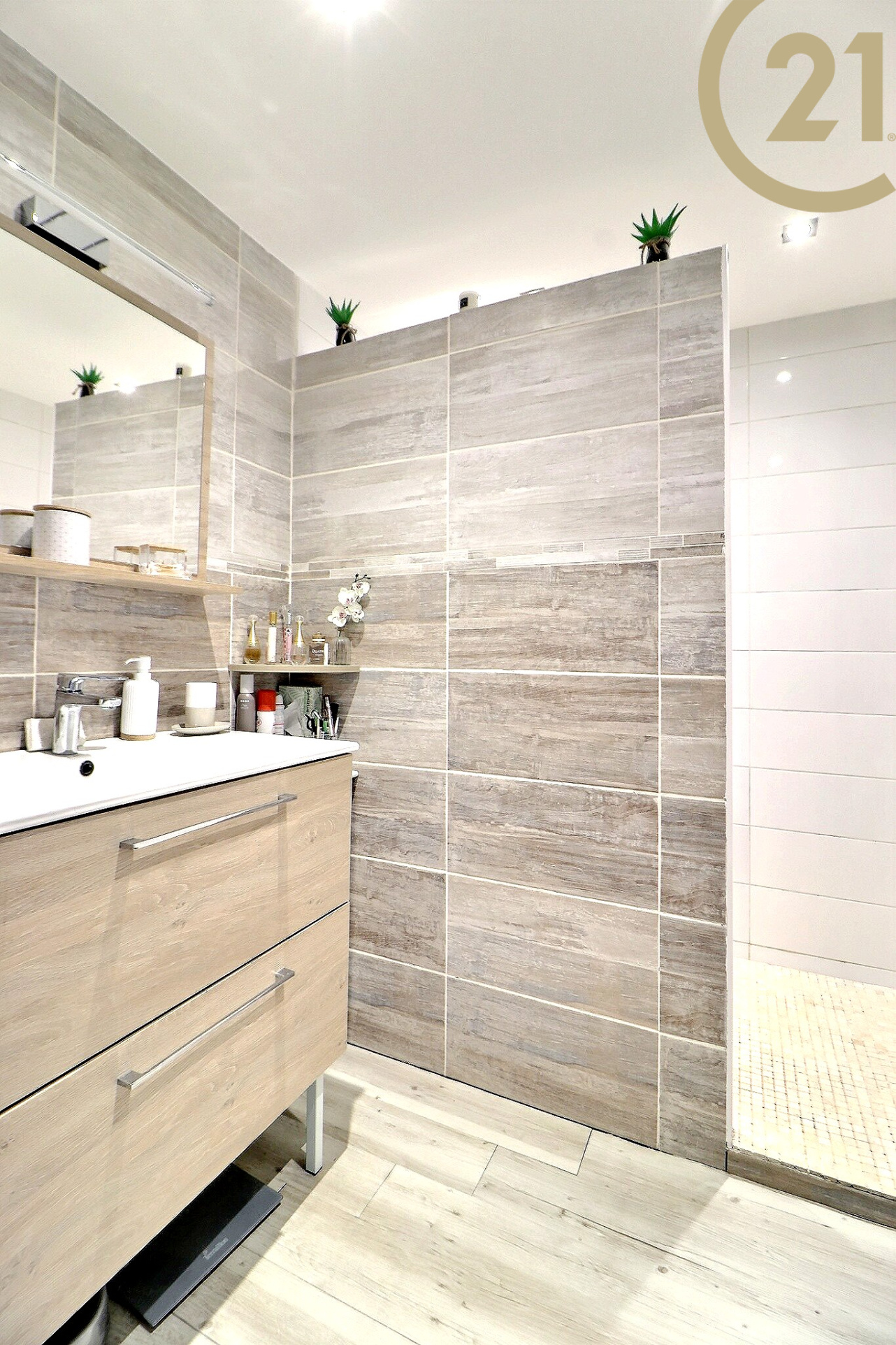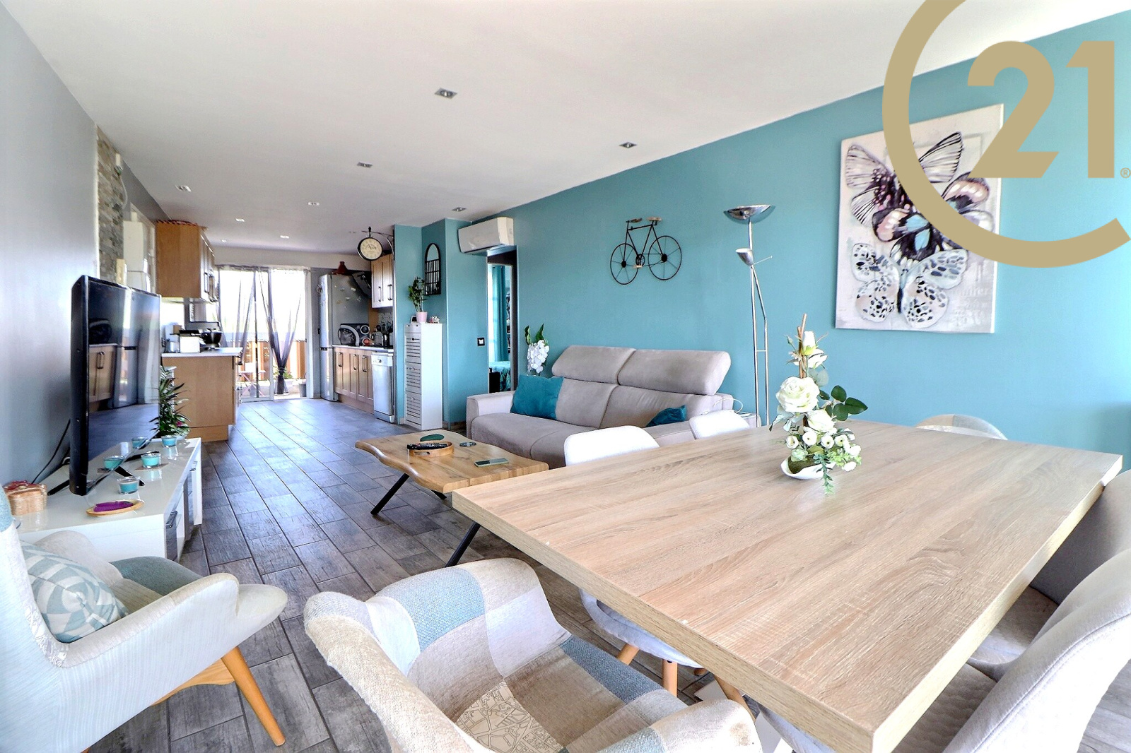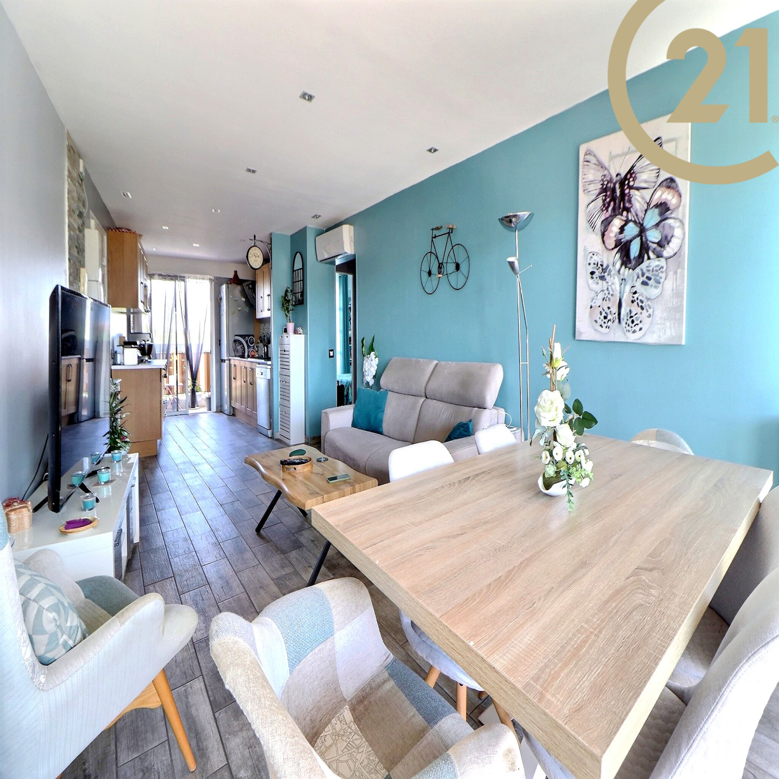 Cet appartement entièrement rénové avec goût et idéalement agencé offre un hall d'entrée, un double séjour avec cuisine ouverte et moderne entièrement équipée et un cellier/buanderie, deux chambres avec rangements, une salle d'eau dotée d'une grande douche et des WC séparés.