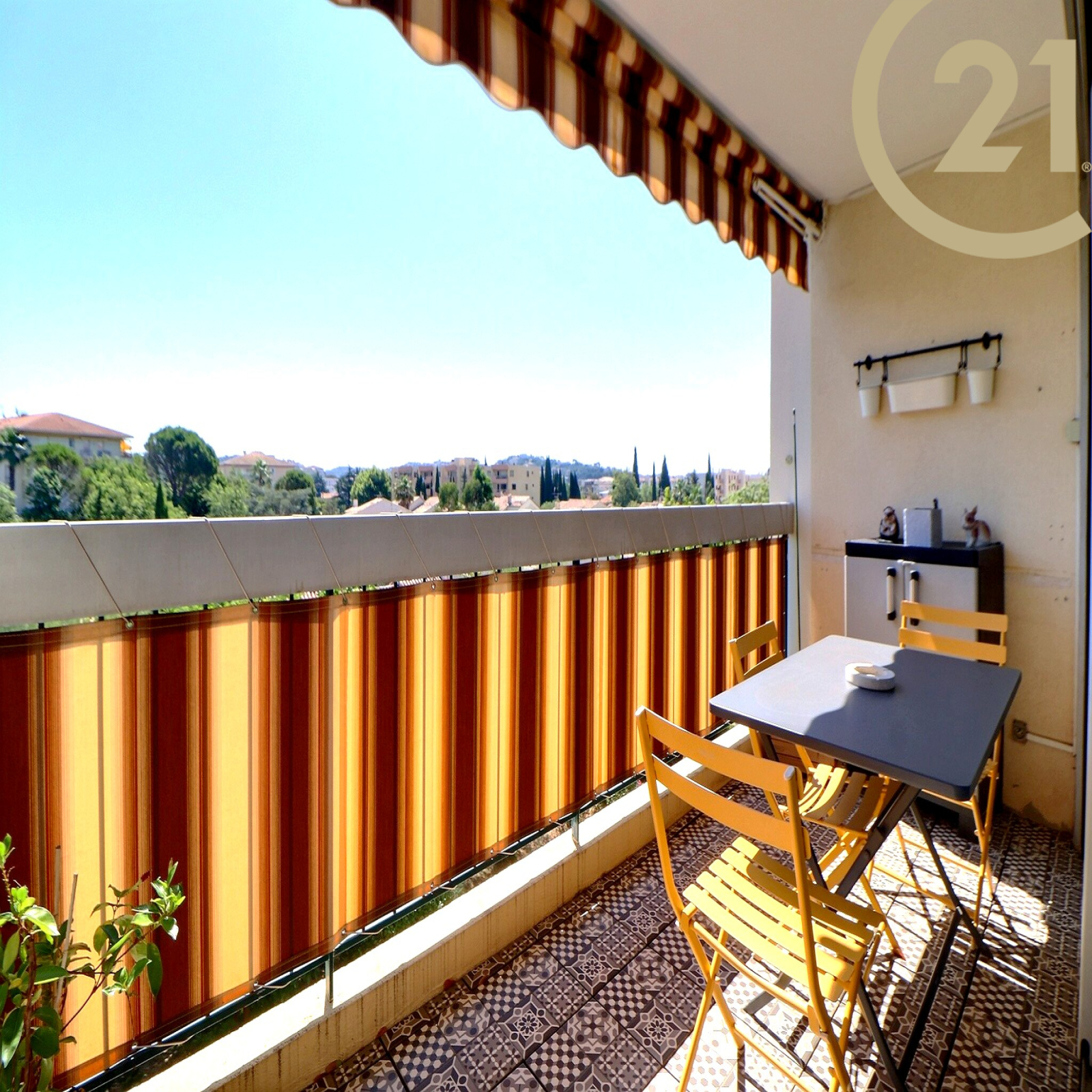 Le séjour bénéficie d'un accès direct sur une terrasse jouissant d'une vue dégagée sur le massif de l'Estérel. La cuisine donne sur une seconde terrasse avec une vue dégagée sur le rocher de Roquebrune-sur-Argens.