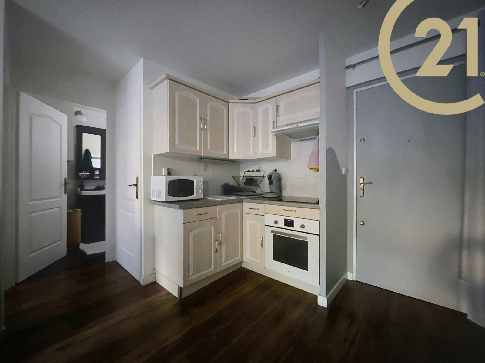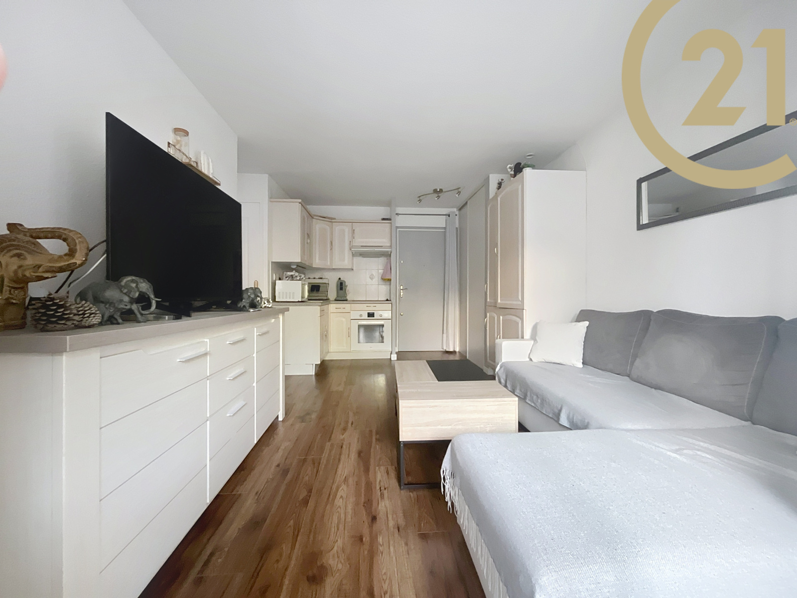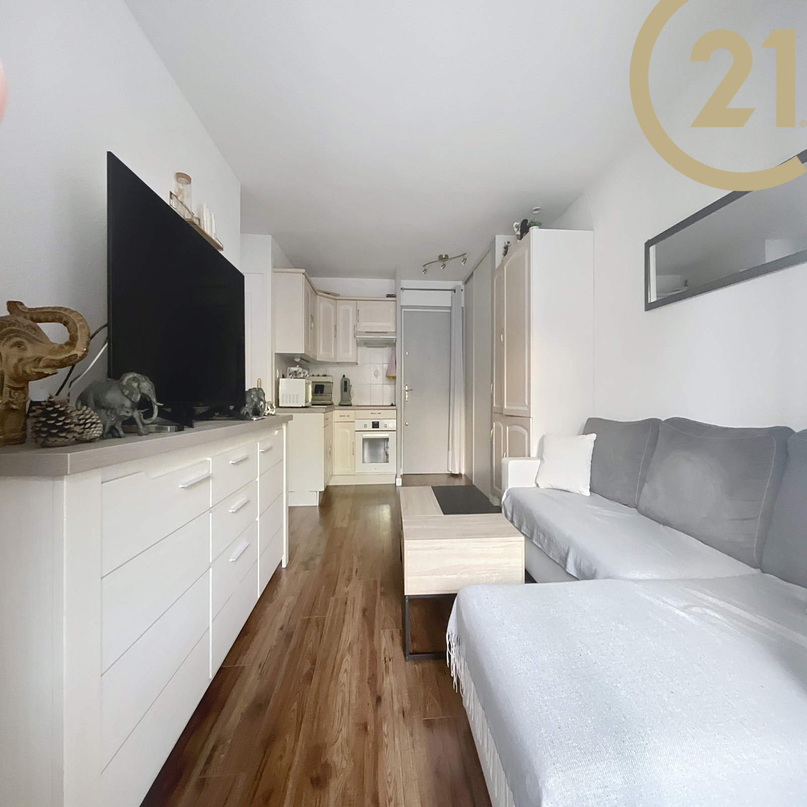 Cet appartement bien agencé se compose d'une entrée, d'une pièce de vie donnant sur une loggia exposée EST, d'une kitchenette, d'un coin nuit, d'une salle de bains et d'un WC indépendant.