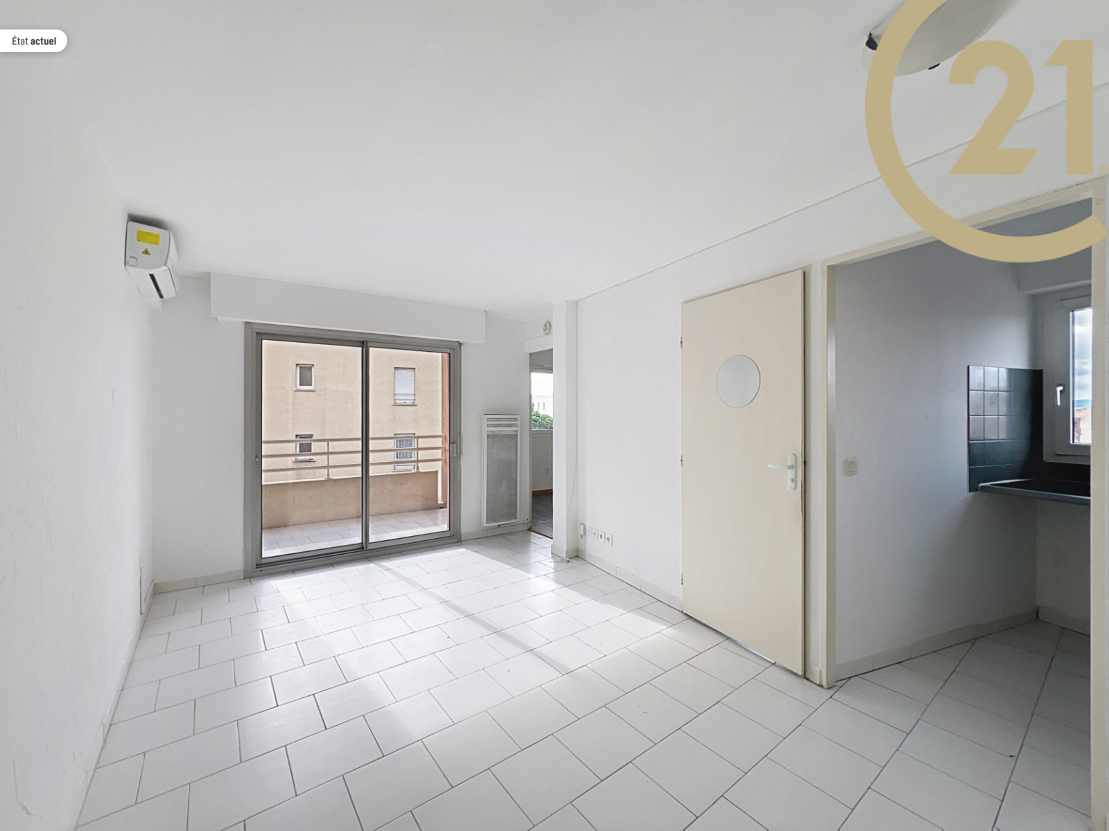 Il se compose d'un hall d'entrée, d'un séjour lumineux avec placard, d'une cuisine indépendante, d'une chambre et d'une salle d'eau avec WC. Climatisation réversible. Place de parking privative en sous-sol.
